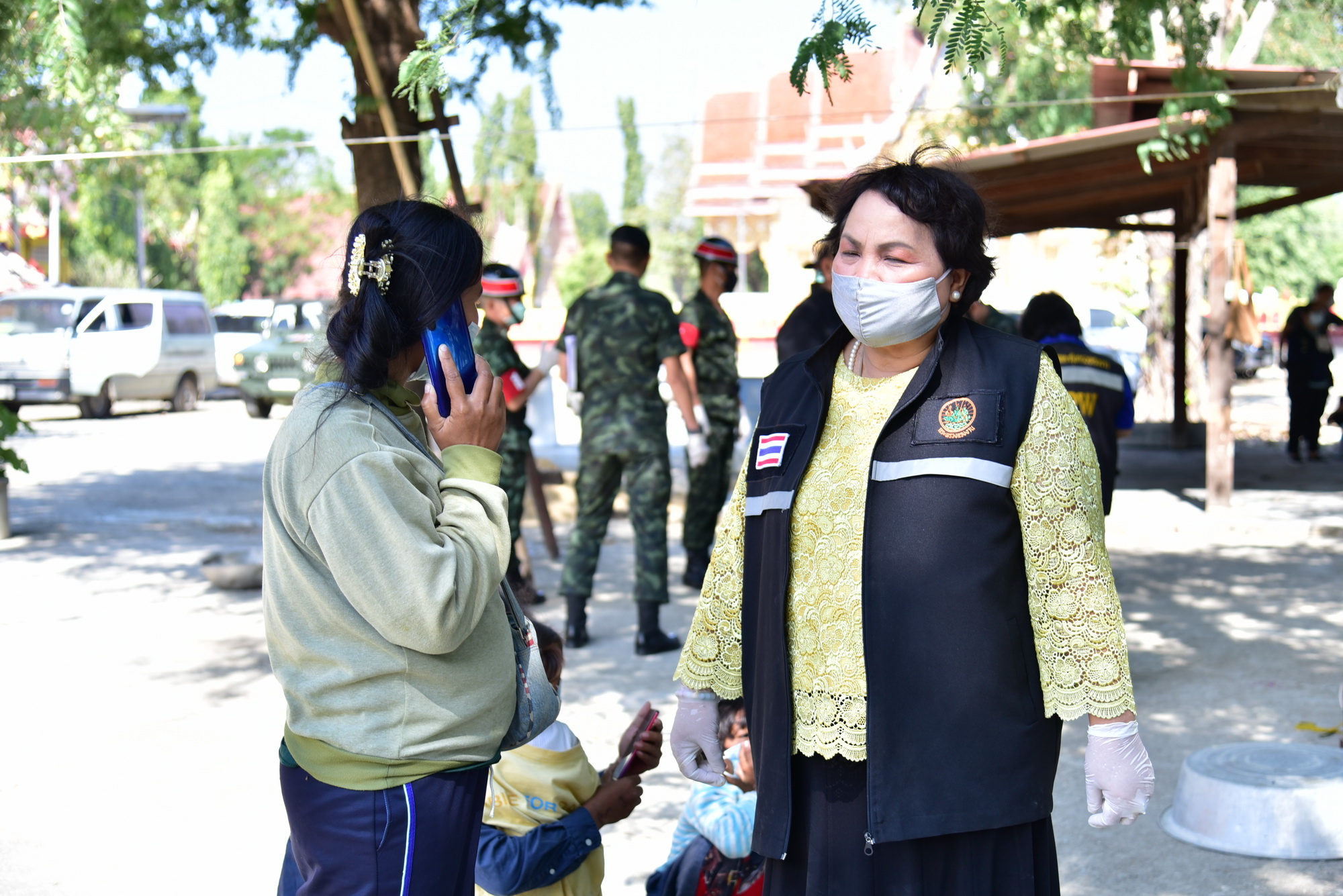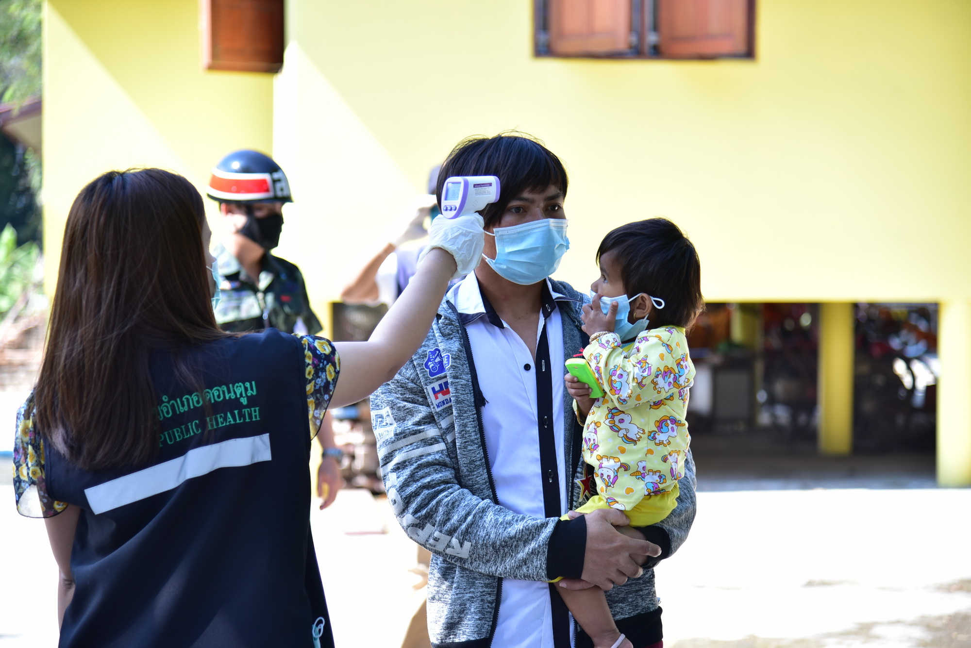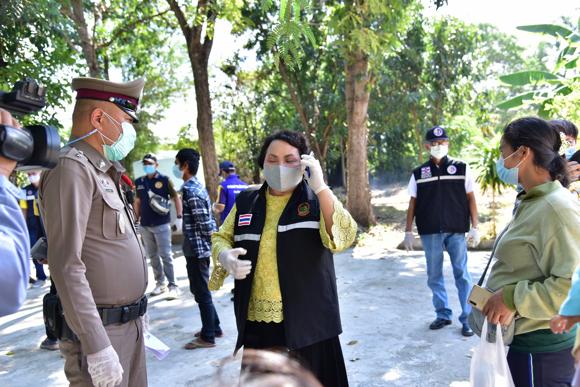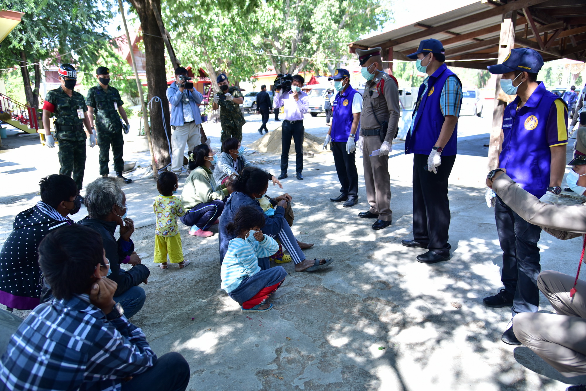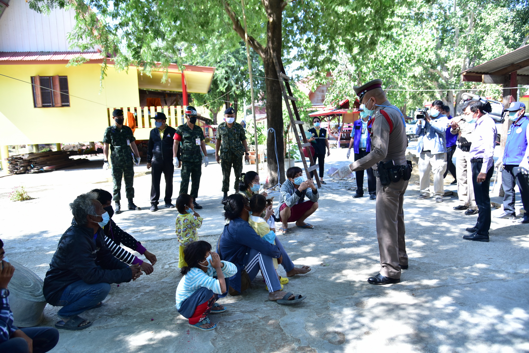 นางวรรณกานต์ ขาวลาภ แรงงานจังหวัดนครปฐม กล่าวว่า นายสุรศักดิ์ เจริญศิริโชติ ผู้ว่าราชการจังหวัดนครปฐม สั่งการให้ตรวจสอบแรงงานต่างด้าวที่อยู่ในสถานประกอบการ เนื่องจากขณะนี้มีการแพร่ระบาดของโรคติดเชื้อไวรัสโคโรนา 2019 ที่เกี่ยวเนื่องกับตลาดค้ากุ้ง จังหวัดสมุทรสาคร ซึ่งหน่วยงานต่างๆ ได้บูรณาการลงพื้นที่ตรวจสอบแรงงานกัมพูชาทั้งหมด ซึ่งได้มาพบกับแรงงานกลุ่มดังกล่าว เบื้องต้นพบว่าไม่มีหลักฐาน หนังสือเดินทาง และไม่มีการตรวจคัดกรองโรค โดยอ้างว่าได้เดินทางจากกรุงเทพฯ มาทำงานก่อสร้างในจังหวัดนครปฐม ซึ่งแคมป์คนงานอยู่บริเวณใกล้วัด ช่วงระหว่างอยู่ที่พักไม่มีอะไรทำ จึงพากันเดินมาที่วัด จากนั้นเจ้าหน้าที่ได้ให้ประสานติดต่อกับนายจ้างทางโทรศัพท์ ให้นำหลักฐานของแรงงานทั้งหมดมาแสดง แต่มีท่าทีบ่ายเบี่ยง เจ้าหน้าที่จึงได้นำไปที่สถานีตำรวจภูธรอำเภอดอนตูม เพื่อรอนายจ้างนำเอกสารมาแสดงต่อเจ้าหน้าที่ จนเมื่อเวลา 13.00 น. นายจ้างได้นำเอกสารมาแสดงครบทุกคนและรับตัวกลับไป