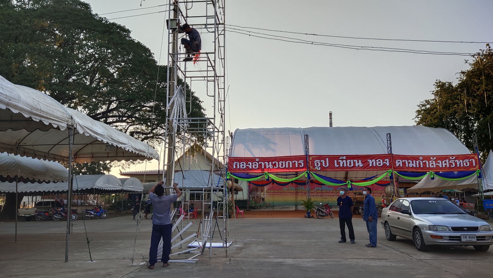 ที่วัดกกตาด ตำบลห้วยขมิ้น อำเภอด่านช้าง จังหวัดสุพรรณบุรี ชาวบ้านได้รวมตัวช่วยกันเก็บธงและไฟที่ประดับประดาอย่างสวยงาม รวมทั้งข้าวของต่างๆที่จัดเตรียมไว้ในงานปิดทองฝังลูกนิมิตวัดกกตาด โดยงานจะเริ่มขึ้นระหว่าง วันที่ 26 ธ.ค.63 – 3-ม.ค.64 ซึ่งงานบุญปิดทองฝังลูกนิมิตวัดกกตาดครั้งนี้ มีผู้นำท้องถิ่นและชาวบ้านหมู่ 9 ตำบลห้วยขมิ้น ได้ช่วยกันหาเงินทุนมาจัดงานปิดทองฝังลูกนิมิต ซึ่งเป็นความฝันของชาวบ้านที่รอคอยงานนี้มากว่า 30 ปี โดยช่วยกันติดตั้งประดับประดาไฟและเตรียมข้าวของต่างๆจนเสร็จแล้วอย่างสวยงาม แต่มาพบกับปัญหาพิษโควิดระบาดรอบสอง จึงต้องยกเลิกกาจัดงานนี้ ผู้รับเหมาติดตั้งไฟต้องมารื้ออุปกรณ์ไฟฟ้าออกท่ามกลางความเสียใจของชาวบ้าน สำหรับวัดกกตาดแห่งนี้ ใช้เวลาสร้างอุโบสถ์นานกว่า 34 ปี สร้างเสร็จเมื่อปลายปี 2562