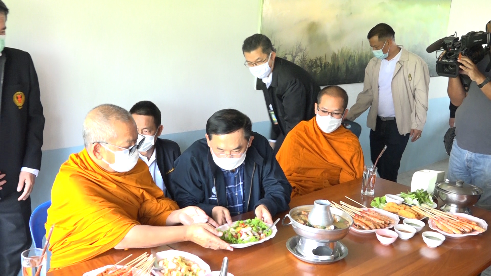 นายอนุชา นาคาศัย รัฐมนตรีประจำสำนักนายกรัฐมนตรี พร้อมคณะ พร้อมด้วย นางสาวณัฐธ์ภัสส์ ยงใจยุทธ และนายอนุรุทธิ์ นาคาศัย ที่ปรึกษารัฐมนตรีประจำสำนักนายกรัฐมนตรี นายธีรภัทร ประยูรสิทธิ ปลัดสำนักนายกรัฐมนตรี และ นายธสรณ์อัฑฒ์ ธนิทธิพันธ์ เลขาธิการคณะกรรมการคุ้มครองผู้บริโภค นำคณะลงพื้นที่เพื่อตรวจเยี่ยมการเตรียมความพร้อมในการป้องกันการแพร่ระบาดเชื้อไวรัสโคโรนา 2019 แก่สมาคมผู้ประกอบการร้านอาหาร และผู้ประกอบการประมงเกษตรกรผู้เลี้ยงกุ้ง โดยมี นายอภินันท์ เผือกผ่อง รองผู้ว่าราชการจังหวัดนครปฐม และคณะผู้บริหาร ร่วมด้วยนายณรงค์ ทรงอารมณ์ ผู้อำนวยการสำนักงานพระพุทธศาสนาแห่งชาติ นายเผดิมชัย สะสมทรัพย์ อดีตรัฐมนตรีแรงงานฯ และนายปฐม ศูญจันทร์ สส.จังหวัดนครปฐม ร่วมให้การต้อนรับ พร้อมนิมนต์ พระเทพศานาภิบาล รองเจ้าคณะจังหวัดนครปฐม เจ้าอาวาสวัดไร่ขิง และคณะสงฆ์ รับถวายภัตตาหารเพล สร้างควาเชื่อมั่นว่าอาหารทะเลไม่ติดโควิด-19แน่นอน เชิญชวนพุทธศาสนิกชนช่วงเทศกาลปีใหม่ ตักบาตรทำบุญด้วยอาหารทะเล