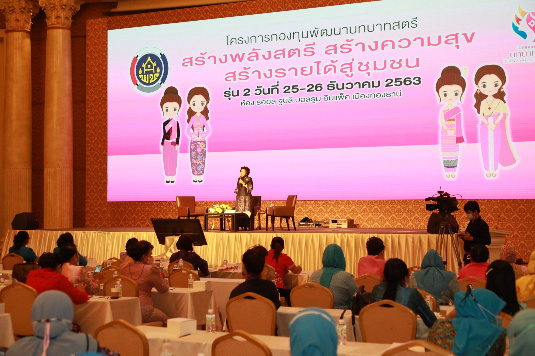 ดร.วันดี กุญชรยาคง จุลเจริญ ประธานสภาสตรีแห่งชาติในพระบรมราชินูปถัมภ์และประธานชมรมแม่บ้านพัฒนาชุมชน บรรยายพิเศษหัวข้อ “การสร้างมูลค่าเพิ่มกองทุนพัฒนาบทบาทสตรีและการบริหารจัดการหนี้” ในโครงการกองทุนพัฒนาบทบาทสตรี สร้างพลัง สร้างความสุข สร้างรายได้สู่ชุมชน โดยมีนายสุทธิพงษ์ จุลเจริญ อธิบดีกรมการพัฒนาชุมชน นางทรงลักษณ์ วรภัย ผู้ตรวจราชการกรม ปฏิบัติหน้าที่ผู้อำนวยการสำนักงานกองทุนพัฒนาบทบาทสตรี พร้อมด้วย ประธานคณะกรรมการพัฒนาสตรีจังหวัด หัวหน้าคณะทำงานขับเคลื่อนกองทุนพัฒนาบทบาทสตรี ระดับจังหวัด/ตำบล/เทศบาล และสมาชิกกองทุนพัฒนาบทบาทสตรีจาก ภาคกลาง และภาคใต้ จำนวน 1,000 คน โดยโครงการในครั้งนี้เป็น รุ่นที่ 2 ดำเนินการระหว่างวันที่ 22-26 ธันวาคม 2563 ณ ห้องรอยัล จูบิลี่ บอลรูม ศูนย์แสดงสินค้าและการประชุมอิมแพ็ค เมืองทองธานี อำเภอปากเกร็ด จังหวัดนนทบุรี
