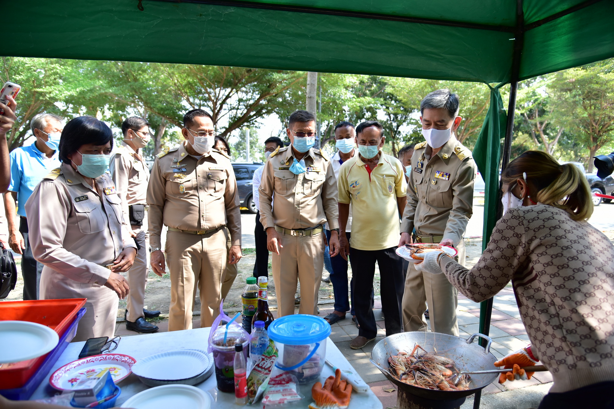 นายสุรศักดิ์ เจริญศิริโชติ ผู้ว่าราชการจังหวัดนครปฐม ให้ความมั่นใจว่า กุ้งและอาหารทะเลปรุงสุก สามารถบริโภคได้ปลอดภัย ขอให้มาช่วยกันอุดหนุน เพื่อเป็นการช่วยเหลือเกษตรกรผู้เพาะเลี้ยง ในช่วงสถานการณ์การแพร่ระบาดของไวรัสโคโรนา 2019
