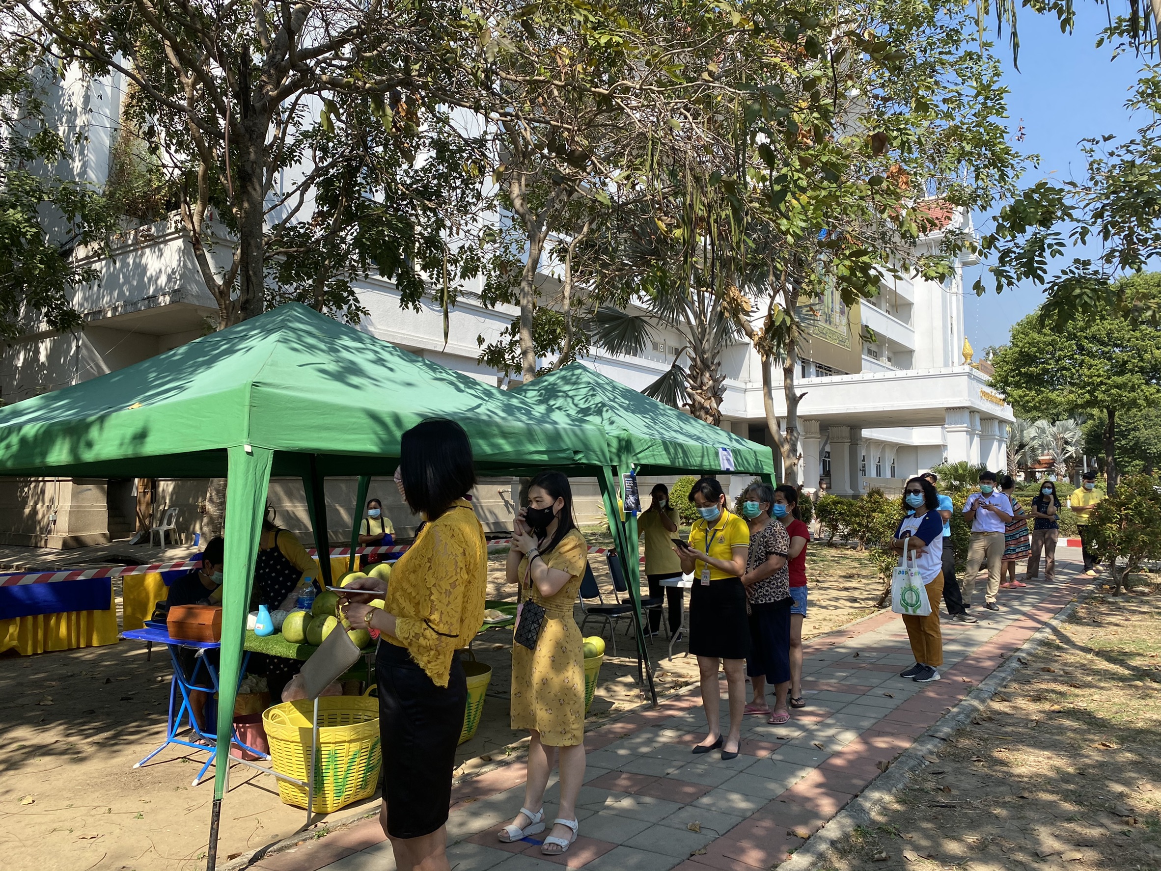 นายสุรศักดิ์ เจริญศิริโชติ ผู้ว่าราชการจังหวัดนครปฐม กล่าวว่า จากที่ผู้เลี้ยงกุ้งในพื้นที่จังหวัดนครปฐมได้รับผลกระทบจากสถานการณ์โรคไวรัสโคโรนา 2019 ในการระบาดระลอกใหม่ จึงได้มอบหมายให้ นายชนินทร์ แสงรุ่งเรือง. ประมงจังหวัดนครปฐม จัดหาตลาดเพื่อช่วยกระจายผลผลิตกุ้งให้กับผู้เลี้ยง ซึ่งในวันนี้ (28 ธ.ค.63) ได้เปิดตลาดเป็นวันแรก จำนวน 2 จุด ที่ภายในศูนย์ราชการจังหวัดนครปฐม และที่บริเวณสะพานยักษ์ ตลาดล่าง ใกล้องค์พระปฐมเจดีย์ โดยที่บริเวณสะพานยักษ์ นำกุ้งไปจำหน่าย 1,600 กิโลกรัม และที่ศูนย์ราชการจังหวัดนครปฐม นำมาจำหน่าย 300 กิโลกรัม ซึ่งทั้งสองจุดขายหมดอย่างรวดเร็ว ภายในไม่ถึงครึ่งวัน