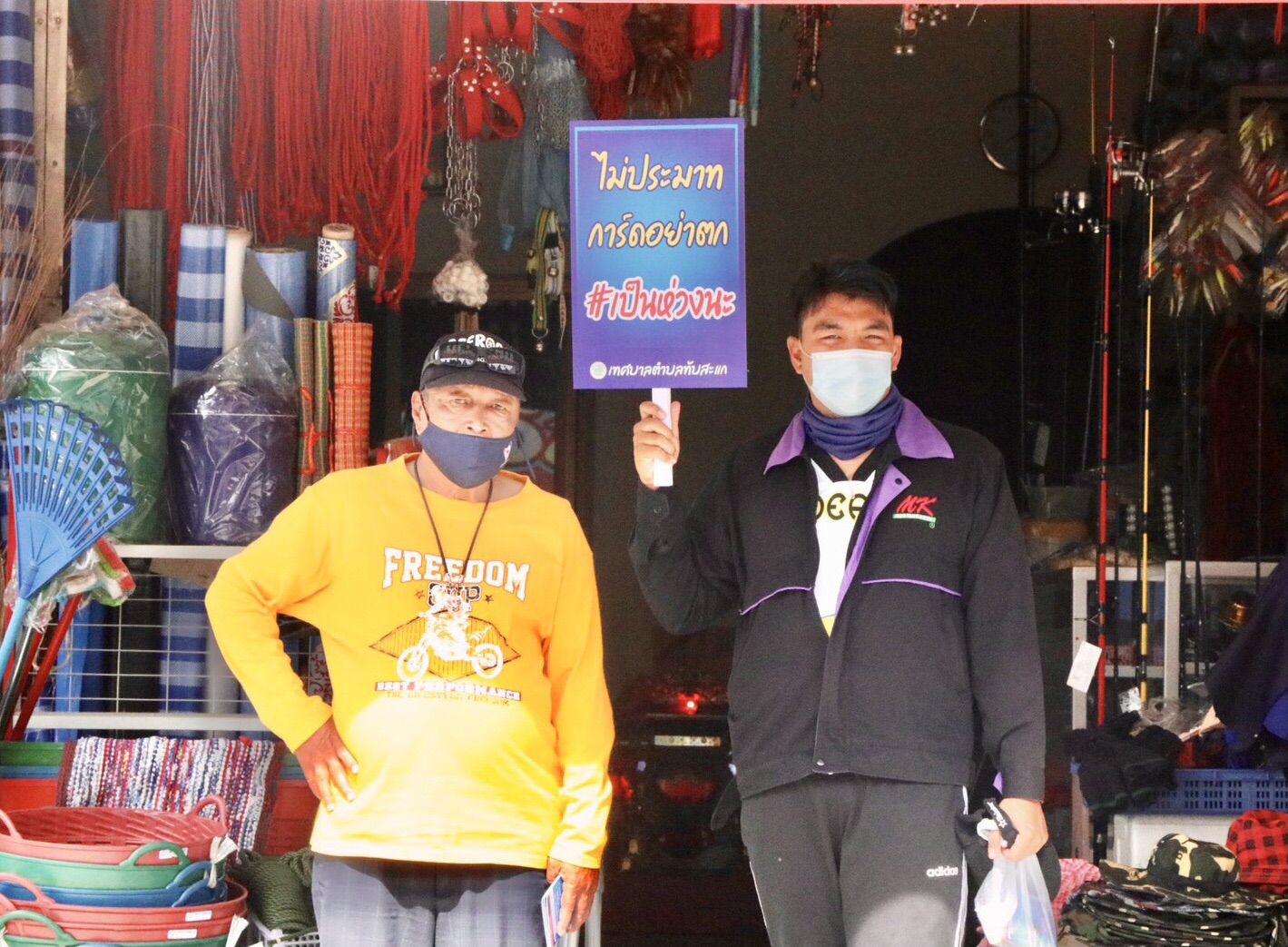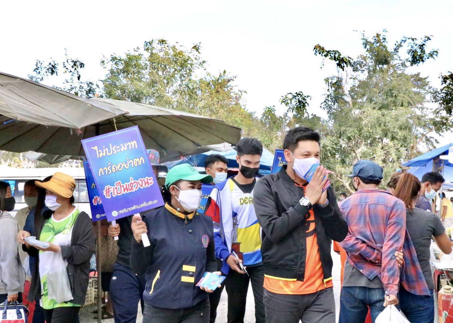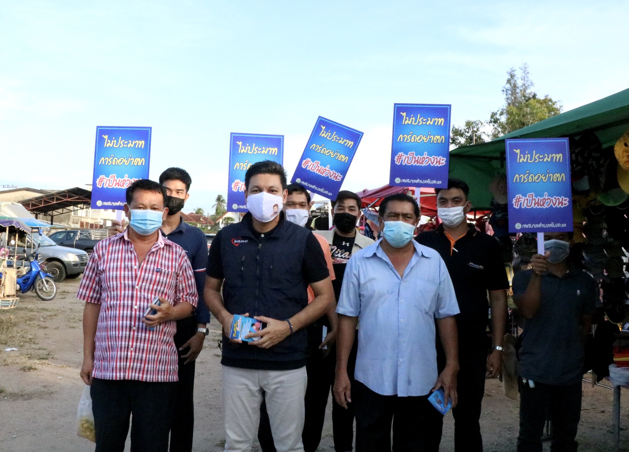 วันที่ 29 ธ.ค. 63 นายพงษ์พันธ์ เผ่าประทาน นายกเทศมนตรีเทศบาลตำบลทับสะแก พร้อม คณะผู้บริหาร สมาชิกสภา เจ้าหน้าที่สาธารณสุข เจ้าหน้าที่เทศบาลทับสะแก ลงพื้นที่ตลาดนัดหน้าสถานีรถไฟทับสะแก ตลาดสดในเขตเทศบาลตำบลทับสะแก และร้านค้า เพื่อรณรงค์ชาวบ้านพ่อค้าแม่ค้า ที่เดินทางมาซื้อของในตลาด ที่ไม่สวมใส่หน้ากากอนามัยพร้อมกับขอความร่วมมือเจ้าของตลาดนัดให้ร่วมกันรณรงค์ให้ชาวบ้านที่ออกมาซื้อสินค้าและซื้ออาหารสวมใส่หน้ากากอนามัย ตลอดเวลาเมื่อขณะออกจากบ้านไปตามสถานที่ต่างๆหรืออยู่บ้านเพื่อเป็นการป้องกันการแพร่เชื้อใวรัสโควิด 2019ไปตามหมู่บ้านชุมชนและตามสถานที่ต่างๆ