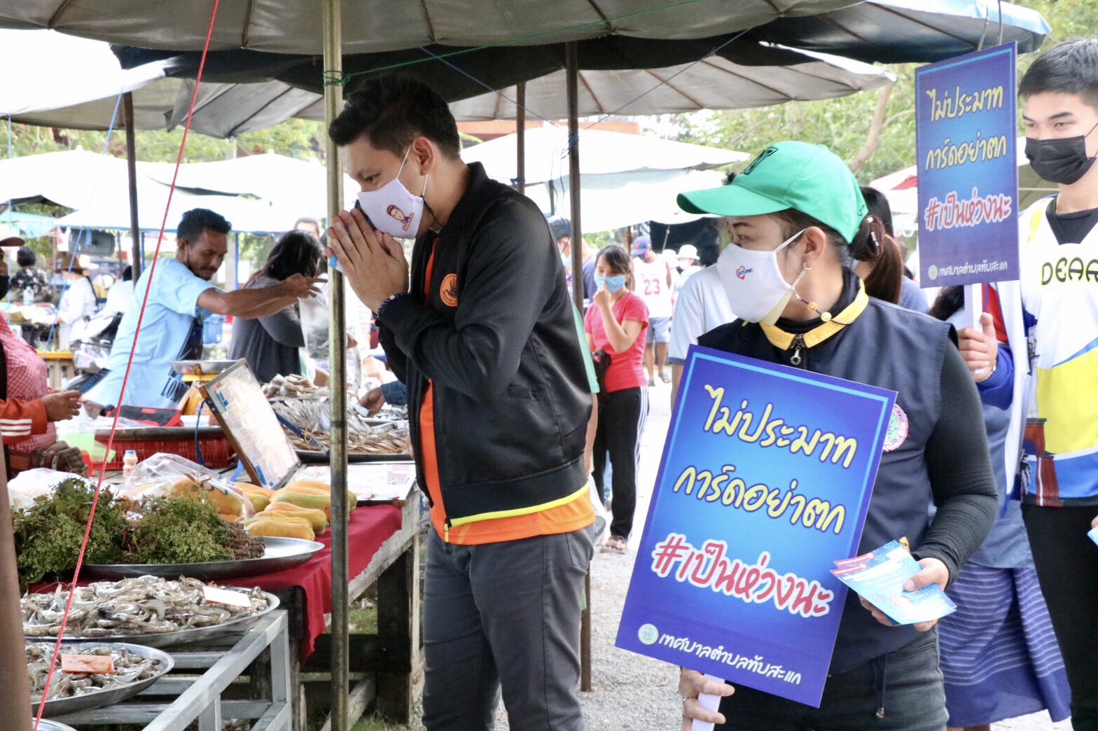 เทศบาลตำบลทับสะแก เข้ม..!! ลงพื้นที่ตลาดรณรงค์ชาวบ้านสวมหน้ากากอนามัย ป้องกันโควิด 19