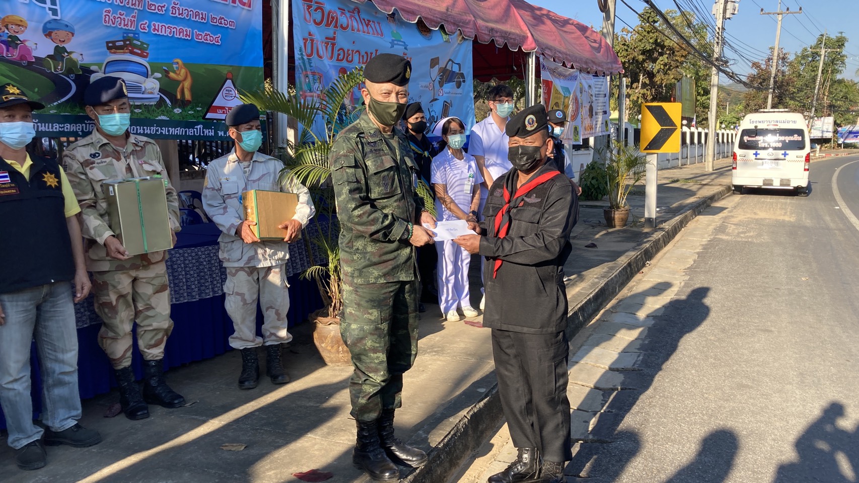 นโยบายกองทัพบกให้ทุกหน่วยปฏิบัติงานร่วมกับทุกภาคส่วนในช่วงปีใหม่ส่งท้ายปีเก่าให้ทุกพื้นที่ปลอดภัยทาง พันเอก ชาตรี สงวนธรรม รองผู้บัญชาการกองกำลังผาเมืองมาปฏิบัติราชการแทนผู้บัญชาการกองกำลังผาเมือง ได้เดินทางมาตรวจเยี่ยมหน่วยที่ปฏิบัติงานร่วมบูรณาการสร้างความปลอดภัยทางถนนในพื้นที่จังหวัดเชียงใหม่ แล้วได้เข้าพื้นที่อำเภอแม่อาย จังหวัดเชียงใหม่ ซึ่งมีหัวหน้าส่วนราชการได้เข้ามาต้อนรับที่ด่านปฏิบัติการความปลอดภัยทางถนนที่หน้าที่ทำการอำเภอแม่อาย โดยมี พันเอก เอกวุฒิ สุขรส ผู้บังคับกองบังคับการควบคุมฝ่ายทหารพรานศูนย์ปฏิบัติการกองทัพภาค3 พันเอกภาสกร กุลริวรรณ ผู้บังคับหน่วยเฉพาะกิจกรมทหารม้าที่5 ผาเมือง พร้อมทั้งนายเอกชัย กัลยา หัวหน้าสาธารณสุขอำเภอแม่อาย ได้รายงานถึงความปลอดภัยโควิด ที่ได้นำกลุ่มผู้เสี่ยงทั้งหมดตรวจรอบที่ 2 ทราบผลเป็นลบทั้งหมด