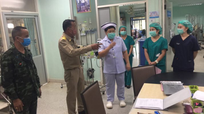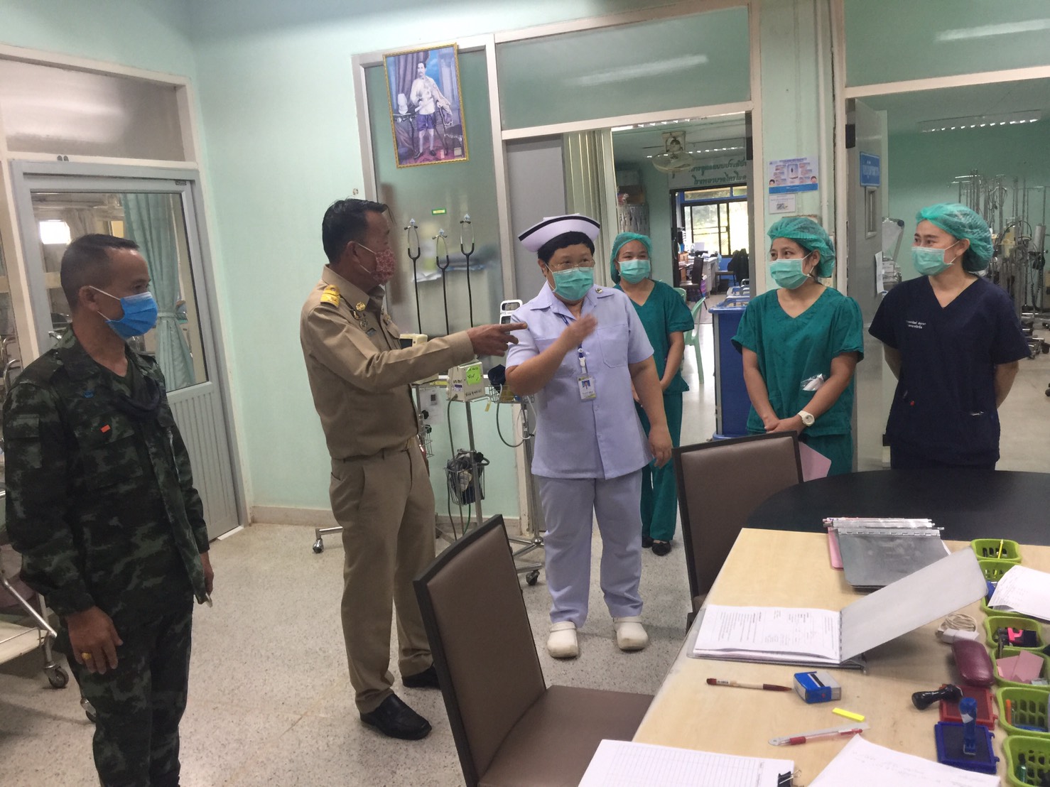 กาญจนบุรี นายอำเภอไทรโยครุดเยี่ยมผู้ป่วย โควิด รายแรกที่ รพ. ไทรโยค พร้อมให้กำลังใจผู้ป่วย