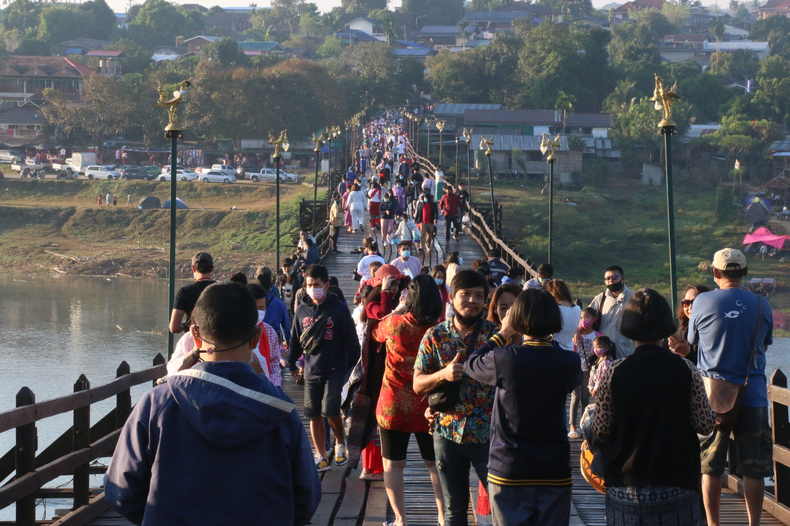 กาญจนบุรี บรรยากาศการเฉลิมฉลองปีใหม่และท่องเที่ยวในพื้นที่ อำเภอสังขละบุรี
