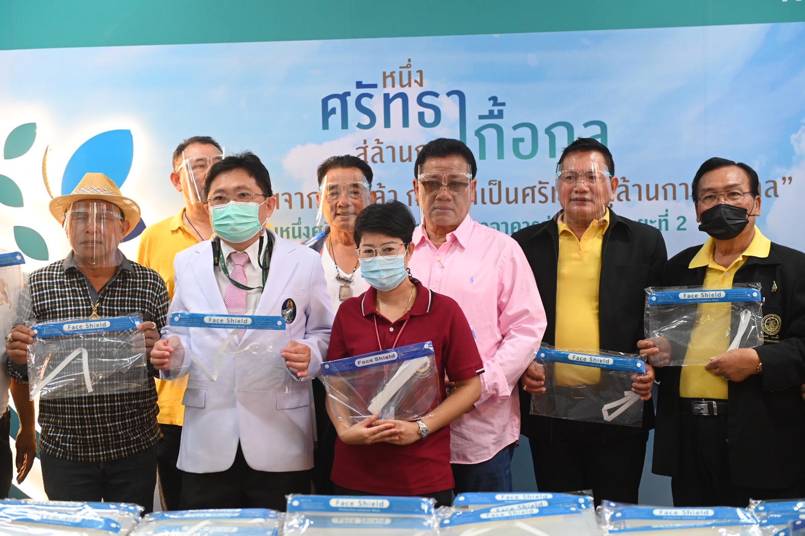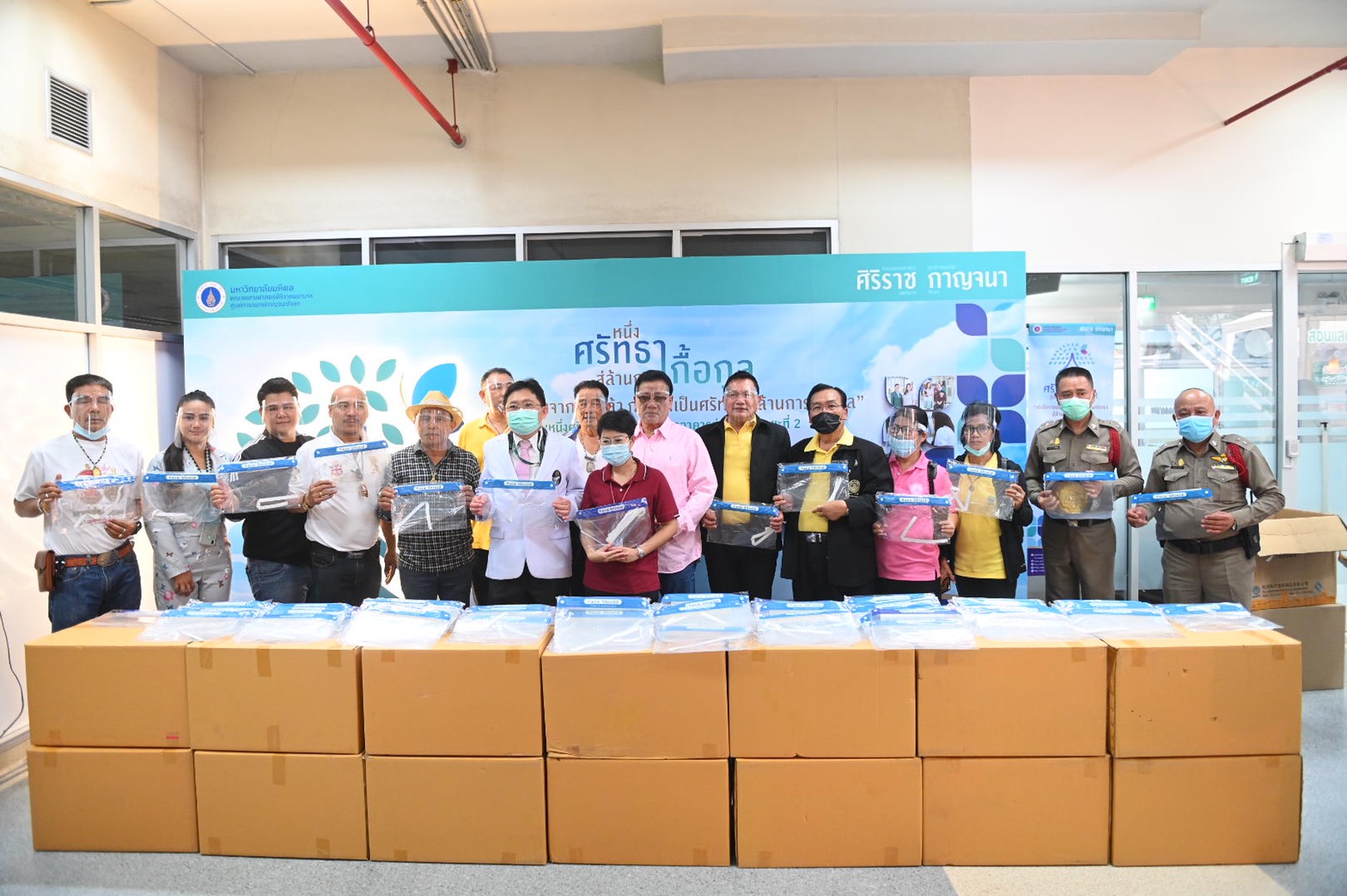 เพื่อมอบต่อให้กับคณะแพทย์ พยาบาลและบุคลากรทางการแพทย์ของศูนย์การแพทย์กาญจนาภิเษก นำไปใช้ประโยชน์ในการปฎิบัติงานในการป้องกันจากสถานการณ์แพร่ระบาดของโรคติดเชื้อไวรัสโคโรนา 2019 (โควิด-19) รวมทั้งในวันนี้ได้มอบหน้ากากFace Shieldให้กับ โรงพยาบาลพุทธมณฑล จำนวน 1,500 ชิ้น โรงพยาบาลราชพิพัฒน์ จำนวน 1,500 ชิ้น สถานีตำรวจภูธรพุทธมณฑล จำนวน200ชิ้น สถานีตำรวจศาลาแดง จำนวน 200 ชิ้น สถานีตำรวจธรรมศาลา จำนวน 200 ชิ้น