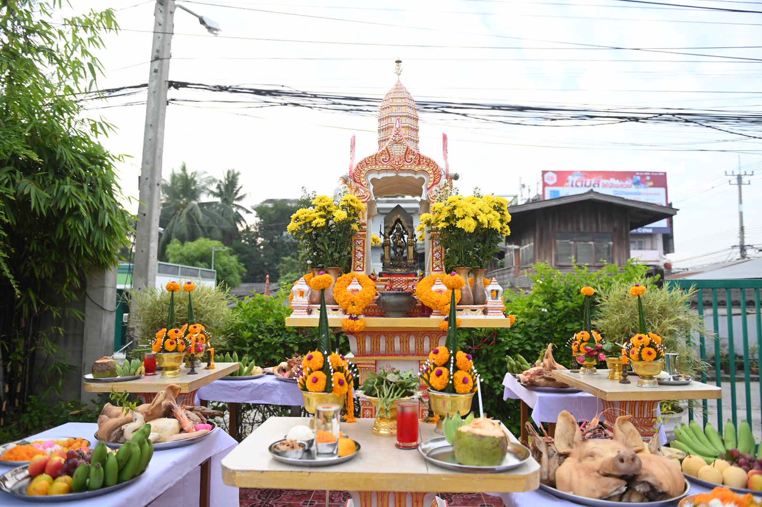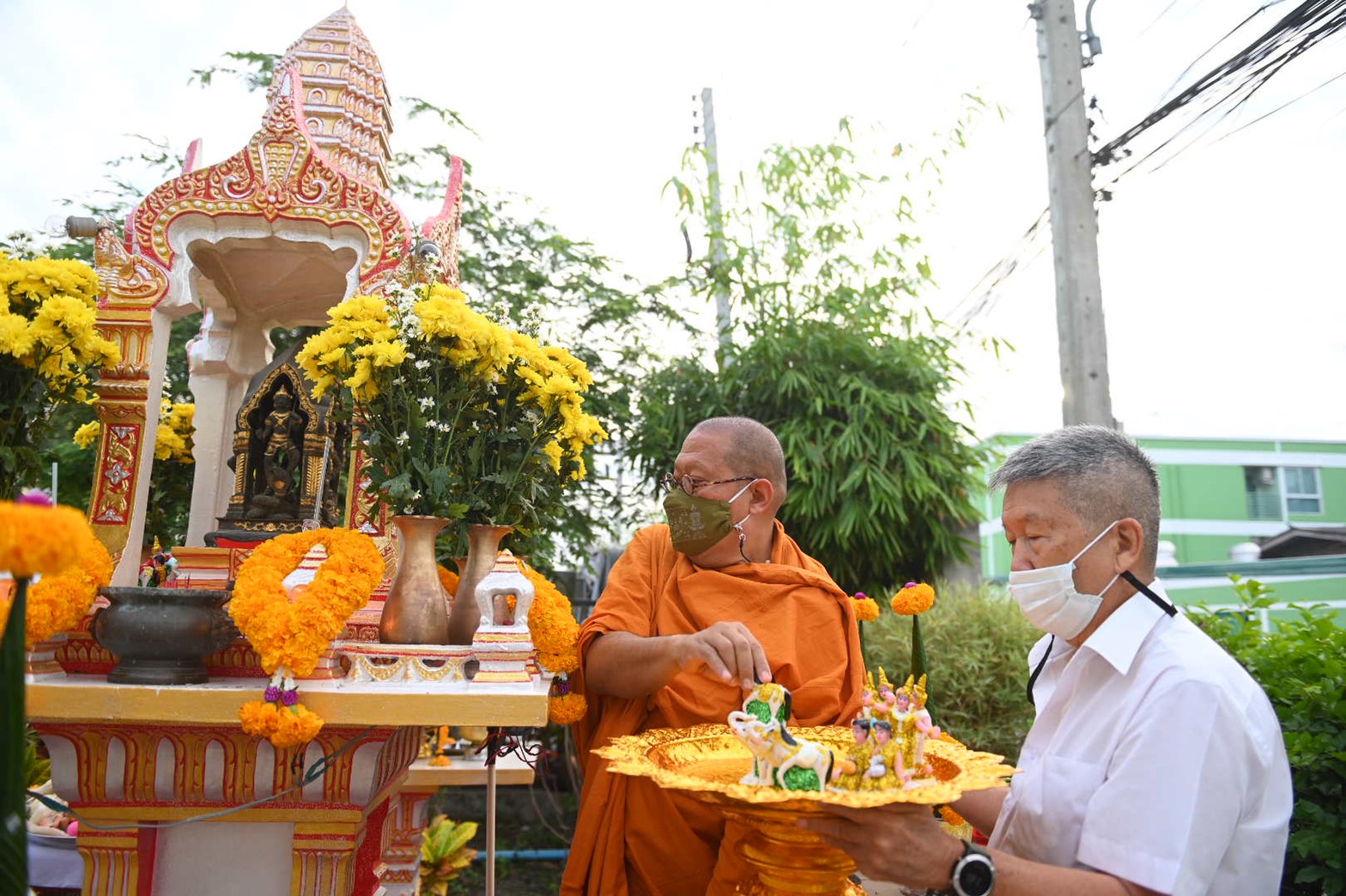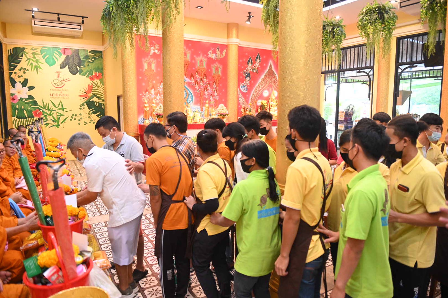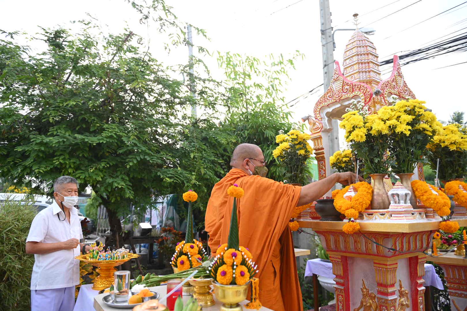 พร้อมกันนี้ พระครูปลัดสิทธิวัฒน์(หลวงพี่น้ำฝน) ได้อำนวยพรปีใหม่ และอธิษฐานจิตเครื่องประดับศาลพระภูมิชุดใหม่นำไปเปลี่ยนในศาลพระภูมิประจำที่ร้านนี้ อันประกอบด้วย ตุ๊กตาชาย 1 คู่ หญิง 1 คู่ ช่าง 1คู่ ม้า 1 คู่ ละครยกหญิงชาย 2 โรง และอื่นๆ เพื่อความเป็นสิริมงคล และมอบวัตถุมงคลให้พนักงานทุกคน