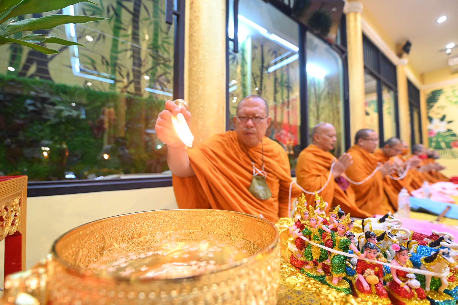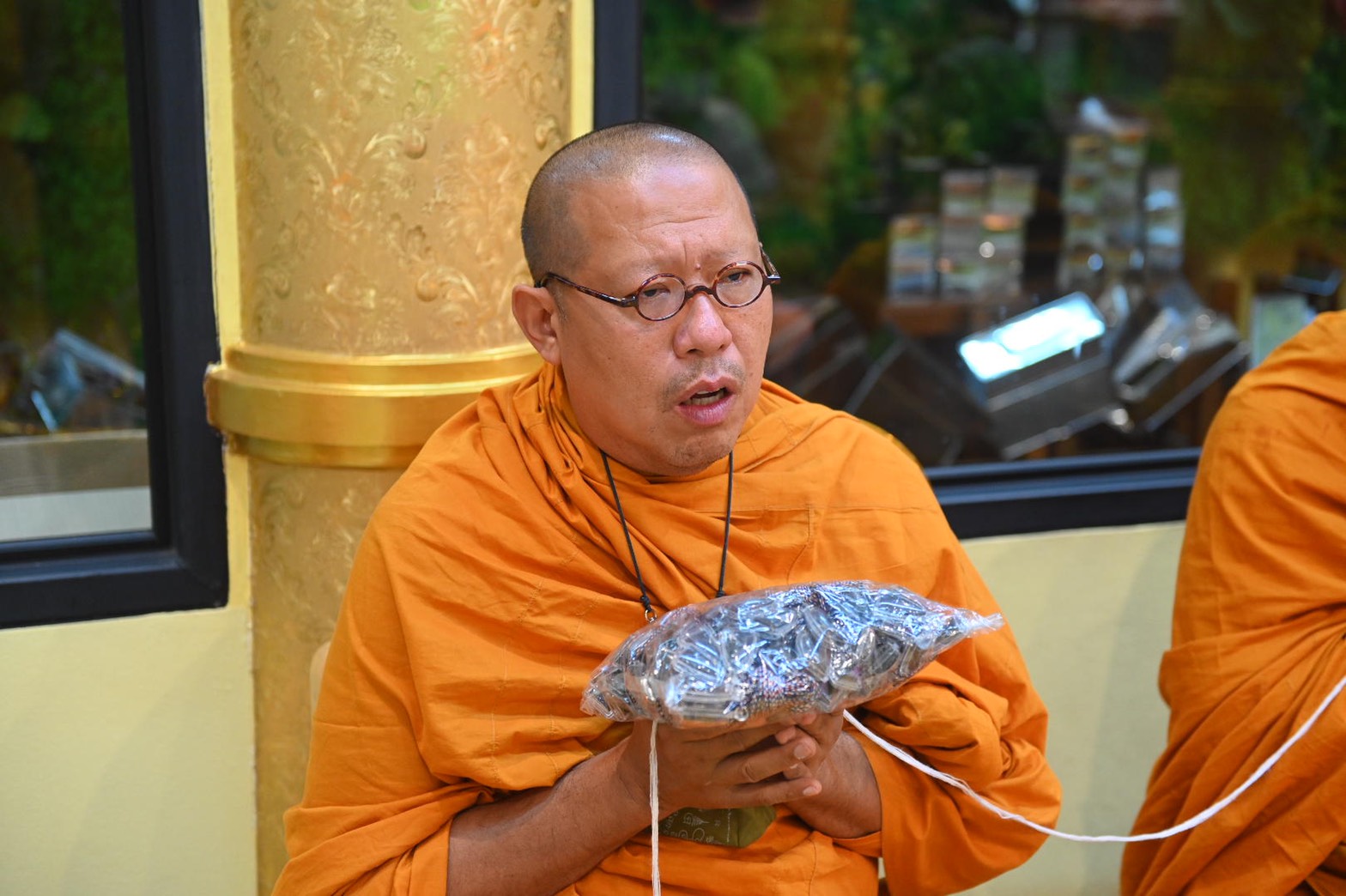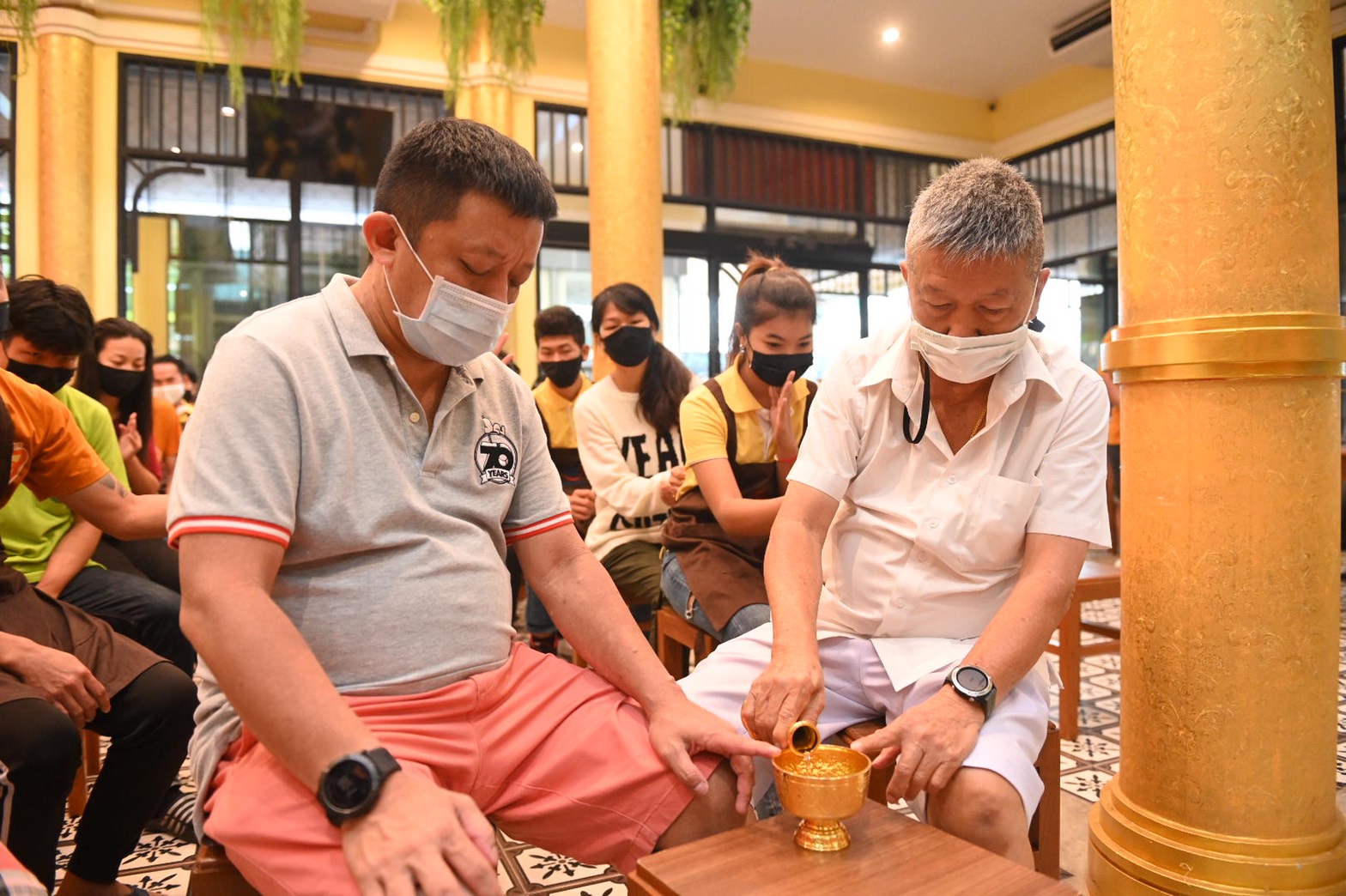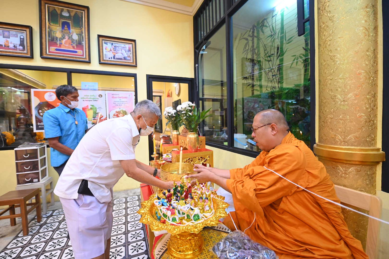 พร้อมกันนี้ พระครูปลัดสิทธิวัฒน์(หลวงพี่น้ำฝน) ได้อำนวยพรปีใหม่ และอธิษฐานจิตเครื่องประดับศาลพระภูมิชุดใหม่นำไปเปลี่ยนในศาลพระภูมิประจำที่ร้านนี้ อันประกอบด้วย ตุ๊กตาชาย 1 คู่ หญิง 1 คู่ ช่าง 1คู่ ม้า 1 คู่ ละครยกหญิงชาย 2 โรง และอื่นๆ เพื่อความเป็นสิริมงคล และมอบวัตถุมงคลให้พนักงานทุกคน