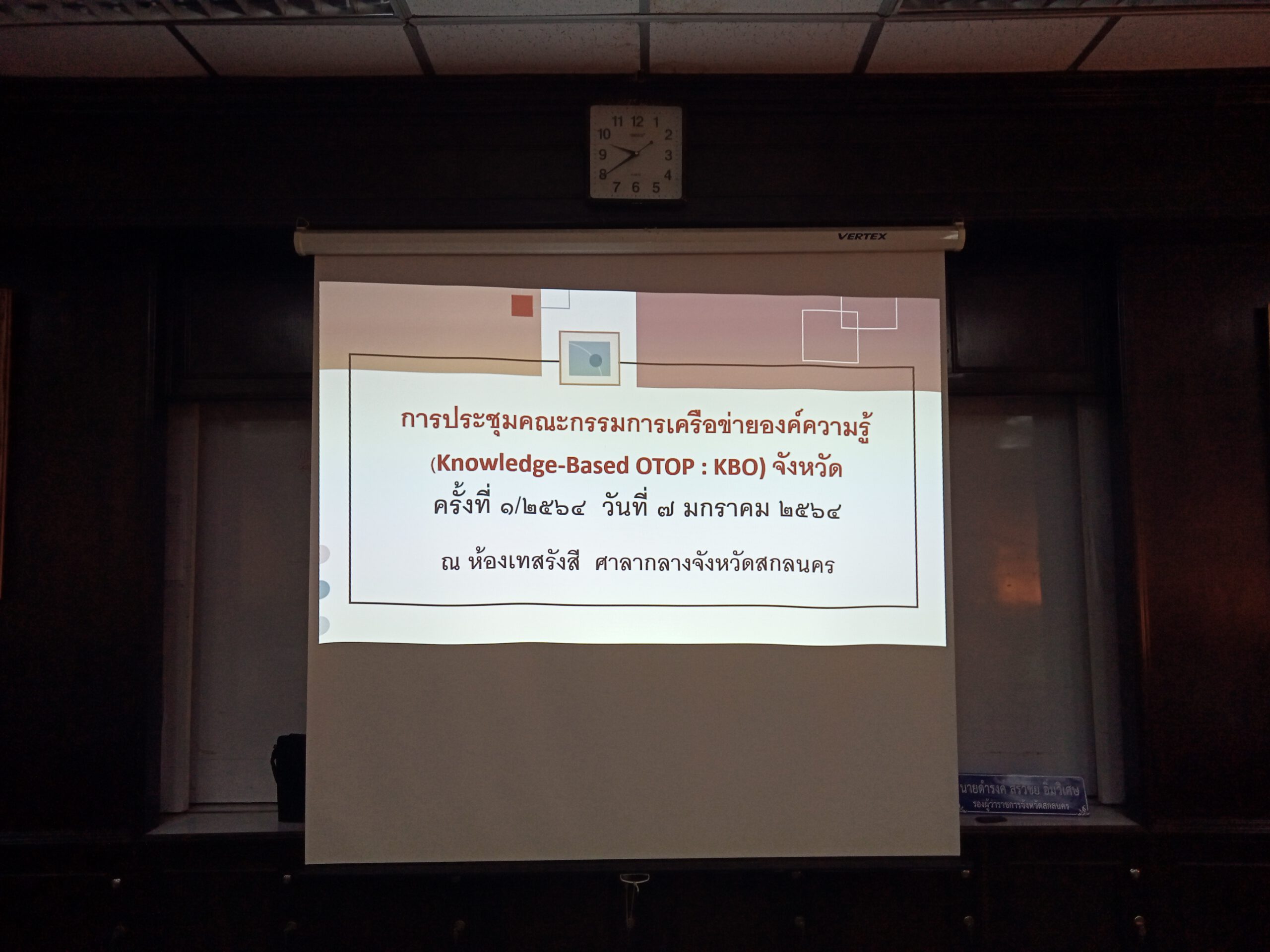 นายวิฑูรย์ นวลนุกูล รองผู้ว่าราชการจังหวัดสกลนคร ประธานการประชุมคณะกรรมการเครือข่ายองค์ความรู้(Knowledge – Based OTOP : KBO) โดยมีนายสมาน พั่วโพธิ์ พัฒนาการจังหวัดสกลนคร เลขานุการคณะทำงาน KBO ผู้ประกอบการ OTOP และผู้เกี่ยวข้อง ได้รายงานความก้าวหน้าการสนองแนวพระวินิจฉัยเกี่ยวกับการพัฒนาผ้าไทย ของสมเด็จพระเจ้าลูกเธอ เจ้าฟ้าสิริวัณณวรี นารีรัตนราชกัญญา ณ ห้องประชุมเทศรังสี ศาลากลางจังหวัดสกลนคร