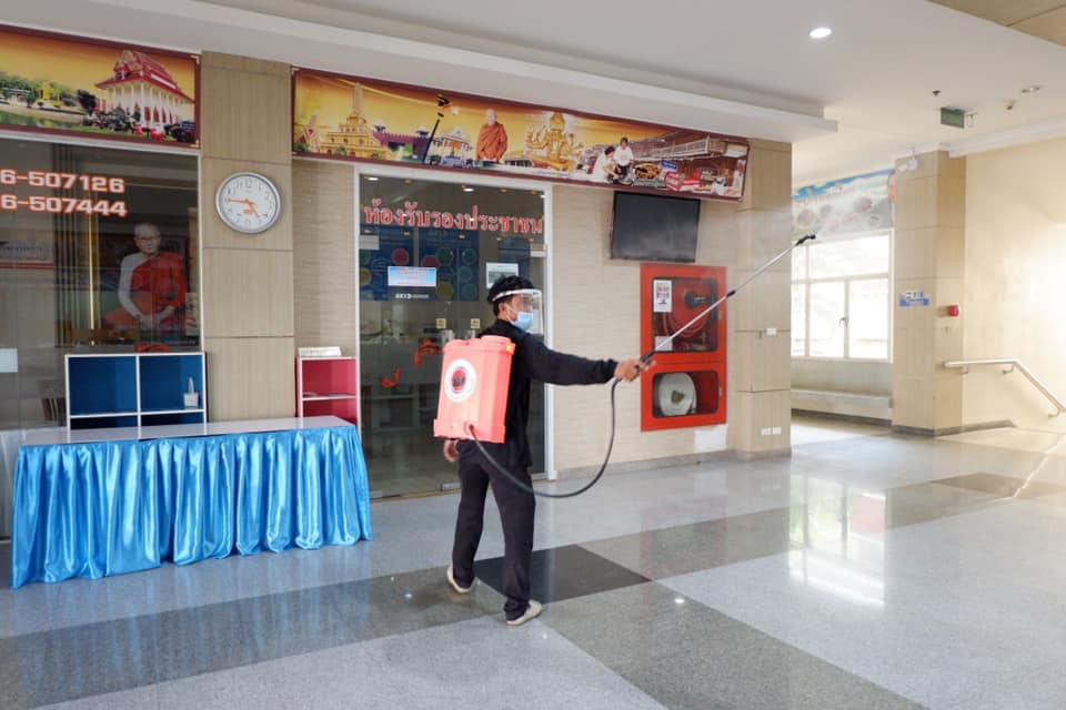 สิงห์บุรี ผู้ว่าฯสั่งฉีดพ่นน้ำยาฆ่าเชื้อโควิด-19 รอบ ศูนย์ราชการจังหวัดสิงห์บุรี