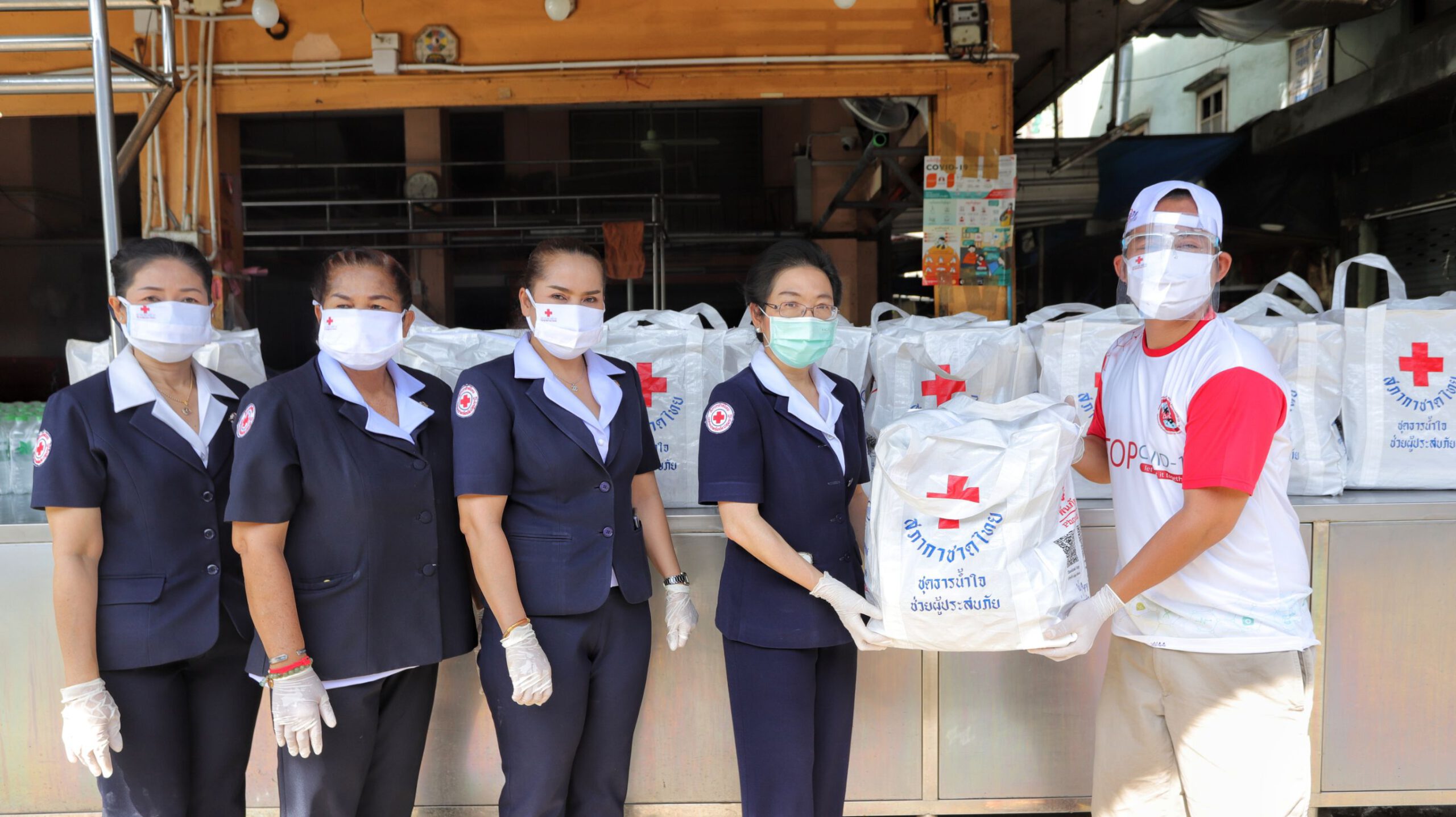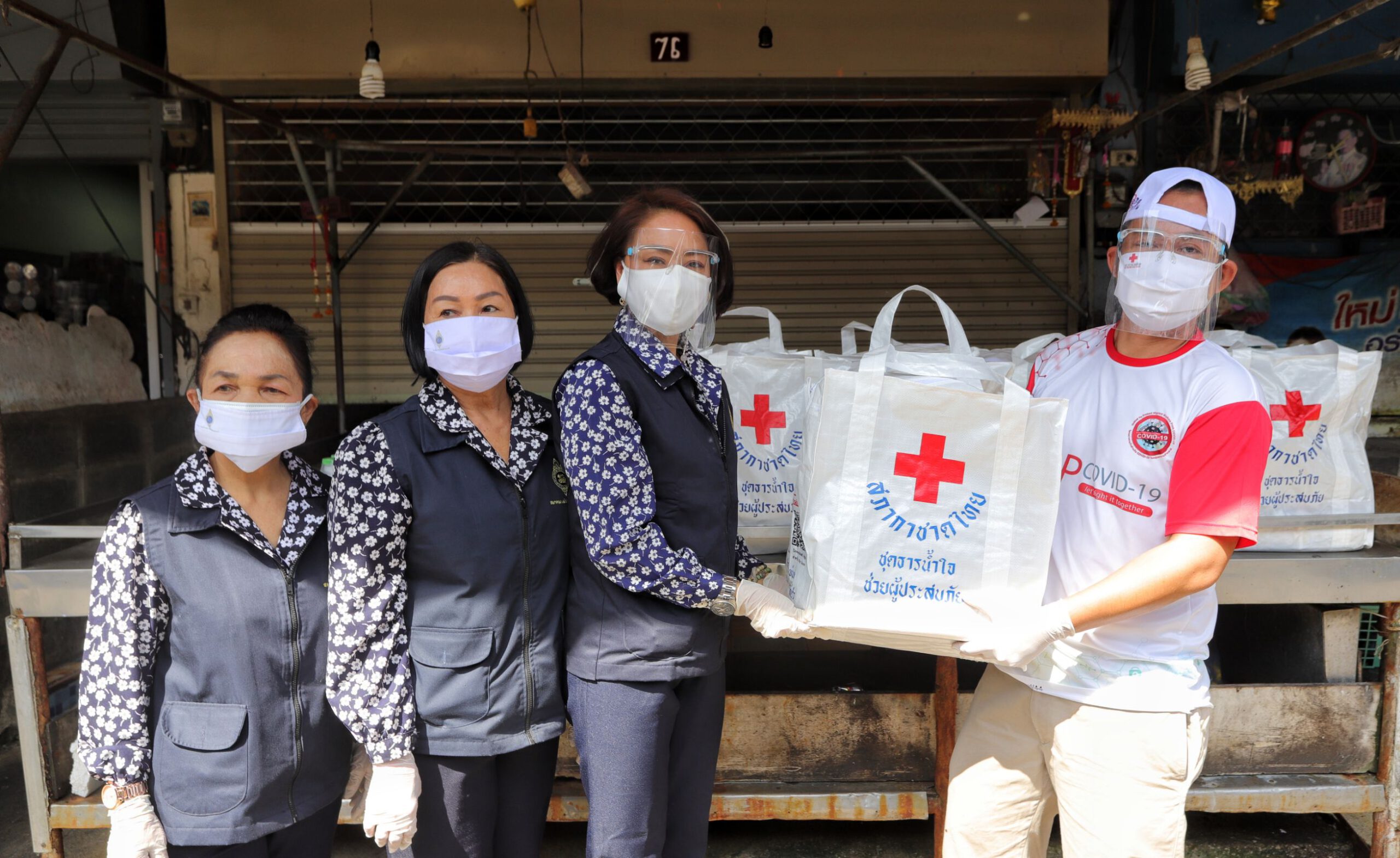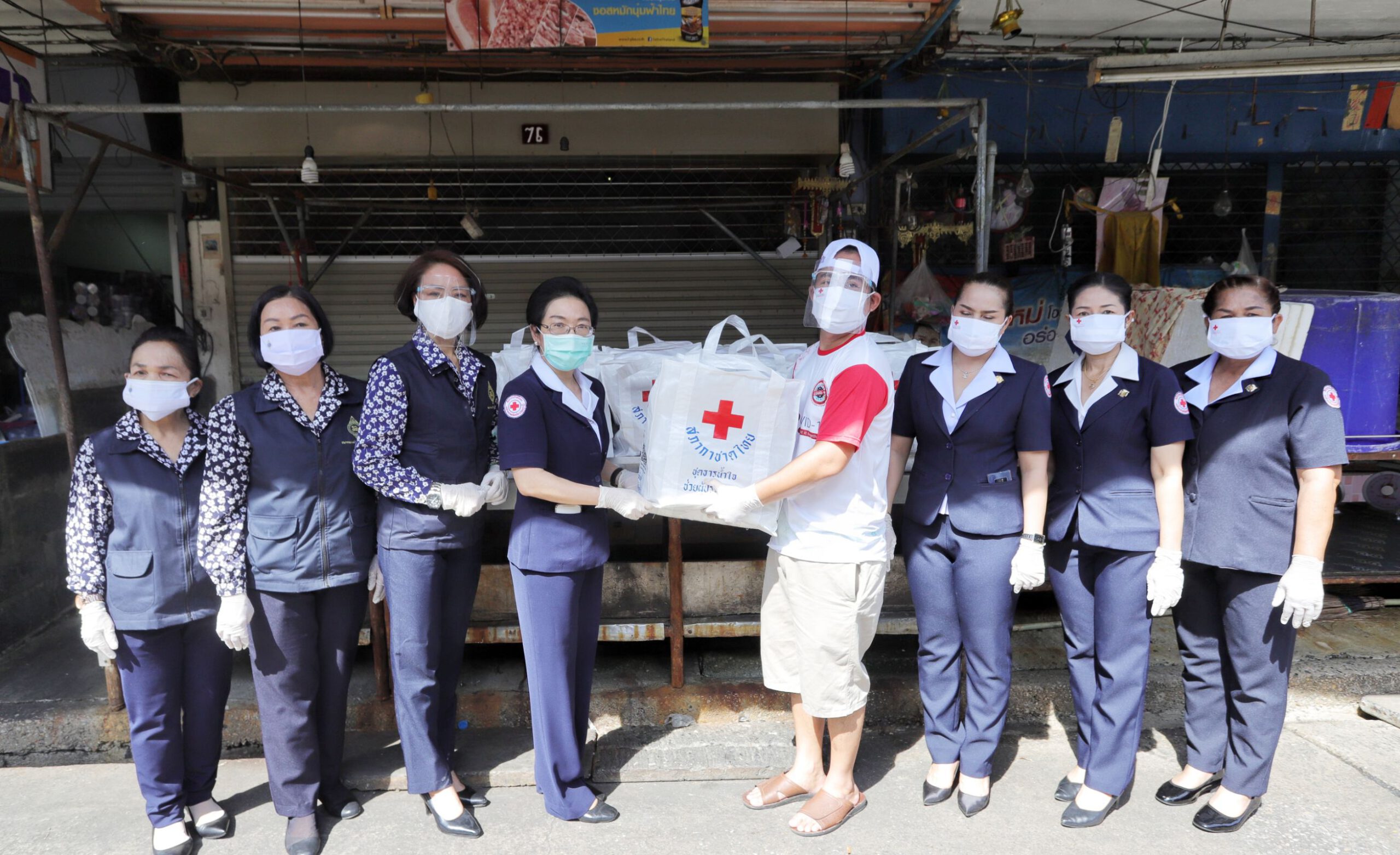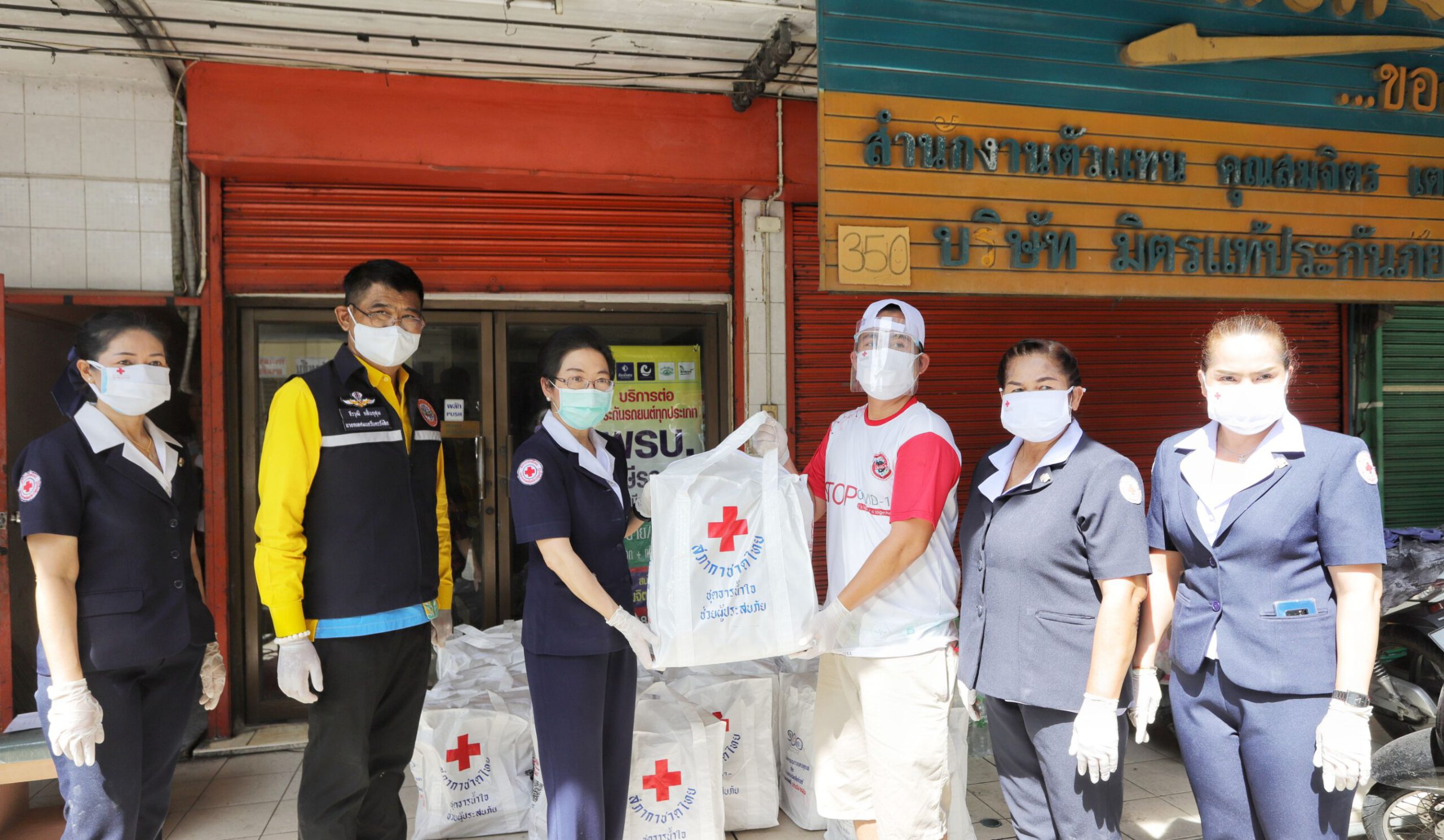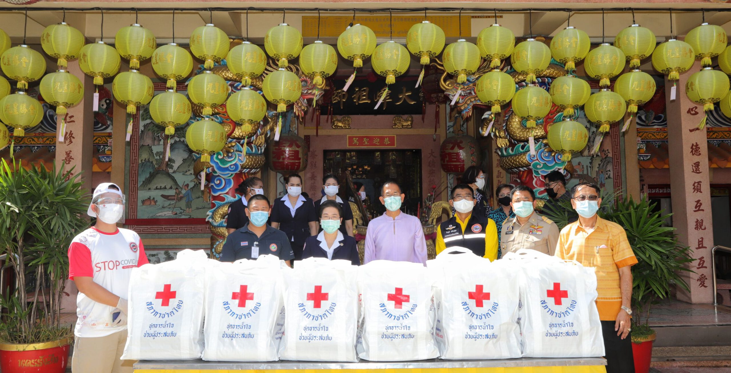 ร่วมมอบชุดธารน้ำใจถุงยังชีพฝ่าวิกฤตโควิด-19 พร้อมน้ำดื่ม จำนวน 386 ชุด หน้ากากอนามัยแบบผ้าสำหรับผู้ใหญ่ จำนวน 386 ชิ้น แอลกอฮอล์เจล จำนวน 386 หลอด และหนังสือคู่มืออธิบาย ภาษาเมียนมา ให้แก่ผู้เสี่ยงต่อการติดเชื้อ Covid-19 ณ มูลนิธิรวมใจรังสิตปทุมธานี (ไต่ฮงกงรังสิต) ตำบลประชาธิปัตย์ อำเภอธัญบุรี จังหวัดปทุมธานี พร้อมทั้งตรวจเยี่ยมศูนย์บริหารสถานการณ์โรคติดเชื้อ Covid-19 บริเวณตลาดสุชาติ ตลาดพรพัฒน์ เพื่อให้กำลังใจเจ้าหน้าที่ทางการแพทย์ที่ปฏิบัติงาน