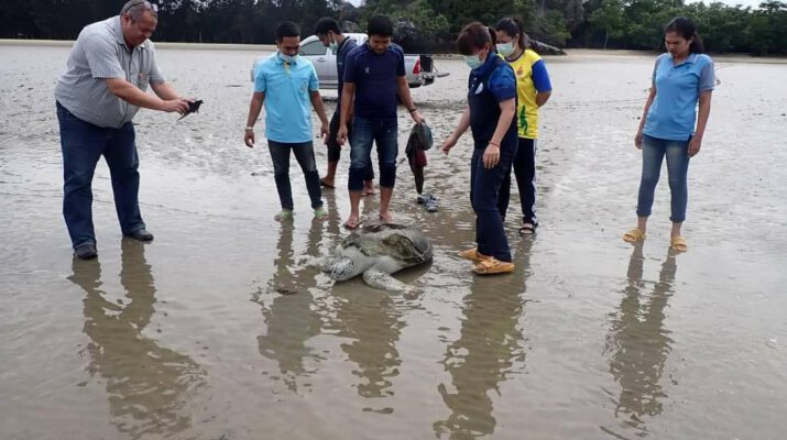สถาบันทรัพยากรธรรมชาติและสิ่งแวดล้อม มหาวิทยาลัยเทคโนโลยีราชมงคลศรีวิชัย วิทยาเขตตรัง ร่วมกับ ศูนย์วิจัย ทช. ทะเลอันดามันตอนล่าง ส่งแม่เต่าตนุคืนทะเลตรัง
