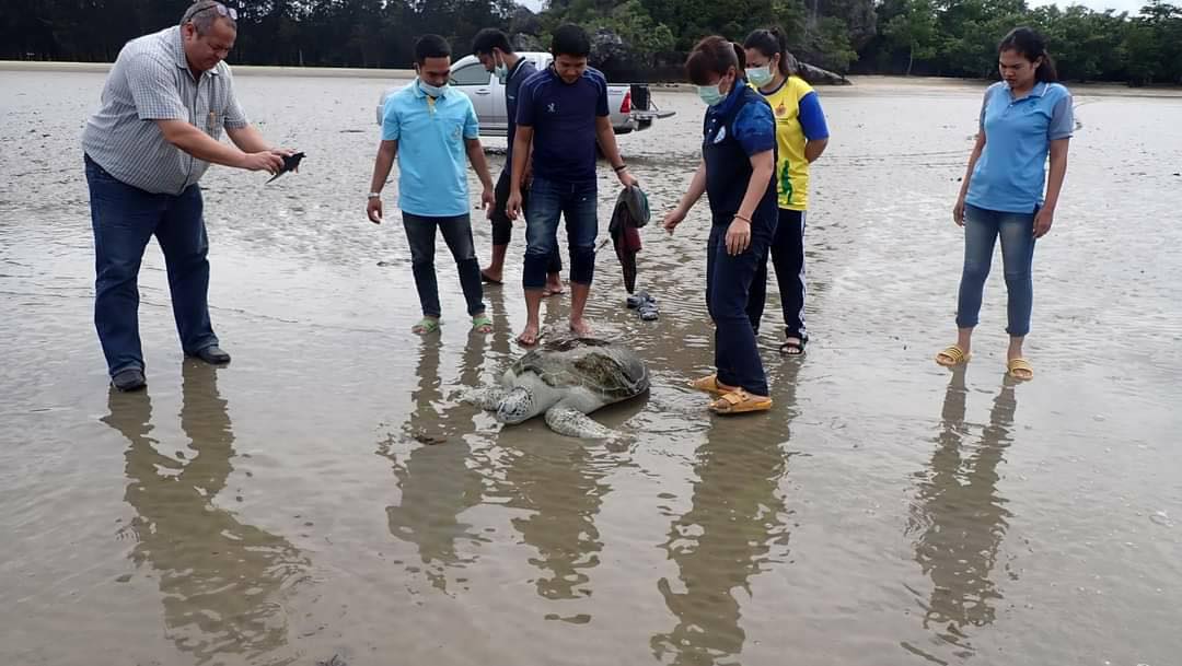 สถาบันทรัพยากรธรรมชาติและสิ่งแวดล้อม มหาวิทยาลัยเทคโนโลยีราชมงคลศรีวิชัย วิทยาเขตตรัง ร่วมกับ กรม ทช. โดยศูนย์วิจัย ทช. ทะเลอันดามันตอนล่าง นำเต่าตนุเกยตื้นมีชีวิต ซึ่งรักษาจนหายเป็นปกติแล้วไปปล่อยกลับคืนสู่ธรรมชาติ โดยเต่าตนุตัวดังกล่าวเกยตื้นเมื่อวันที่ 8 กรกฎาคม 2563 ที่ผ่านมา พบบริเวณหาดหยงหลิง ต.เกาะลิบง อ.กันตัง จ.ตรัง ห่างจากชายฝั่งทะเลประมาณ 700 ม. เป็นเต่าตนุ เพศเมีย ขนาดความยาวของกระดอง 83 ซม. กว้าง 75 ซม. น้ำหนัก 47 กก. สภาพแรกพบอ่อนแรง มีเพรียงและตะไคร่น้ำเกาะอยู่ทั่วร่างกาย เมื่อนำมารักษาและอนุบาล ณ สถาบันทรัพยากรธรรมชาติและสิ่งแวดล้อม มหาวิทยาลัยเทคโนโลยีราชมงคลศรีวิชัย วิทยาเขตตรัง รวม 6 เดือน