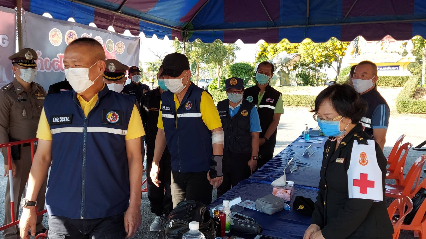 หลังจากนั้น ได้มอบ ผลไม้ เจลล้างมือ หน้ากากอนามัย แก่เจ้าหน้าที่ที่ปฏิบัติงานเพื่อเป็นขวัญและกำลังใจในการปฏิบัติงาน