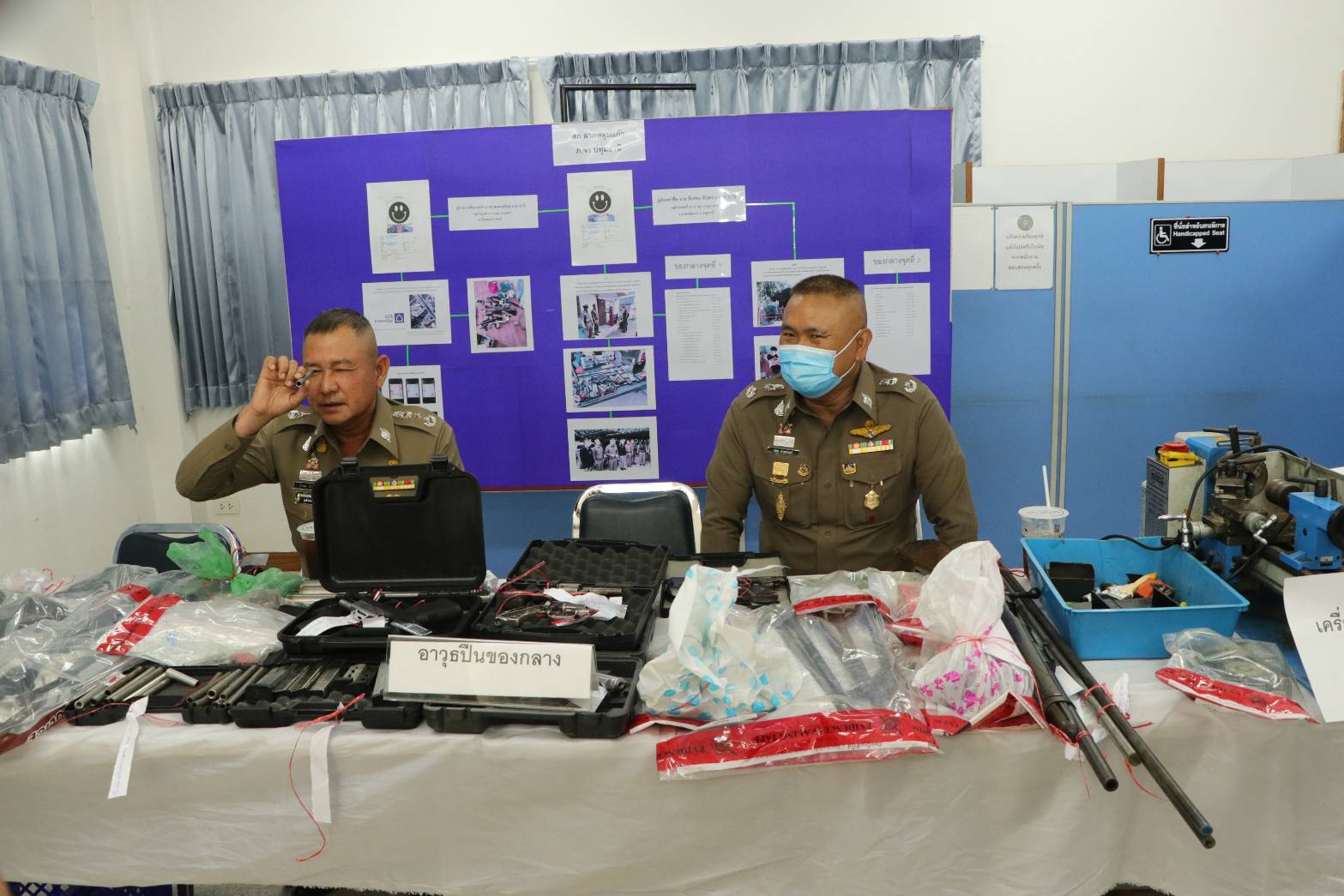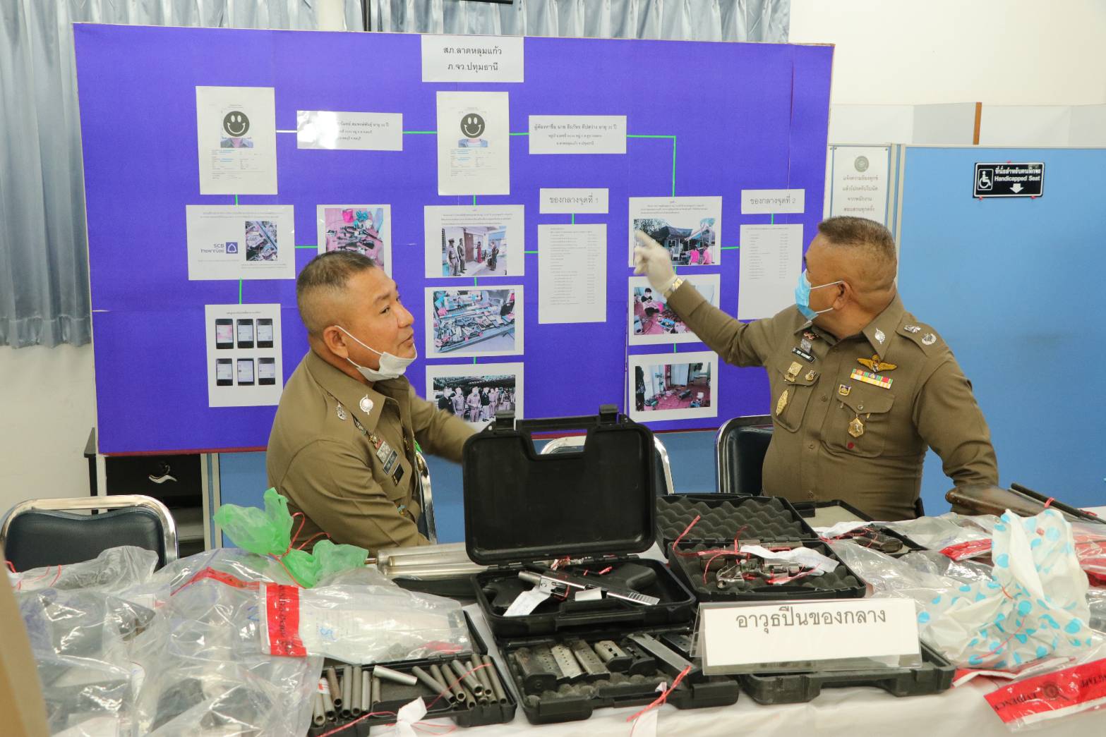 เมื่อเวลา 10.00น.วันที่11ม.ค.64พล.ต.ท.อำพล บัวรับพร ผบช.ภ.1 พร้อมด้วย พล.ต.ต.ชยุต มารยาทตร์ผบก.ภ.จว.ปทุมธานี, และ พ.ต.อ.นิทัศน์ จิตตวิทยานุกูล ผกก.สภ.ลาดหลุมแก้ว ร่วมแถลงข่าวจับกุม นายธีรภัทร (กล๊อฟ) ทีปสว่าง อายุ 30 ปี ต.คูบางหลวง อ.ลาดหลุมแก้ว จว.ปทุมธานี โดยกล่าวหาว่า 1.มีอาวุธปืนและเครื่องกระสุนปืน ไว้ในครอบครองโดยไม่ได้รับอนุญาตจากนายทะเบียน 2.ทำ ประกอบ ซ่อมแซมเปลี่ยนลักษณะ สั่ง นำเข้า มี หรือ จำหน่ายอาวุธปืน หรือเครื่องกระสุนปืนสำหรับการค้า โดยไม่ได้รับอนุญาตจากนายทะเบียน 3.มีอาวุธปืนที่นายทะเบียนไม่สามารถออกใบอนุญาตให้ได้ กฎกระทรวง ฉบับที่ 11 (พ.ศ.2522) 4.พกพาอาวุธ(อาวุธมีด)ไปในเมือง หมู่บ้าน บนทางสาธารณะ โดยไม่มีเหตุอันควร พร้อมด้วยของกลาง อาวุธปืน M 16 จำนวน 4 กระบอก อาวุธปืนพกสั้นไทยประดิษฐ์ จำนวน 6 กระบอก อาวุธปืน BLANKGUN จำนวน 3 กระบอก เครื่องกระสุนปืนขนาดต่างๆ จำนวน 242 นัด ท่อเหล็กสำหรับกลึงทำลำกล้องปืน จำนวน 3 ชิ้น โครง BLANKGUN สำหรับแปลงเป็นอาวุธปืนไทยประดิษฐ์ จำนวน 5 โครง เครื่องกลึงลำกล้องปืน พร้อมอุปกรณ์ จำนวน 1 เครื่อง แท่นอัดไฮโดรลิค จำนวน 1 เครื่อง สว่าน จำนวน 1 ตัว เครื่องเจีย จำนวน 1 ตัว ปากกาสำหรับจับอุปกรณ์ จำนวน 1 ตัว