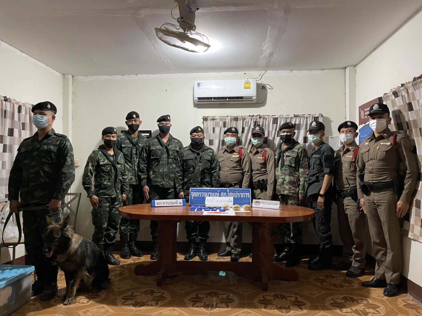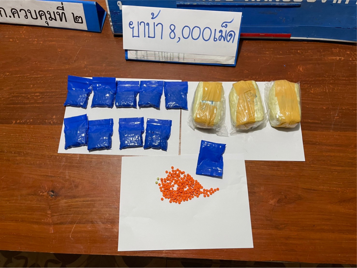 รอง ผบช.ภ.5(สส) พล.ต.ต.พิเชษฐ จีระนันตสิน ผบก.ภ.จ.เชียงใหม่ พ.ต.อ.ทรงกริช ออนตะไคร้ รอง ผบก.ภ.จ.เชียงใหม่ พ.ต.อ.พิธาน ขวัญเมือง ผกก.สภ.ไชยปราการพ.ต.ท.จรัล. คำปา รอง ผกก.ป.สภ.ไชยปราการชุดจับกุมประกอบด้วย ฯ ร.ต.อ.ปิยะ สีทา รอง สวป.สภ.ไชยปราการ พร้อมเจ้าหน้าที่ผาหงษ์และเจ้าหน้าที่ทหารได้ร่วมทำการจับกุม ผู้ต้องหา ได้ร่วมกันตรวจยึดพร้อมด้วยของกลางดังนี้ ยาเสพติดให้โทษประเภท 1 (เมทแอมเฟตามีนหรือยาบ้า)ชนิดเม็ดสีส้มและสีเขียวปะปนกัน จำนวน ประมาณ 8,000 เม็ดซุกซ่อนในตะกร้าใส่ผัก จำนวน 1 ตะกร้าตำแหน่งที่พบของกลาง ของกลางลำดับที่ 1 บรรจุอยู่ในถุงสีฟ้าชนิดมีซิปรูดปิดปากถุงจำนวน 40 ถุงๆละประมาณ 200 เม็ดแล้วมัดรวมกันด้วยยางรัดของเป็นมัดๆละ 10 ถุง จำนวน 4 มัด แล้วห่อหุ้มแต่ละมัดด้วยพลาสติกใสและกระดาษสาเคลือบไขกันชื้นอีกอย่างละ 1 ชั้นซุกซ่อนอยู่ในมัดผักกาดบรรจุอยู่ใน