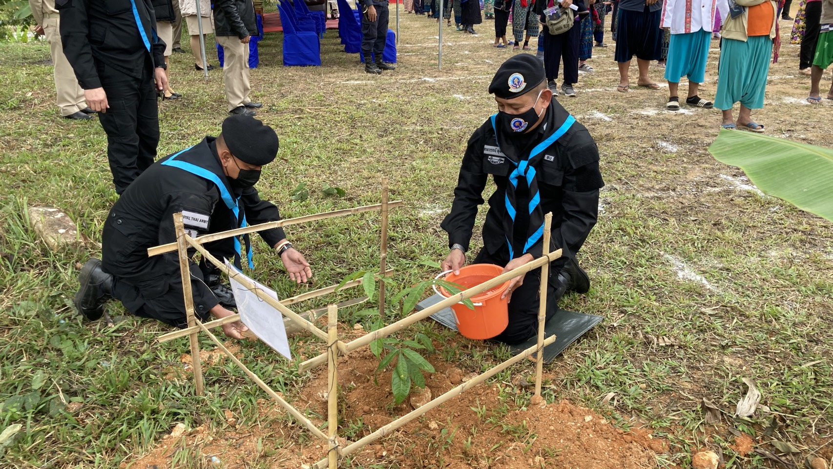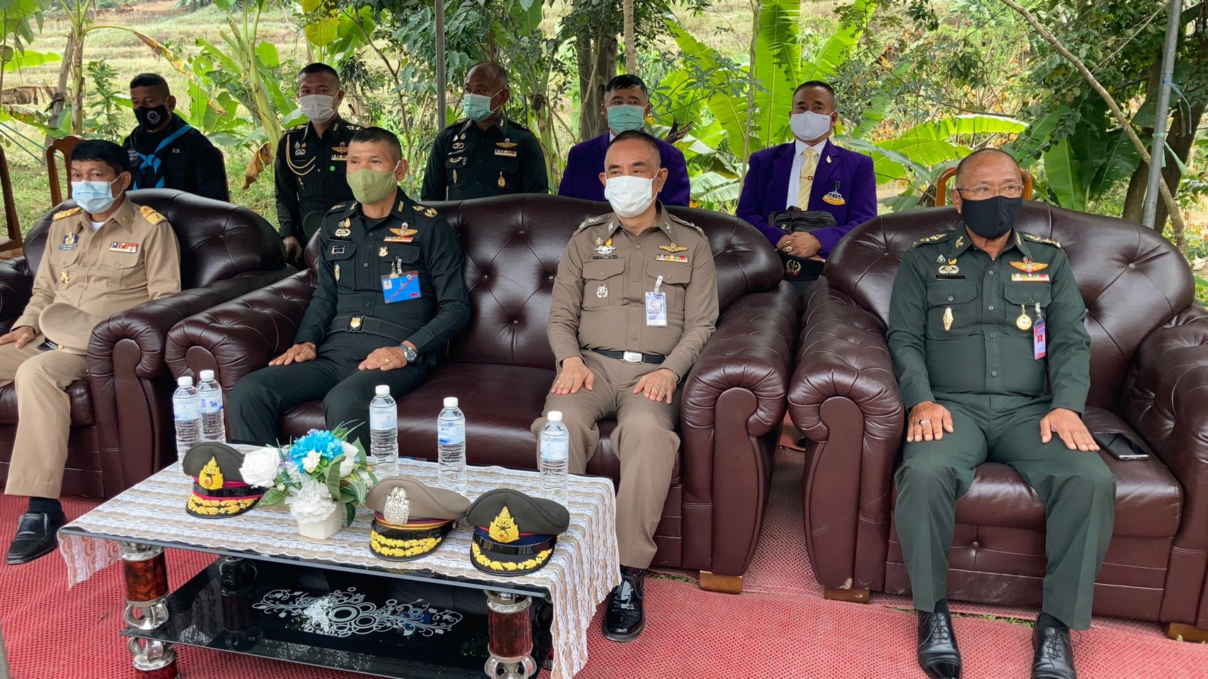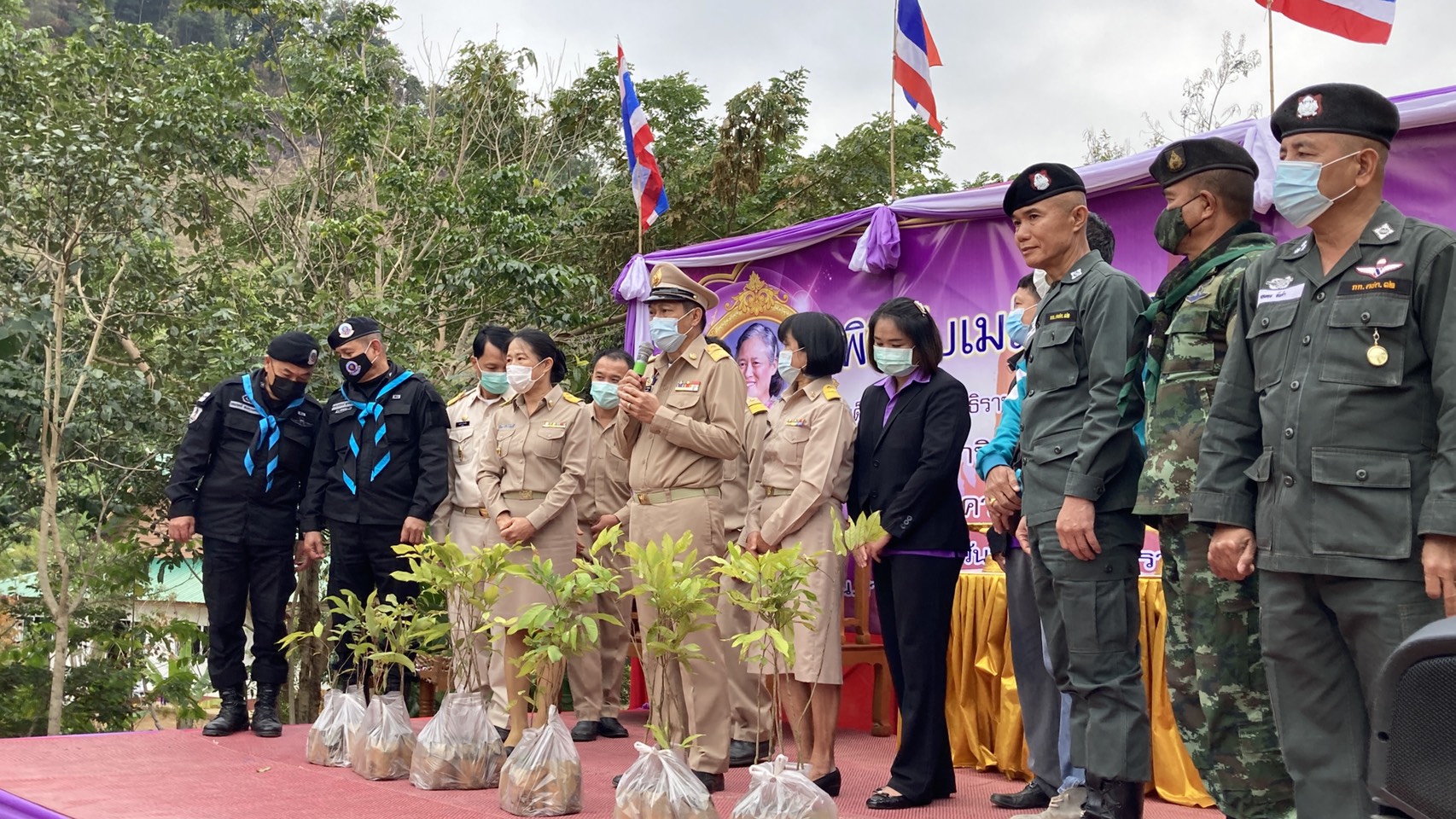 จากนั้นพลตรี สัชฌาการ คุณยศยิ่ง ผู้บัญชาการมณฑลทหารบกที่ 37 ได้กล่าวสำนึกในพระมหากรุณาธิคุณ ได้ทรงห่วงใยราษฎร ในพื้นที่จังหวัดชายแดนภาคเหนือ ทรงพระกรุณาพระราชทานเมล็ดพันธุ์ผักให้แก่ราษฎรได้นำไปปลูก ให้มีความมั่นคงด้านอาหารอย่างยั่งยืน ในโอกาสต่อไปด้วย จะขอน้อมนำพระราชดำริ มาประพฤติปฏิบัติ จะขออาสาทำความดี ตามรอยพระบาท เพื่อช่วยเหลือคนอื่นตลอดไป จากนั้นได้ร่วมปลูกต้นไม้เป็นต้นสาละต้นไม้ทางพระพุทธศาสนา มีผู้เข้าร่วมทั้งพระสงฆ์และหัวหน้าส่วนราชการ พระอาจารย์สมบูรณ์ ปภัสสโร พระสงฆ์พัฒนาชายแดนภาคเหนือ สำนักสงฆ์จะพือ พร้อมพระสงฆ์พัฒนาชายแดนภาคเหนือ24 รูป พลตรี ชินวิช วิชัยธนพัฒน์ ผู้บังคับการตำรวจภูธรจังหวัดเชียงราย พลตรีสุวิทย์ วังยาว มูลนิธิศิษย์นายร้อย นายวรายุทธ ค่อมบุญ นายอำเภอแม่จัน พันโท สกลวรรธน์ พุ่มมรินทร์ รองผู้บังคับหน่วยเฉพาะกิจทหารพรานกรม32 หน่วยเฉพาะกิจกรมทหารม้าที่3กองกำลังผาเมืองโรงพยาบาลส่งเสริมสุขภาพตำบลห้วยมะหินฝน มาช่วยในการคัดกรองชาวบ้านโดยวัดไข้แจกแมส และพ่นแอลกอฮอล์ฆ่าเชื้อ ให้ชาวบ้านและส่วนราชการที่มาร่วม ส่วนนายชนะชัย พันธุ์เหนือ ผู้จัดการกรรมการบริษัท เพรชดา จำกัดมหาชน ที่มอบพันธุ์ไม้กินได้ให้ชาวบ้านปลูกเป็นต้นเงาะโรงเรียนจำนวนหนึ่ง ทุกครอบครัวที่มารับกล้าเมล็ดพันธุ์ และในงานนี้ทางนายวรายุทธ ค่อมบุญ นายอำเภอแม่จัน ได้กล่าวขอชาวบ้านป้องกันเรื่องโรคติดต่อโควิด19 อย่ายุ่งเกี่ยวกับยาเสพติด อย่าบุกรุกทำลายป่าและอย่าเผาป่าเพื่อให้สิ่งแวดล้อมอุดมสมบูรณ์ให้น้ำแก่ชาวบ้านเพื่อความยั่งยืน