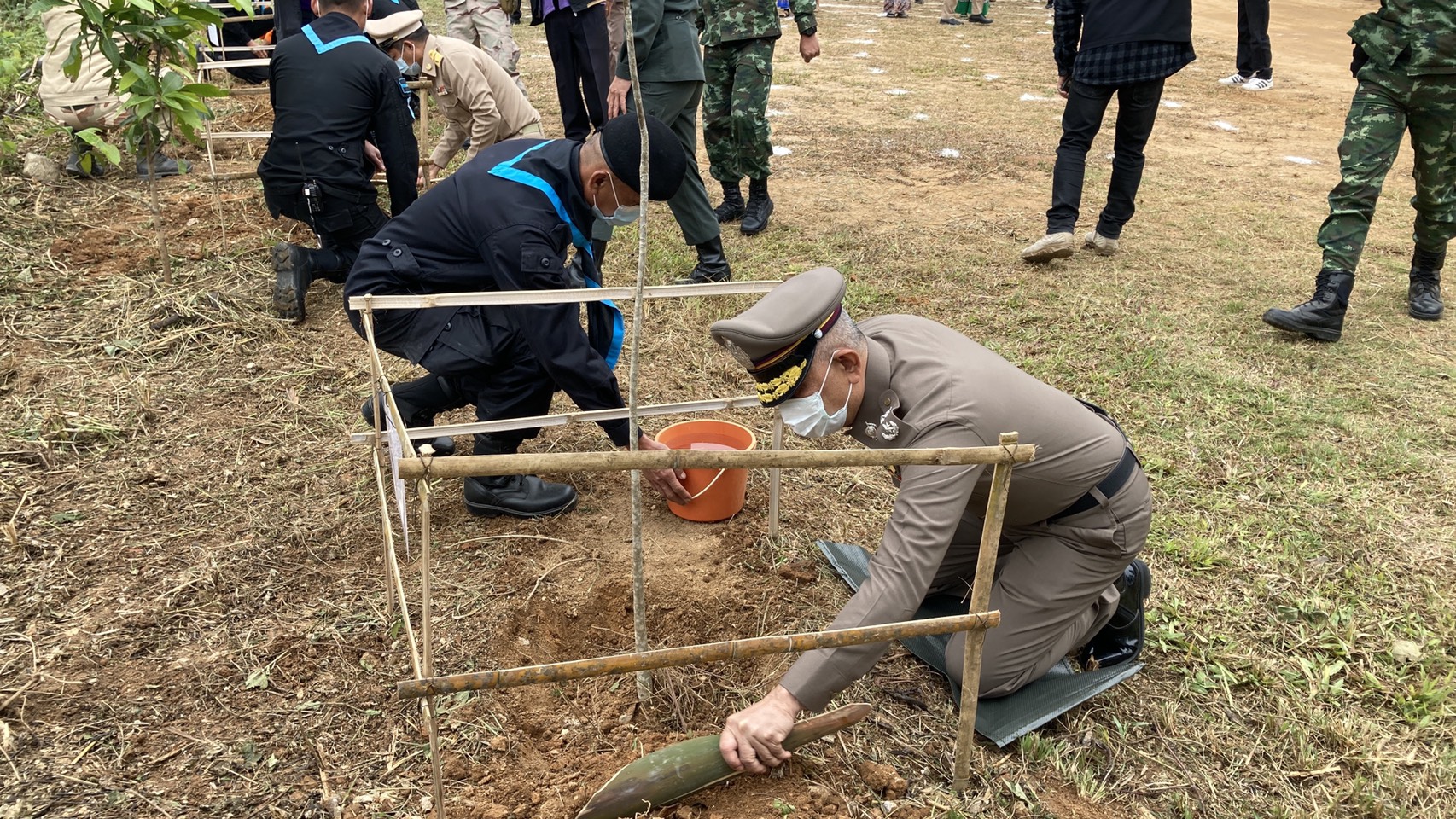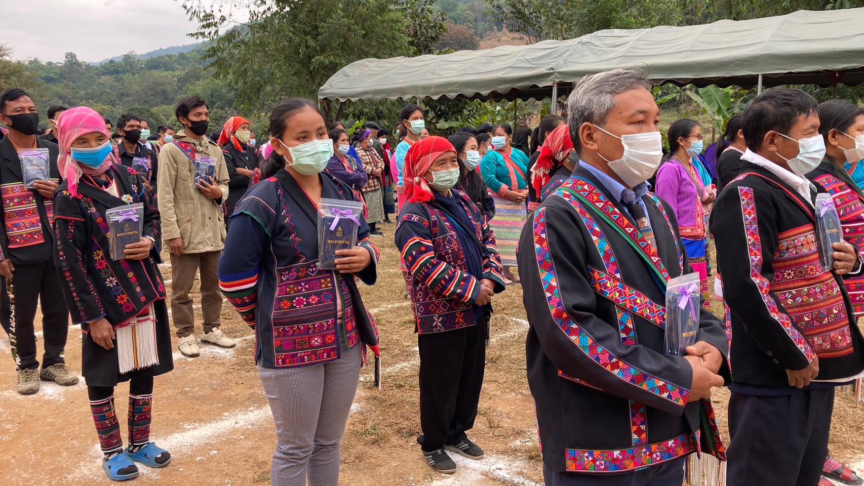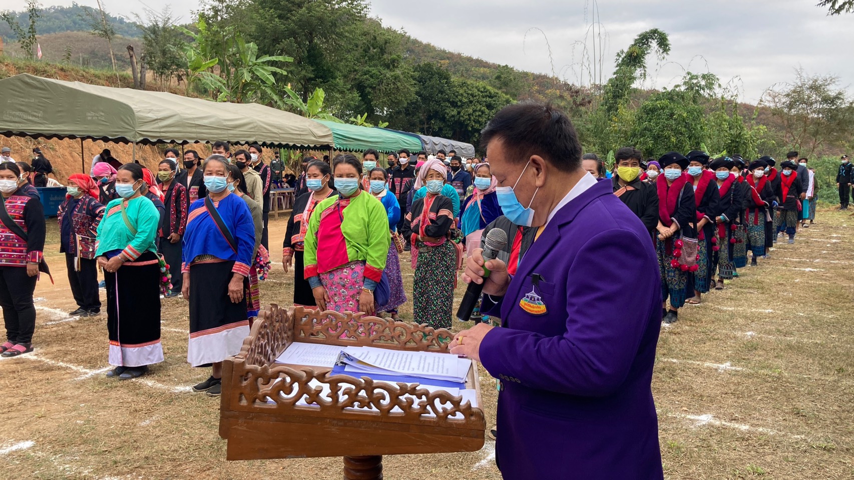 จากนั้นพลตรี สัชฌาการ คุณยศยิ่ง ผู้บัญชาการมณฑลทหารบกที่ 37 ได้กล่าวสำนึกในพระมหากรุณาธิคุณ ได้ทรงห่วงใยราษฎร ในพื้นที่จังหวัดชายแดนภาคเหนือ ทรงพระกรุณาพระราชทานเมล็ดพันธุ์ผักให้แก่ราษฎรได้นำไปปลูก ให้มีความมั่นคงด้านอาหารอย่างยั่งยืน ในโอกาสต่อไปด้วย จะขอน้อมนำพระราชดำริ มาประพฤติปฏิบัติ จะขออาสาทำความดี ตามรอยพระบาท เพื่อช่วยเหลือคนอื่นตลอดไป จากนั้นได้ร่วมปลูกต้นไม้เป็นต้นสาละต้นไม้ทางพระพุทธศาสนา มีผู้เข้าร่วมทั้งพระสงฆ์และหัวหน้าส่วนราชการ พระอาจารย์สมบูรณ์ ปภัสสโร พระสงฆ์พัฒนาชายแดนภาคเหนือ สำนักสงฆ์จะพือ พร้อมพระสงฆ์พัฒนาชายแดนภาคเหนือ24 รูป พลตรี ชินวิช วิชัยธนพัฒน์ ผู้บังคับการตำรวจภูธรจังหวัดเชียงราย พลตรีสุวิทย์ วังยาว มูลนิธิศิษย์นายร้อย นายวรายุทธ ค่อมบุญ นายอำเภอแม่จัน พันโท สกลวรรธน์ พุ่มมรินทร์ รองผู้บังคับหน่วยเฉพาะกิจทหารพรานกรม32 หน่วยเฉพาะกิจกรมทหารม้าที่3กองกำลังผาเมืองโรงพยาบาลส่งเสริมสุขภาพตำบลห้วยมะหินฝน มาช่วยในการคัดกรองชาวบ้านโดยวัดไข้แจกแมส และพ่นแอลกอฮอล์ฆ่าเชื้อ ให้ชาวบ้านและส่วนราชการที่มาร่วม ส่วนนายชนะชัย พันธุ์เหนือ ผู้จัดการกรรมการบริษัท เพรชดา จำกัดมหาชน ที่มอบพันธุ์ไม้กินได้ให้ชาวบ้านปลูกเป็นต้นเงาะโรงเรียนจำนวนหนึ่ง ทุกครอบครัวที่มารับกล้าเมล็ดพันธุ์ และในงานนี้ทางนายวรายุทธ ค่อมบุญ นายอำเภอแม่จัน ได้กล่าวขอชาวบ้านป้องกันเรื่องโรคติดต่อโควิด19 อย่ายุ่งเกี่ยวกับยาเสพติด อย่าบุกรุกทำลายป่าและอย่าเผาป่าเพื่อให้สิ่งแวดล้อมอุดมสมบูรณ์ให้น้ำแก่ชาวบ้านเพื่อความยั่งยืน