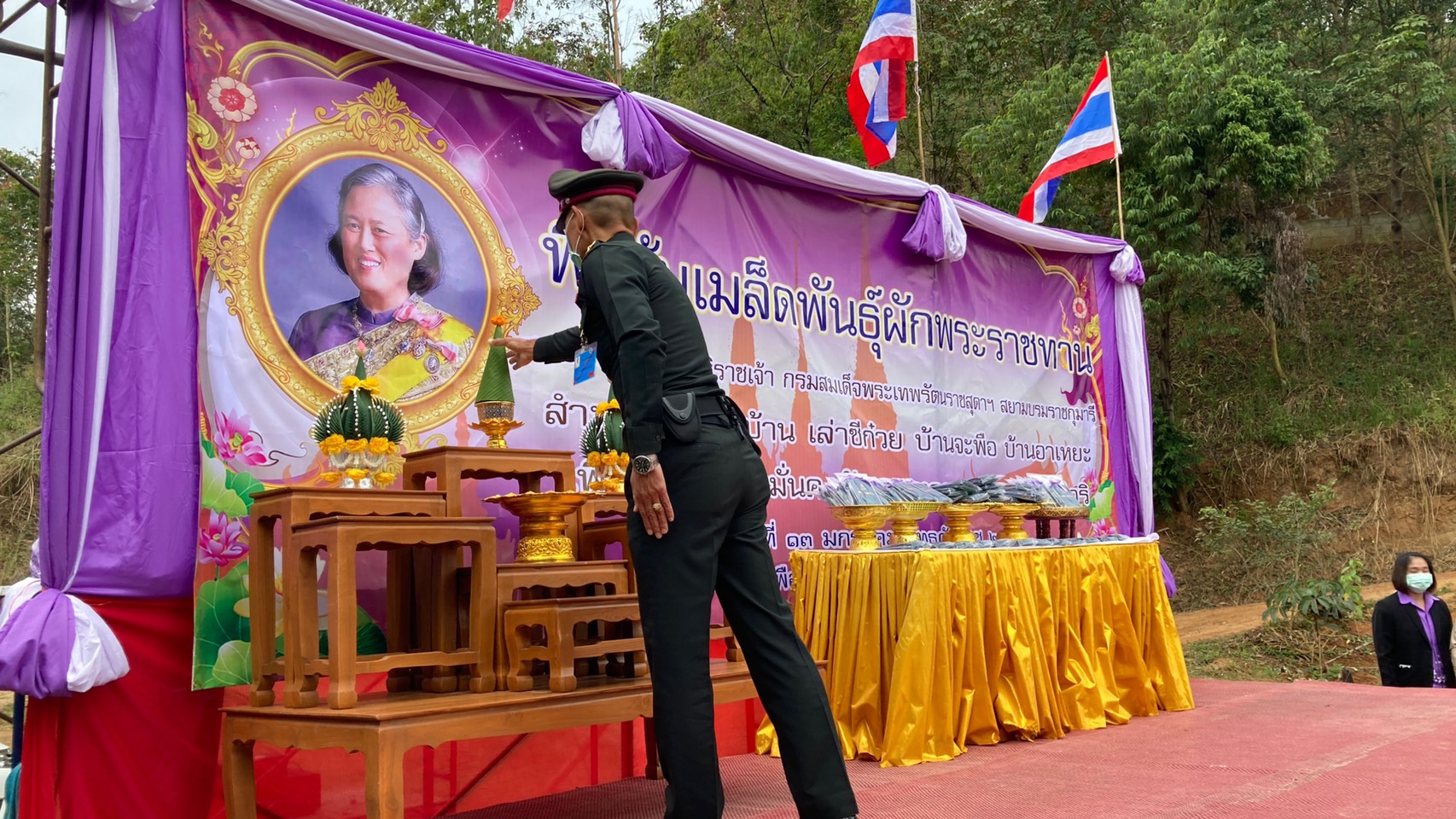 พลตรี สัชฌาการ คุณยศยิ่ง ผู้บัญชาการมณฑลทหารบกที่ 37 เป็นประธาน ในพิธีรับมอบเมล็ดพันธุ์ผักพระราชทานในสมเด็จพระกนิษฐาธิราชเจ้า กรมสมเด็จพระเทพรัตนราชสุดา ฯ สยามบรมราชกุมารี ให้กับราษฎรบ้านจะพือ ตำบลป่าตึง อำเภอแม่จัน จังหวัดเชียงราย โดยทางพ.อ.ชัยยันต์ สิรสุนทร ผู้แทนมูลนิธิศิษย์นายร้อยตามรอยพระบาททูลกระหม่อมอาจารย์ ในพระราชูปถัมภ์ฯ ได้กล่าวรายงานในโครงการว่า สมเด็จพระกนิษฐาธิราชเจ้า กรมสมเด็จพระเทพรัตนราชสุดาฯ สยามบรมราชกุมารี ได้ทรงพระกรุณาโปรดเกล้าโปรดกระหม่อม ให้มูลนิธิชัยพัฒนาดำเนินการจัดตั้ง “ศูนย์พัฒนาพันธุ์พืชจักรพันธ์เพ็ญศิริ” เพื่อเป็นที่ระลึกในวาระครบรอบ ๑๐๐ ปี พระเจ้าวรวงศ์เธอพระองค์เจ้าจักรพันธ์เพ็ญศิริ