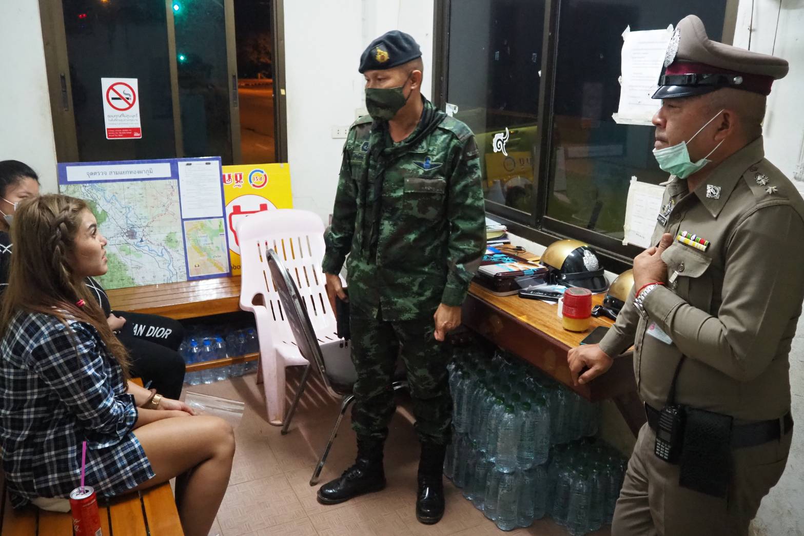 ที่จุดตรวจสามแยกทองผาภูมิ หมู่ 6 ตำบลท่าขนุน อำเภอทองผาภูมิ จังหวัดกาญจนบุรี เจ้าหน้าที่