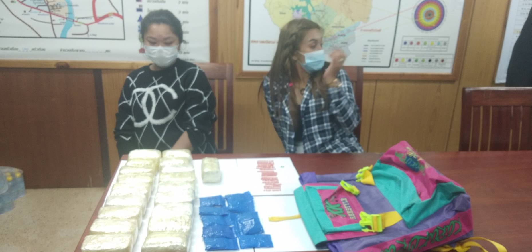 กาญจนบุรี ฉก.ลาดหญ้า ร่วมตำรวจ , ปกครอง และ ตชด.135 ร่วมกันจับกุมสองสาวขนยาบ้า 4 หมื่นเม็ด