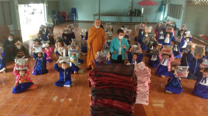 เชียงใหม่ พระมอบเสื้อผ้าห่มให้เด็กอนุบาลแก้ภัยหนาว