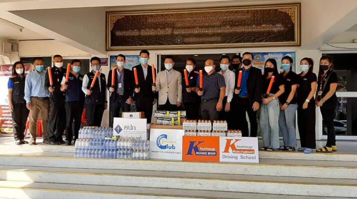 ราชบุรี คณะที่ปรึกษา ตร.ภาค 7 สนับสนุนอุปกรณ์ตั้งด่านจุดคัดกรองป้องกันโควิด.