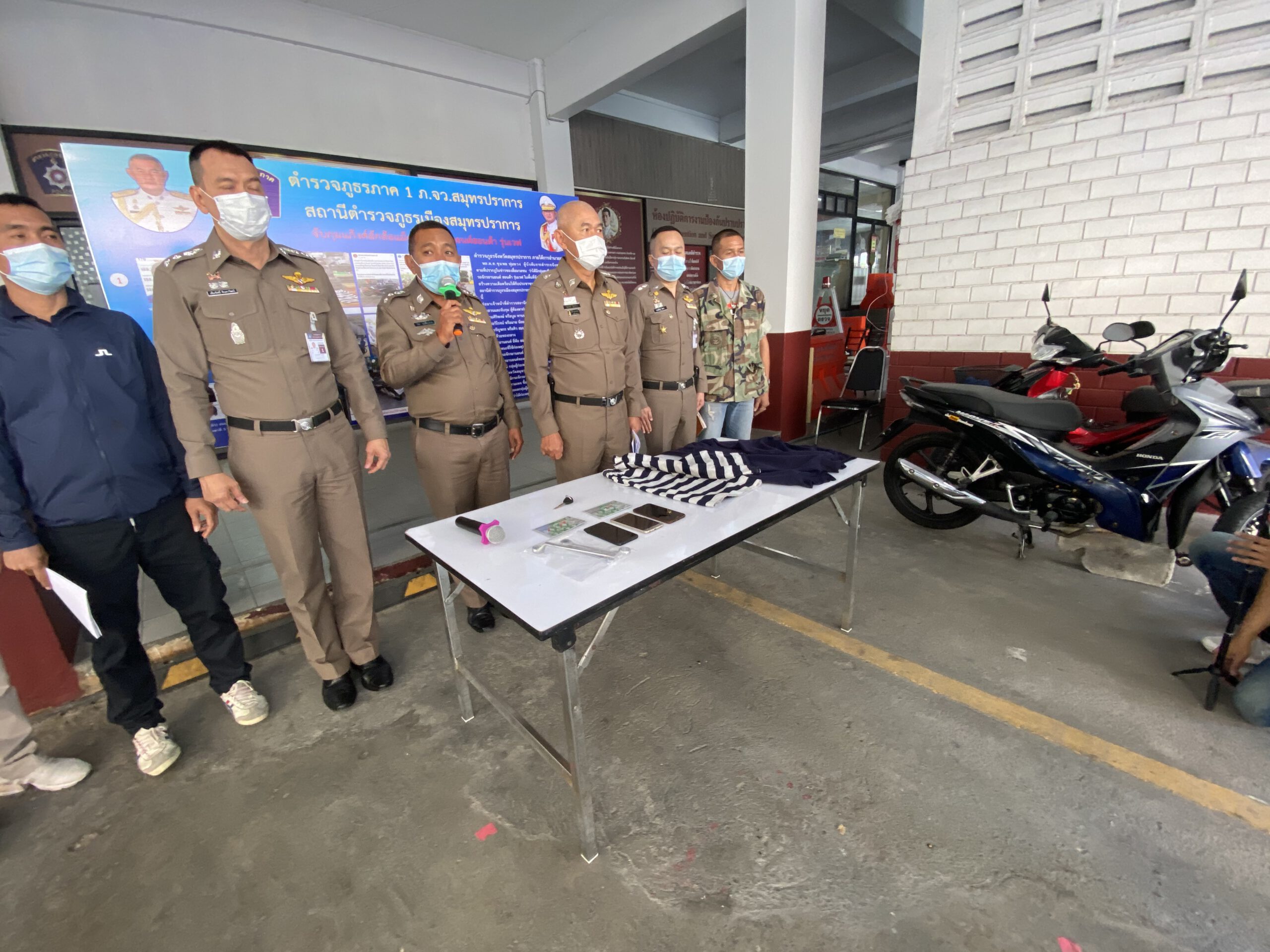 *****เมื่อ เวลา 14.30 น วันที่ 19 มกราคม 2564 พล.ต.ต.ชุมพล พุ่มพวง ผบก.ภจว.จังหวัดสมุทรปราการ พ.ต.อ.วิชิต บุญชินวุฒิกุล รอง ผบก.ภ.จังหวัดสมุทรปราการ พ.ต.อ.เติมรัศมิ์ จินดาวัฒน์ ผกก.สภ.เมืองสมุทรปราการ ได้ร่วมแถลงข่าว จับกุม 1 นายศิริพงษ์ หรือบูม อายุ 24 ปี 2 นายวิโรจน์ หรือมาย อายุ 23 ปี 3 นายรัญชกร หรือคิว อายุ 19 ปี ในข้อหา ร่วมกันลักทรัพย์ในเวลากลางคืน โดยใช้ยานพาหนะเพื่อสะดวกแก่การกระทำความผิด หรือการพาทรัพย์นั้นไป หรือเพื่อให้พ้นการจับกุม หรือ รับของโจร พร้อมด้วยของกลาง รถจักรยานยนต์ ยี่ห้อฮอนด้า รุ่นเวฟ 110 ไอ สีน้ำเงิน – เทา หมายเลขทะเบียน 4 กน – 7396 กทม ( ที่ใช้ก่อเหตุ ) 2 ล้อแม็กด้านหลังรถจักรยานยนต์ จำนวน 2 วง ( ล้อที่ได้มาจากการก่อเหตุ ) 3 ประแจแหวนใช้สำหรับถอดน๊อต จำนวน 3 อัน พร้อมของกลางที่เกี่ยวข้องในคดีอีกหลายรายการ