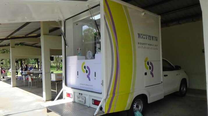 สำนักงานธารณสุขจังหวัดตรัง ประสานขอรถพระราชทาน BIOSAFTY MOBILE UNIT รถเก็บตัวอย่างชีวนิรภัย ที่โรงงานไม้ยางพารา หลังจากที่มีการสุ่มตรวจแรงงานต่างชาติและพบว่าที่โรงงานไม้ยางพบแรงงานต่างชาติติดเขื้อโควิด’-19จำนวน 2 คน ซึ่งการขอรถพระราชทาน BIOSAFTY MOBILE UNIT รถเก็บตัวอย่างชีวนิรภัย มาตรวจนั้นก็เพื่อสร้างความมั่นใจให้กับชุมชนที่อยู่โดยรอบโรงงานไม้ยางพารา