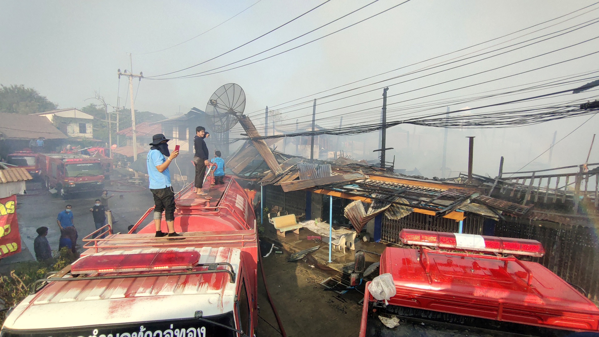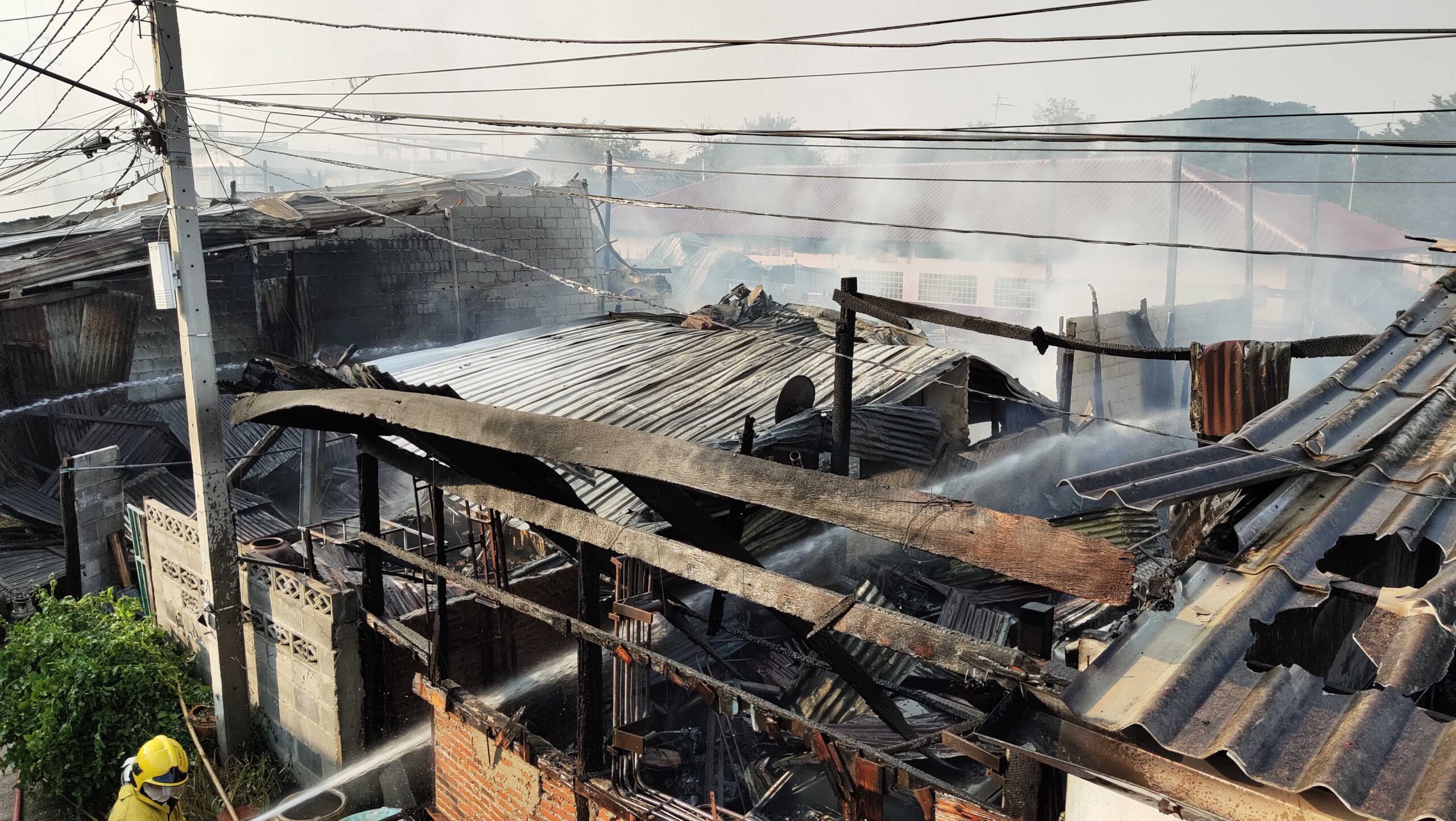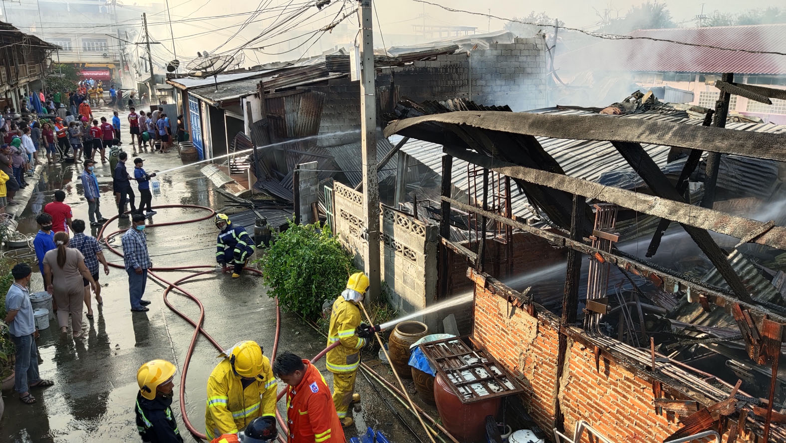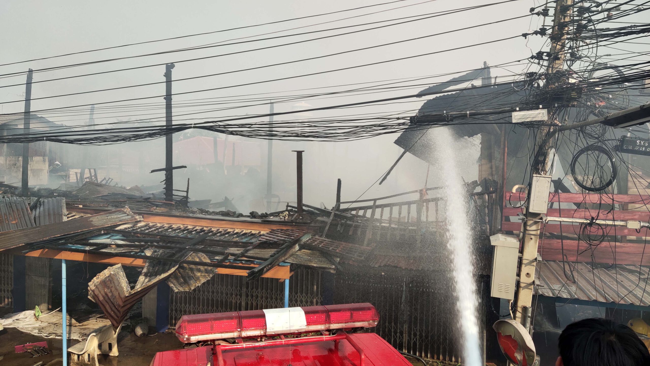 สุพรรณบุรี ไฟไหม้ห้องแถวไม้เก่าตลาดสระยายโสมอายุกว่า60ปีวอดกว่า20ห้อง