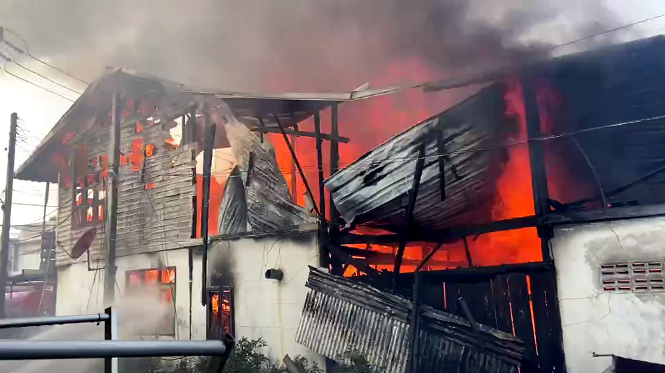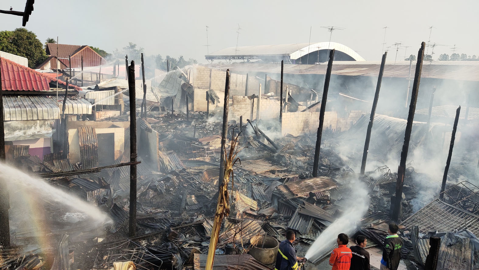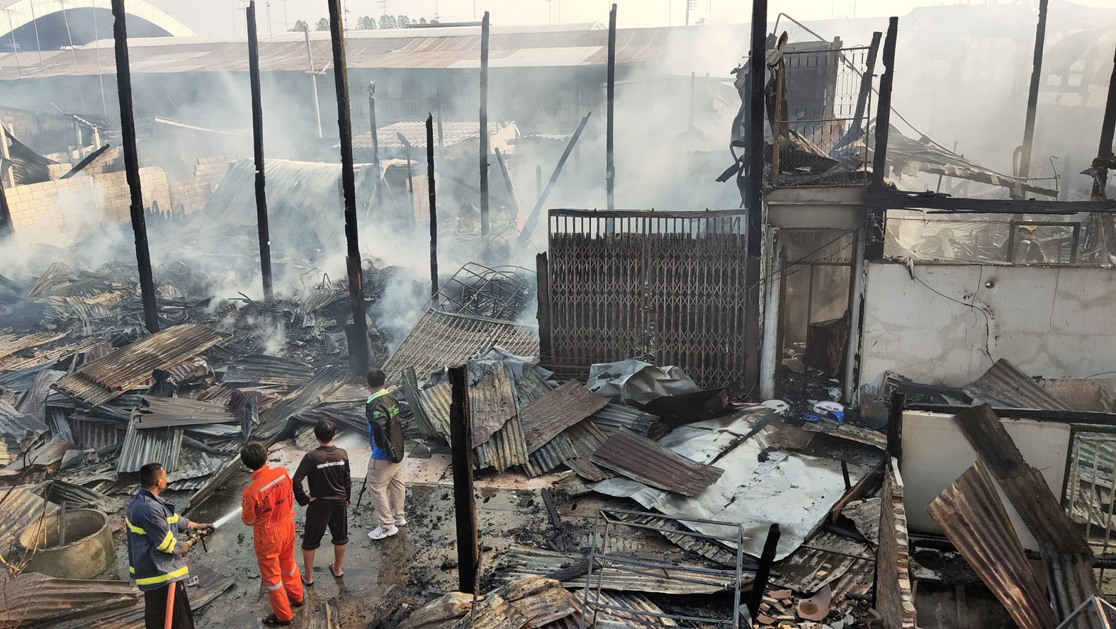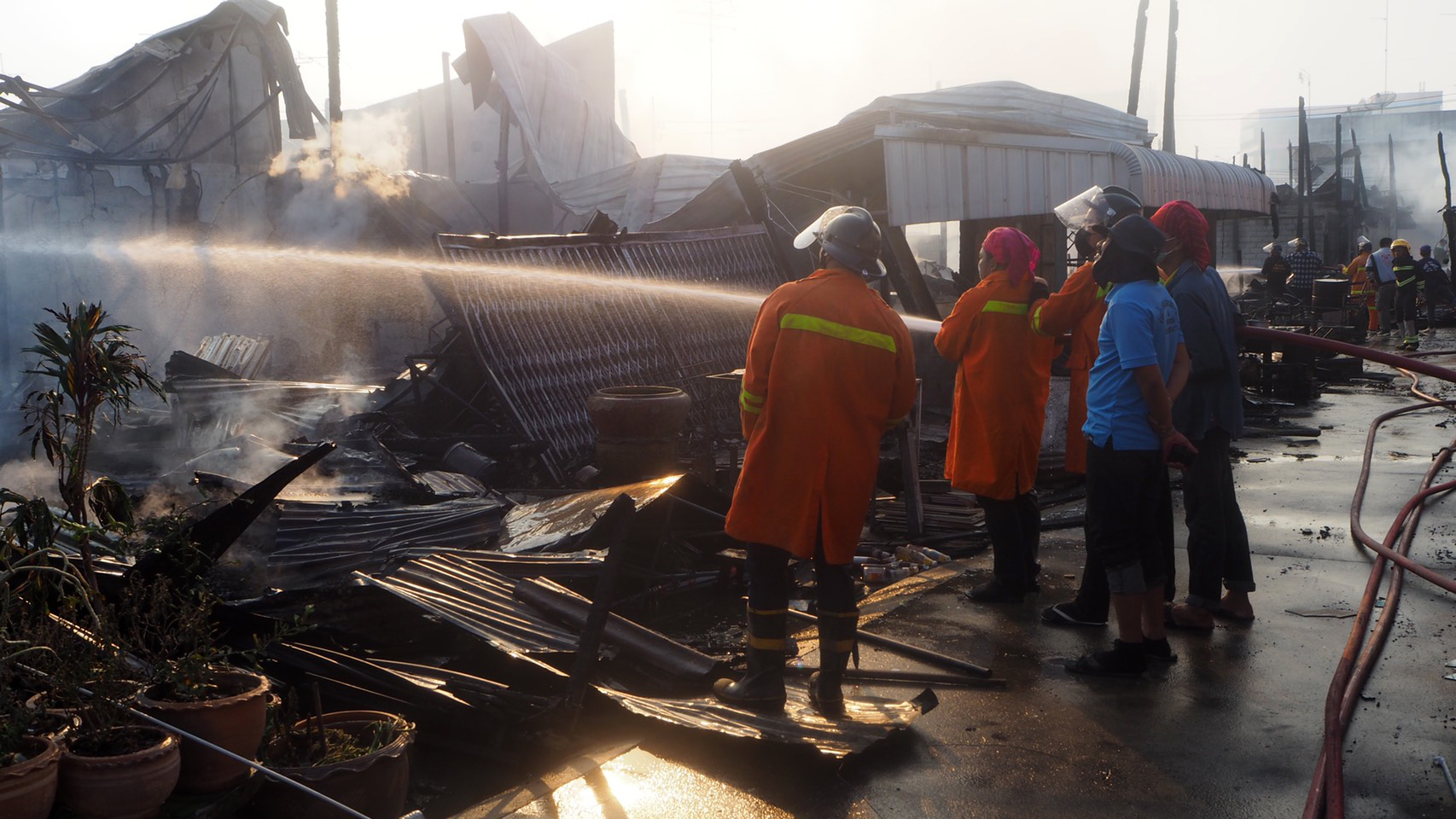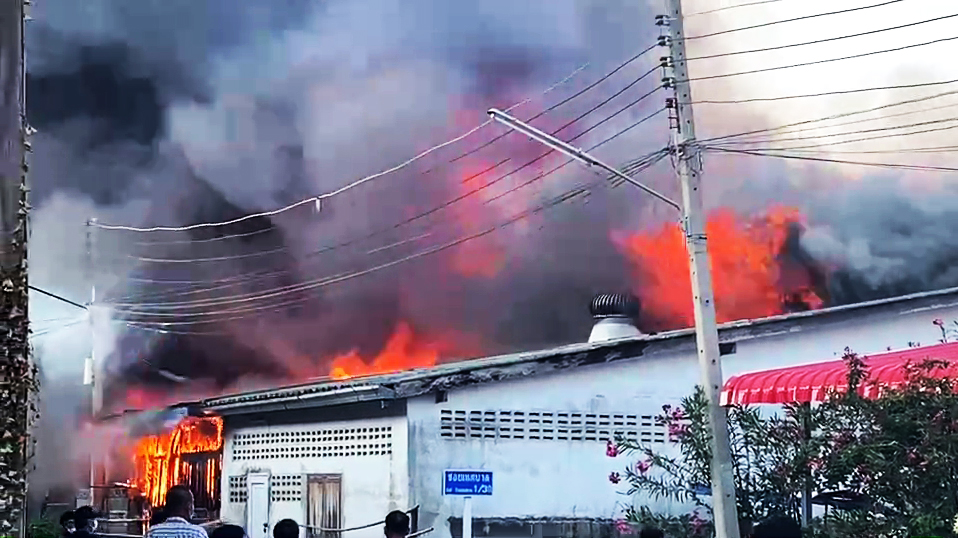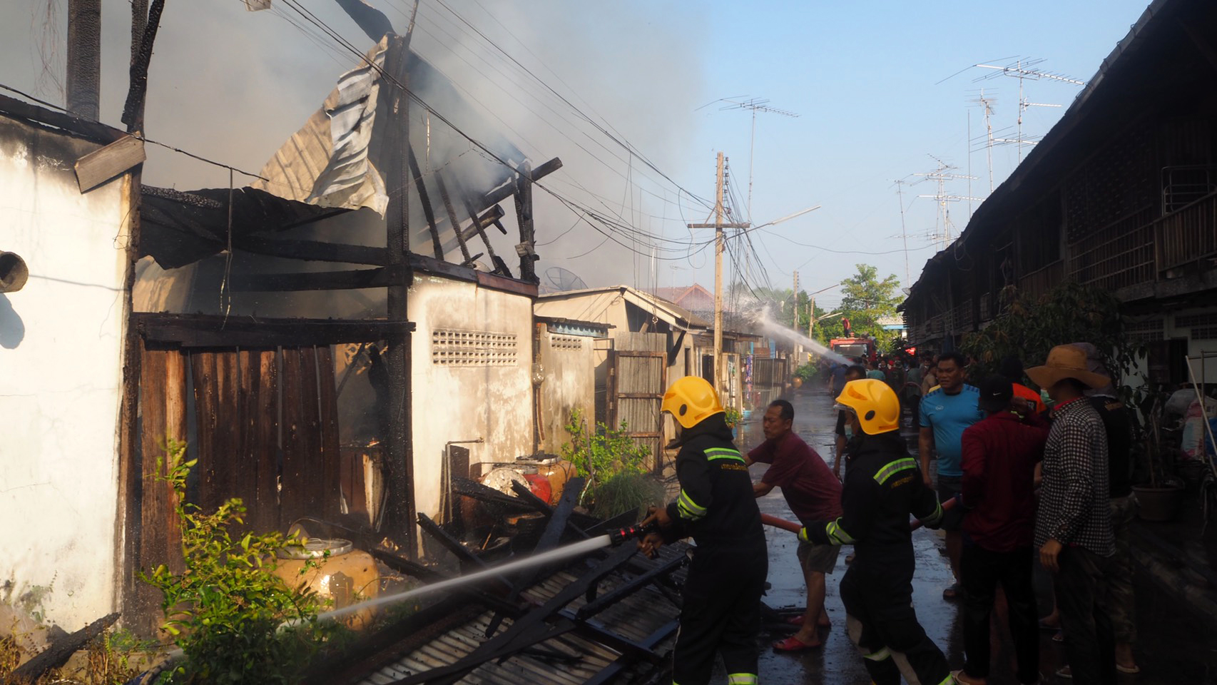 สุพรรณบุรี ไฟไหม้ห้องแถวไม้เก่าตลาดสระยายโสมอายุกว่า60ปีวอดกว่า20ห้อง