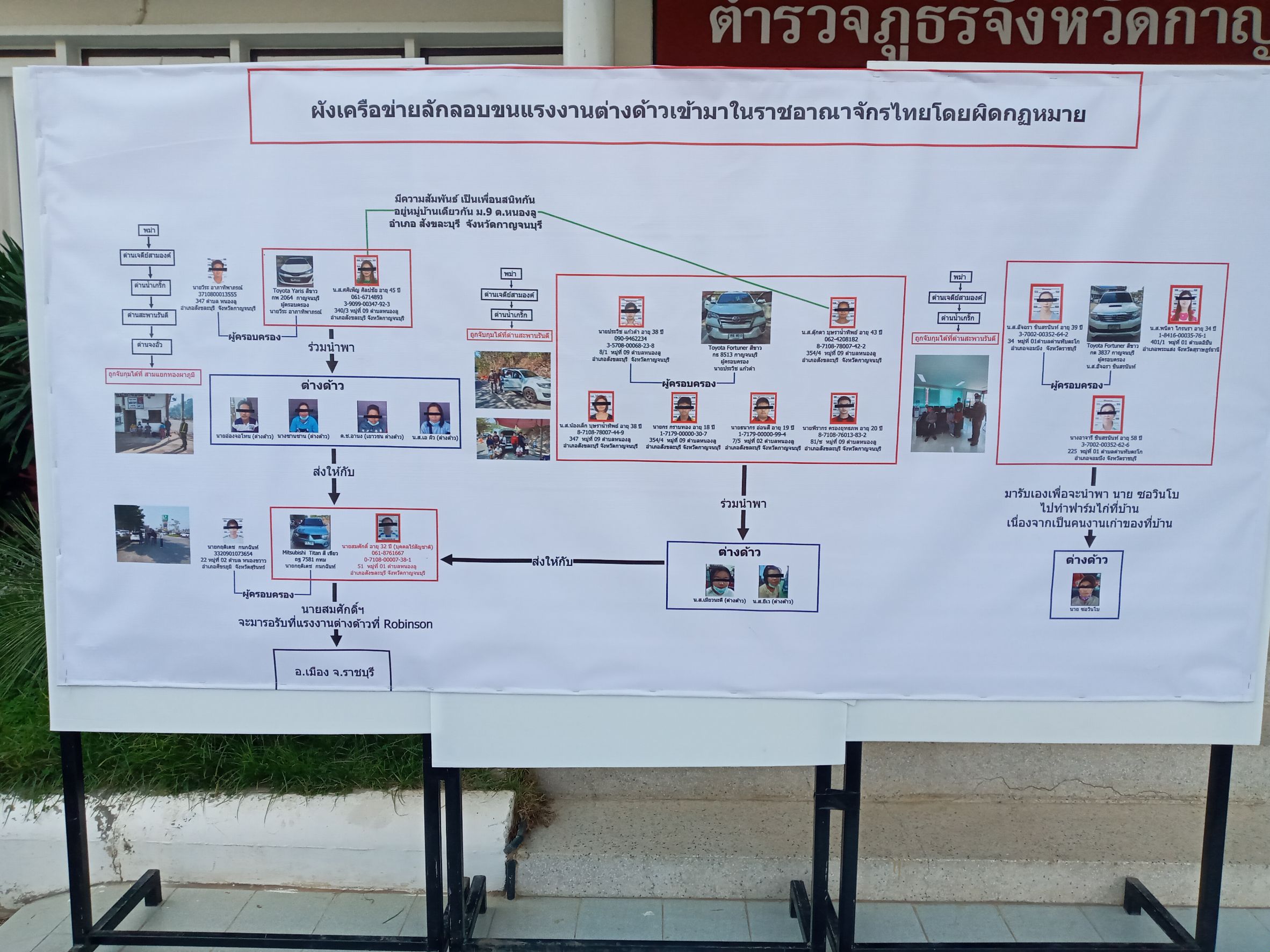 จึงได้มีแรงงานต่างด้าวจากประเทศเพื่อนบ้าน พยายามที่จะลักลอบเข้ามาในประเทศไทยเป็นจำนวนมาก ซึ่งตำรวจภูธรภาค 7 ได้กำชับให้ผู้ใต้บังคับบัญชาการดำเนินการอย่างเข้มงวด จนกระทั่งวันที่ 21 มกราคม สามารถจับกุมขบวนการลักลอบขนแรงงานต่างด้าวเข้าเมืองโดยผิดกฎหมายได้ รวม 3 คดี คดีที่ 1 เวลา 09.00 น.เจ้าหน้าที่ประจำจุดตรวจร่วมสามแยกทองผาภูมิได้ทำการตรวจค้นรถยนต์เก๋งส่วนบุคคล หมายเลขทะเบียน กพ 2064 กาญจนบุรี ซึ่งมีนางสาวศศิเพ็ญ ศิลปะชัย ผู้ขับขี่ ซึ่งเป็นภริยาของนักการเมืองท้องถิ่นในอำเภอสังขละบุรีพร้อมด้วยบุคคลต่างด้าว 4 คน โดยรับตัวมาจากบริเวณชายแดน อำเภอสังขละบุรีเพื่อนำไปส่งในอำเภอเมืองกาญจนบุรีโดยได้รับค่าจ้างสำหรับผู้ใหญ่คนละ 7,000 บาทและเด็กคนละ 4,000 บาท โดยจะมีคนมารับต่อจึงได้ขยายผลจับกุมตัวนายสมศักด์ ไม่มีนามสกุลชาวพม่า ได้ที่หน้าห้างสรรพสินค้าชื่อดังจังหวัดกาญจนบุรี และให้การรับสารภาพว่าจะพาไปส่งที่อำเภอเมือง จังหวัดราชบุรี แต่มาถูกจับกุมตัวได้ที่เสียก่อน