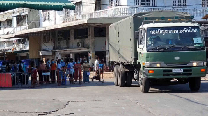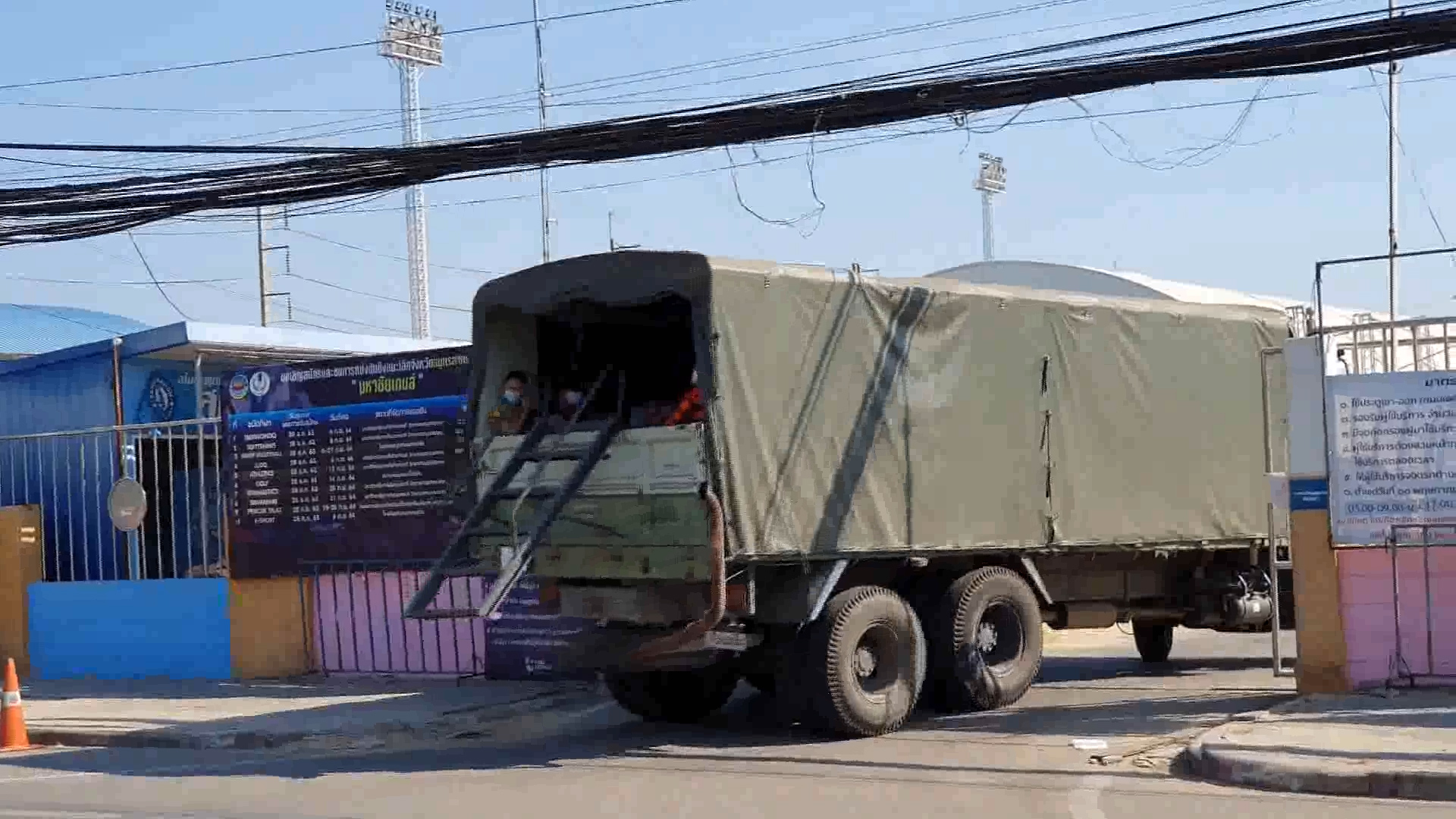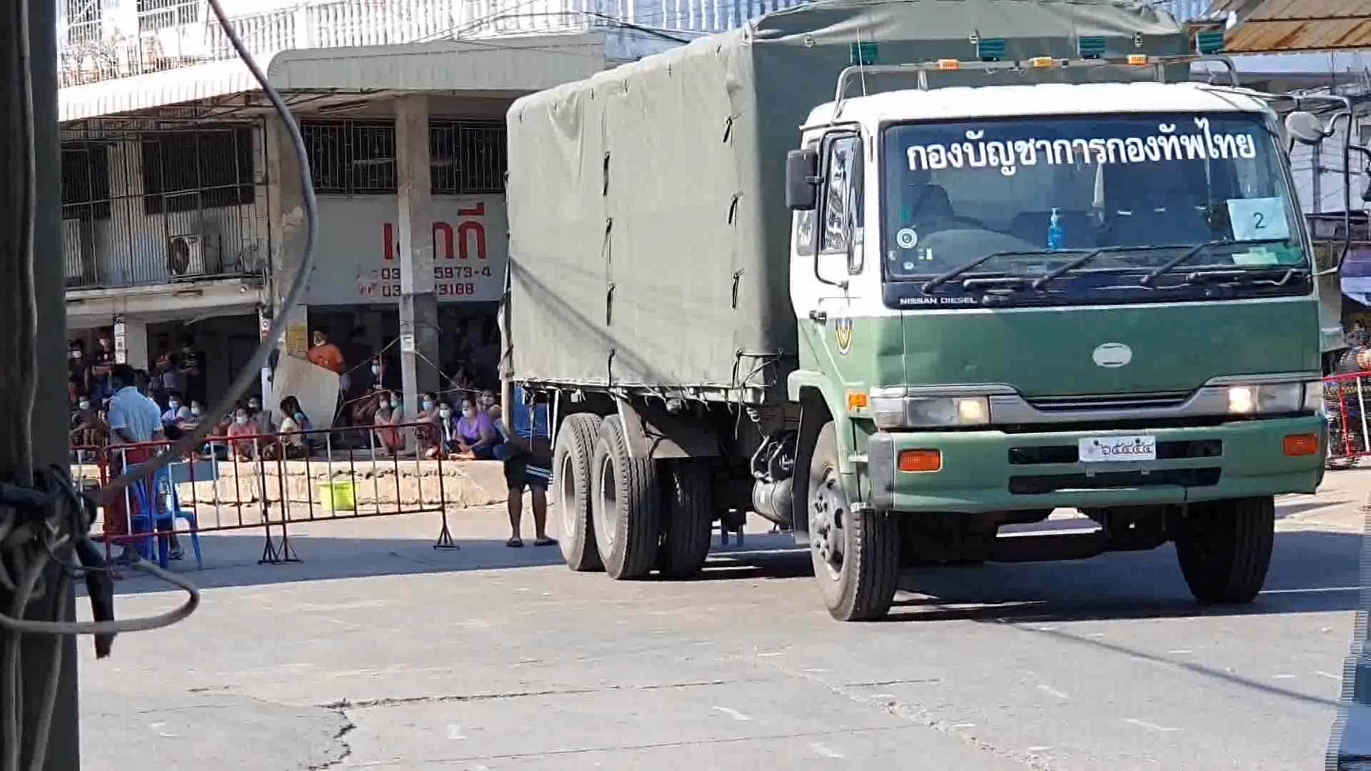 สมุทรสาคร ทหารขนผู้ติดเชื้อ 95 ราย ออกจากตลาดกลางกุ้งส่งศูนย์ห่วงใยฯ แห่งที่ 1