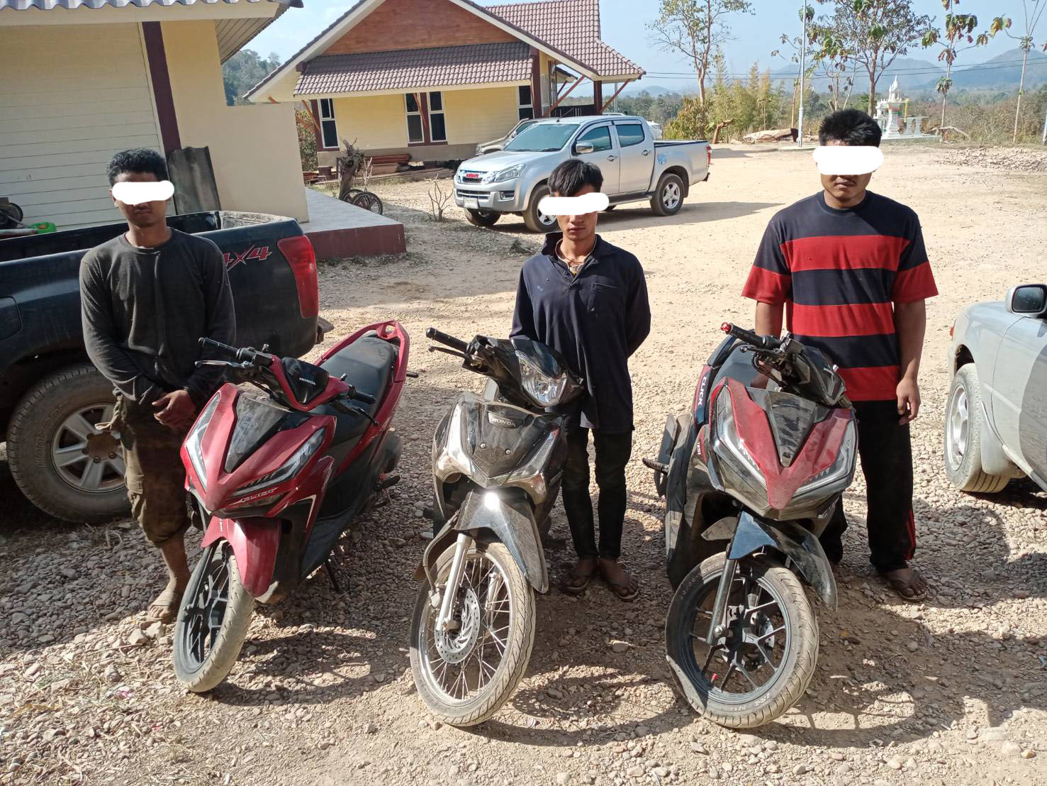 จึงได้ทำการตรวจสอบพบว่าทั้งสามคนจะนำรถออกไปยังประเทศเมียนมา ทราบชื่อผู้กระทำผิดคือ นายธงชัย ไม่มีนามสกุล อายุ 17 ปี นายสุทิน ไม่มีนามสกุล อายุ 24 ปี นายไพรวัน ไม่มีนามสกุล อายุ 18 ปี