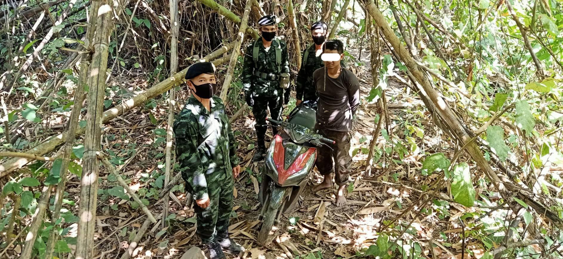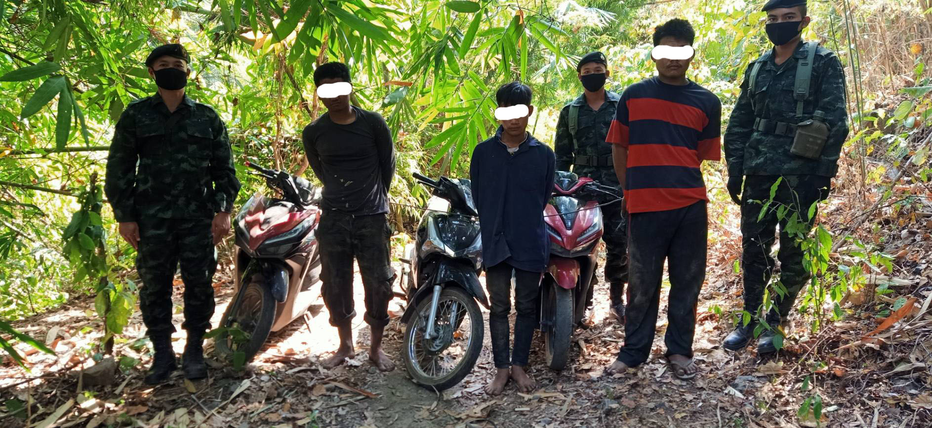 เจ้าหน้าที่ ที่ทำการลาดตะเวนและชุ่มอยู่บริเวณสั้นแดน ห้วยวายอ จนกระทั่งมีรถจักรยานยนต์ ผ่านมาจึงทำการตรวจสอบผู้ขับขี่รถมอเตอร์ไชค์ดังกล่าว ทั้ง 3 คนใช้บัตรสีชมพู ทั้ง 3 คน