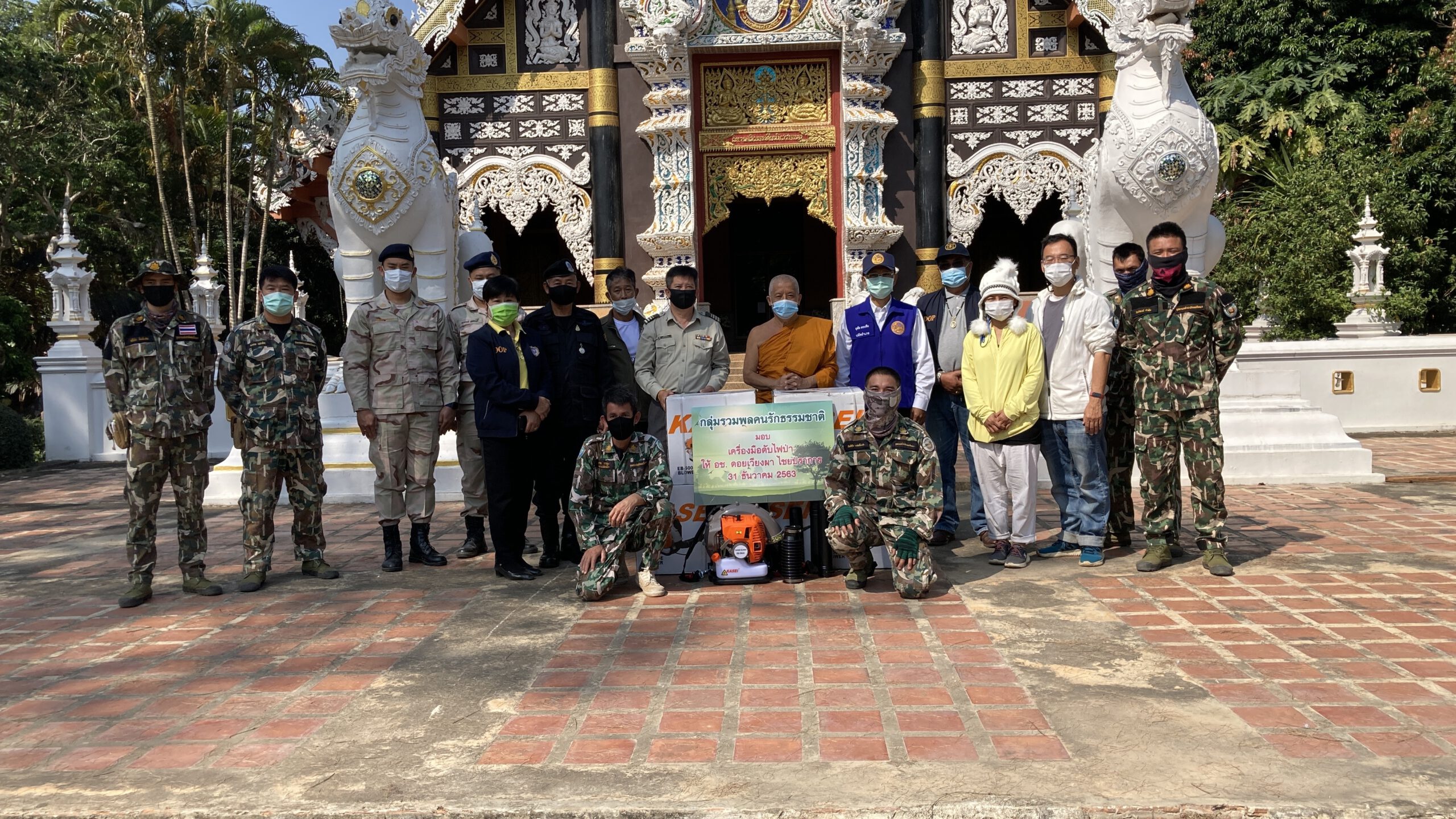 ได้นำสมทบช่วยอุทยานที่จะนำไปยังจุดพื้นที่ต่างๆ6จุด จุดละ2 เครื่องช่วยดูแลไฟป่า 2 จังหวัด(อุทยานมีพื้นที่ที่ต้องดูแลจำนวน 222,986 ไร่ หรือ 358 ตารางกิโลเมตร กินพื้นที่จังหวัดเชียงใหม่และจังหวัดเชียงราย)นำมอบแล้วเพื่อช่วยกันสนับสนุนให้เจ้าหน้าที่อุทยานทำการร่วมดับไฟป่า ทางนายสิทธิ วิมาลา หัวหน้าอุทยานฯขอความร่วมมือกับประชาชนให้ความร่วมมืออย่าได้ลักลอบทำการเผาป่าเพื่อให้ธรรมชาติสิ่งแวดล้อมโดยเฉพาะสัตว์ป่าและป่าไม้คงอยุ่รักษาน้ำอย่างยั่งยืนถาวรต่อไปเพราะเป็นแหล่งงต้นทุนน้ำใช้ทั้งสองจังหวัด 3 อำเภอ มีหลายกลุ่มที่เล็งเห็นความสำคัญของป่าจึงยื่นมือเข้ามาทำการช่วยเหลือจัดหาอุปกรณ์และเครื่องมืออำนวยความสะดวกในการจัดการสร้างแนวกันไฟป่าและช่วยดับไฟป่าได้รวดเร็วขึ้นทั้งยังทำให้เจ้าหน้าที่มีความปลอดภัยมากขึ้นที่สำคัญเป็นกำลังใจให้คนทำงานพิทักษ์ป่าอีกทางหนึ่ง ทางนายสิทธิ วิมาลา หัวหน้าอุทยานแห่งชาติพร้อมเจ้าหน้าที่ทุกคนขอขอบคุณผู้ที่มีจิตใจดีทุกท่านที่ให้การช่วยเหลือกับคณะทำงานป่าและอุทยานแห่งชาติดอยเวียงผาวันนี้ได้ทำการมอบที่หน้าวิหารหลวงวัดป่าไม้แดงพื้นที่ตั้งประดิษฐานพระเจ้าพรหมมหาราชในอำเภอไชยปราการ จังหวัดเชียงใหม่ และที่ทำการอุทยานแห่งชาติดอยเวียงผา ตำบลศรีดงเย็น อำเภอไชยปราการ จังหวัดเชียงใหม่