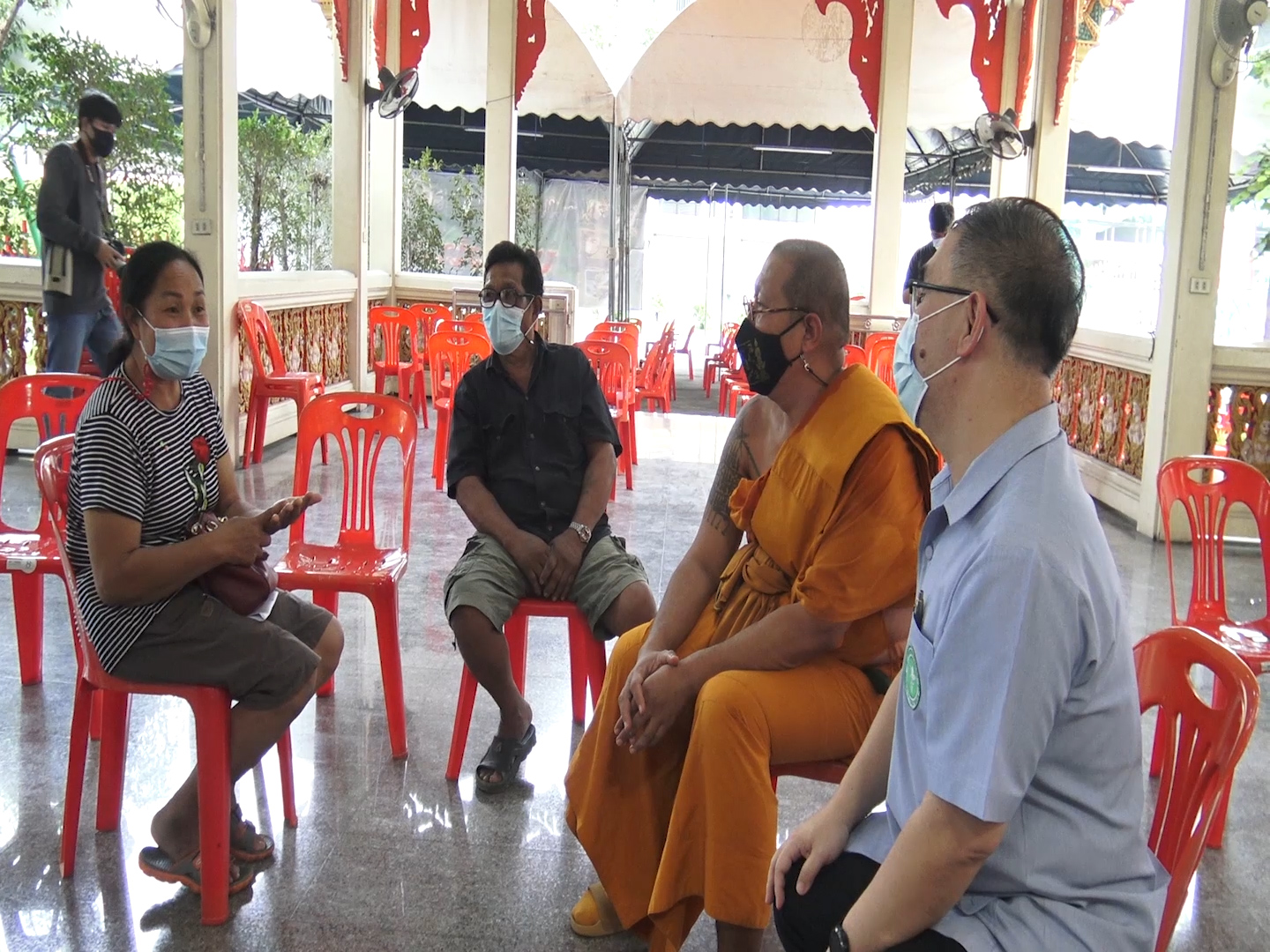ทางด้าน หลวงพี่น้ำฝนได้กล่าว่า ได้รับการประสานมาเมื่อตอนเกือบๆบ่ายโมงของวันนี้คือขอมาทำพิธีฌาปนกิจที่วัดไผ่ล้อมก็ได้รับรายงานว่าคนที่แจ้งว่าผู้ที่เสียชีวิต เสียชีวิตจากโรงพยาบาลกระทุ่มแบนและได้รับการติดต่อมาเพื่อจะทำพิธีฌาปนกิจกันร่วมบ่ายโมงแล้วนั้นเอง ซึ่งญาติได้นำใบมรณบัตรและบัตรประชาชนของผู้เสียชีวิตในการทำพิธีฌาปนกิจคือวัดไผ่ล้อมได้เปิดประชาสัมพันธ์ไปว่ายินดีที่จะทำพิธีฌาปนกิจไม่ว่าท่านจะเสียชีวิตด้วยเรื่องใดขอให้มีใบมรณบัตรมาบัตรประชาชนผู้ตายบัตร ประชาชนของญาติผู้ที่มาติดต่อในการที่จะมาทำฌาปนกิจวัดไผ่ล้อมยินดีที่จะทำฌาปนกิจให้ทั่วประเทศ โดยที่จะไม่มีการรังเกียจว่าท่านเป็นโรคอะไรมา ซึ่งอันนี้เป็นโครงการอยู่ในโครงการของพระเดชพระคุณหลวงพ่อพูล อยู่แล้วซึ่งโครงการนี้ชื่อว่าโครงการสวดเผาฟรี ญาติโยมทั้งหลายจะมีปัจจัยหรือไม่มีปัจจัย วัดไผ่ล้อมยินดีที่จะทำพิธีในการฌาปนกิจศพให้อยู่แล้วนั่นเอง และอย่างที่บอกการดูแลรักษาสิ่งที่จะเผาศพหรือเตาเผาศพถ้าเราไม่ดูแลรักษาบำรุงไม่ได้ ต้องดูแลรักษาอยู่ตลอดเวลามันก็เปรียบเสมือนรถถ้าท่านไม่ดูแลรักษารถ รถก็จะเสียและพังไม่ต้องรอให้พังเราต้องดูแลก่อนให้ได้ใช้งานอย่างเต็มที่ไม่ใช่พอถึงเวลาเดือดร้อนมาก็เกิดใช้ไม่ได้ตรงนี้สำคัญที่สุด. ในการสงเคราะห์ศพไม่ว่าจะป่วยตายหรือศพไร้ญาติหรือป่วยโควิด ซึ่งอาตมภาพก็ได้ตามรอยพระเดชพระคุณหลวงพ่อพูลสิ่งไหนที่จะช่วยเหลือสังคมโดยเฉพาะคำว่าสาธารณะสงเคราะห์นั่นเป็นหลักเป็นเป้าหมายของกลุ่มคณะสงฆ์วัดไผ่ล้อมและคณะสงฆ์ทั่วประเทศควรพร้อมใจกันในการที่จะช่วยเหลือเอื้อเฟื้อเผื่อแผ่ ในการที่จะสงเคราะห์ญาติโยมให้ได้รับในกำลังใจในการที่จะดำเนินชีวิตสืบต่อไปและการเผาศพโควิดครั้งนี้เป็นศพที่สองตั้งแต่มีการระบาดของโรค โควิด-19 และก็ไม่อยากให้ได้เยอะศพนี้เป็นศพที่สองที่ติดต่อเข้ามาและไม่ได้อยู่ในเขตวัดในจังหวัดนครปฐมเป็นเขตจังหวัดอื่นทั้งนั้นที่จะติดต่อเข้ามาศพที่แล้วก็มาจากโรงพยาบาลที่จังหวัดสมุทรปราการศพนี้ก็มาจากจังหวัดสมุทรสาครนั่นเองดังนั้นถึงได้บอกว่าเราพร้อมยินดีที่จะสงเคราะห์ให้กับญาติโยมนั่นเอง