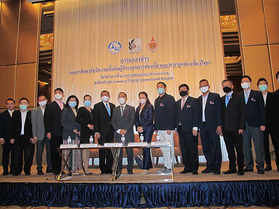 วันที่ 25 มกราคม 2564 ณ ห้องประชุมอโนมา 3 โรงแรมอโนมา แกรนด์ กรุงเทพฯ การท่องเที่ยวแห่งประเทศไทย (ททท.) ร่วมกับสภาอุตสาหกรรมท่องเที่ยวแห่งประเทศไทย (สทท.) และมหาวิทยาลัยเทคโนโลยีราชมงคลศรีวิชัย (มทร.) จัดแถลงข่าว “ผลการศึกษาดัชนีความเชื่อมั่นผู้ประกอบการท่องเที่ยว และทางรอดท่องเที่ยวไทย”