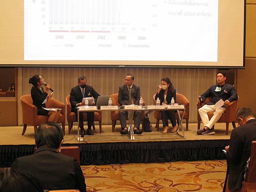 โดยมีนายชำนาญ ศรีสวัสดิ์ ประธานสภาอุตสาหกรมท่องเที่ยวแห่งประเทศไทย (สทท.) เป็นประธาน พร้อมเข้าร่วมงานรับฟัง”สรุปผลการศึกษาดัชนีความเชื่อมั่นผู้ประกอบการท่องเที่ยว ปี 2563 จากการประเมินของ รศ.ผกากรอง เทพรักษ์ ตัวแทนจากมหาวิทยาลัยเทคโนโลยีราชมงคลศรีวิชัย ซึ่งได้ข้อสรุปว่า ในปี 2563 ที่ผ่านมา ประเทศไทยมีนักท่องเที่ยวต่างชาติเดินทางเข้ามาท่องเที่ยวราว 6.69 ล้านคน ซึ่งลดลงเท่ากับ 83.22% โดยมีรายได้จากนักท่องเที่ยวต่างชาติ 3.33 แสนล้านบาท ลดลง 82.58% ซึ่งจากสถานการณ์โรคโควิด-19 ยังส่งผลกระทบสู่ภาคแรงงานท่องเที่ยว โดยมีคนตกงานทั้งระบบกว่า 4.1 ล้านคน แยกเป็น ไตรมาส 2/2563 จำนวน 2.6 ล้านคน, ไตรมาส 3/2563 จำนวน 5.37 แสนคน และไตรมาส 4/2563 มีจำนวน 1.04 ล้านคน