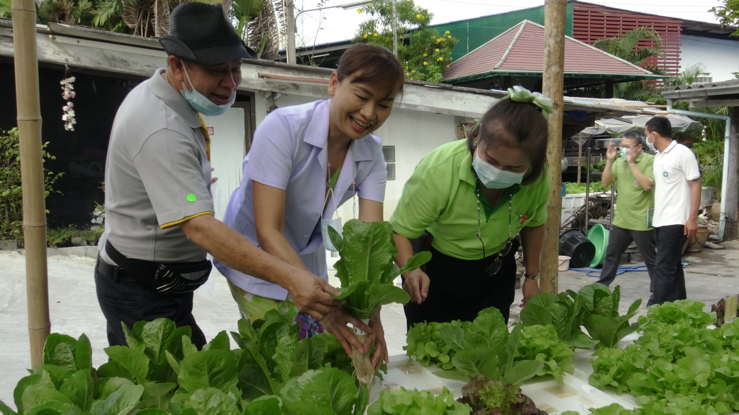 ชมรมปิ่นโต สามพรานยิ้มหวานโรงพยาบาลสามพรานลงพื้นที่ตรวจแปลงผักปลอดสารพิษ