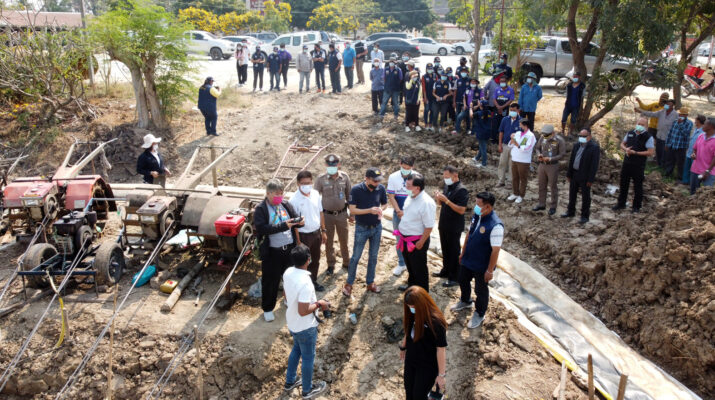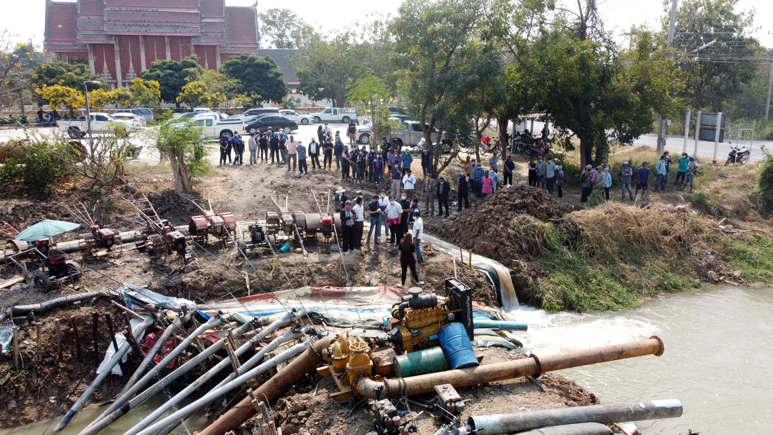 โดยทางเกษตรกรได้รวมกันนำเครื่องสูบน้ำมาติดตั้ง จำนวน 24 เครื่อง และเกษตรกรได้ตกลงลงกันว่าจะออกค่าน้ำมันใส่เครื่องสูบน้ำกันเอง จะเร่งสูบน้ำเข้าคลอง 2 ขวา แม่น้ำท่าจีน เพื่อจะได้นำน้ำไปใส่พืชสวน เช่นสวนมะม่วง กับใช้อุปโภคบริโภค และเลี้ยงสัตว์ เพื่อเป็นการบรรเทาความเดือดร้อนของเกษตรกรเบื้องต้น ที่กำลังประสบปัญหาทั้งโควิด19แพร่ระบาด และปัญหาขาดแคลนน้ำใส่พืชสวน ใช้อุปโภคบริโภค และเลี้ยงสัตว์