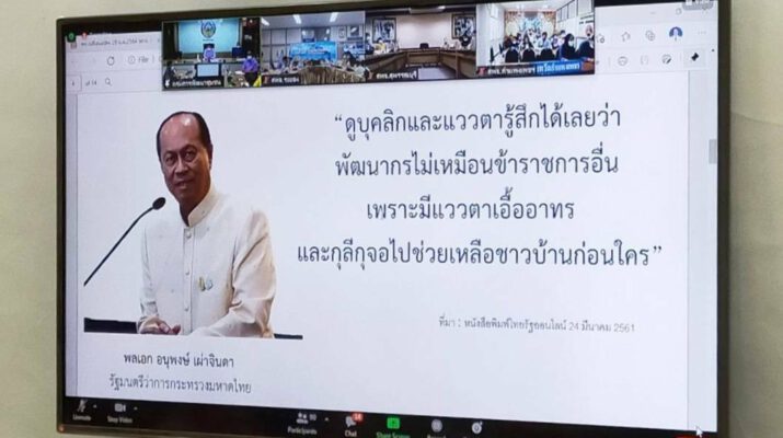 นายสุทธิพงษ์ จุลเจริญ อธิบดีกรมการพัฒนาชุมชน เป็นประธานการเปิดโครงการฝึกอบรมพัฒนากรระหว่างประจำการ ด้านบริหารการเปลี่ยนแปลง ประจำปีงบประมาณ พ.ศ.2564 โดยมี นายนิวัติ น้อยผาง รองอธิบดีกรมการพัฒนาชุมชน นายอาจณรงค์ สัตยพานิช หัวหน้าผู้ตรวจราชการกรม (พช.) นายธนวัฒน์ ปิ่นแก้ว ผู้อำนวยการสถาบันการพัฒนาชุมชน และผู้บริหาร ข้าราชการกรมการพัฒนาชุมชน เข้าร่วม ผ่านระบบวีดิทัศน์ทางไกล VDO Conference ระบบ ZOOM Cloud Meetings ไปสู่นักวิชาการพัฒนาชุมชน (พัฒนากร) ระหว่างประจำการ ใน 76 จังหวัด จำนวน 3,640 คน ณ ห้องประชุม 5001 ชั้น 5 กรมการพัฒนาชุมชน