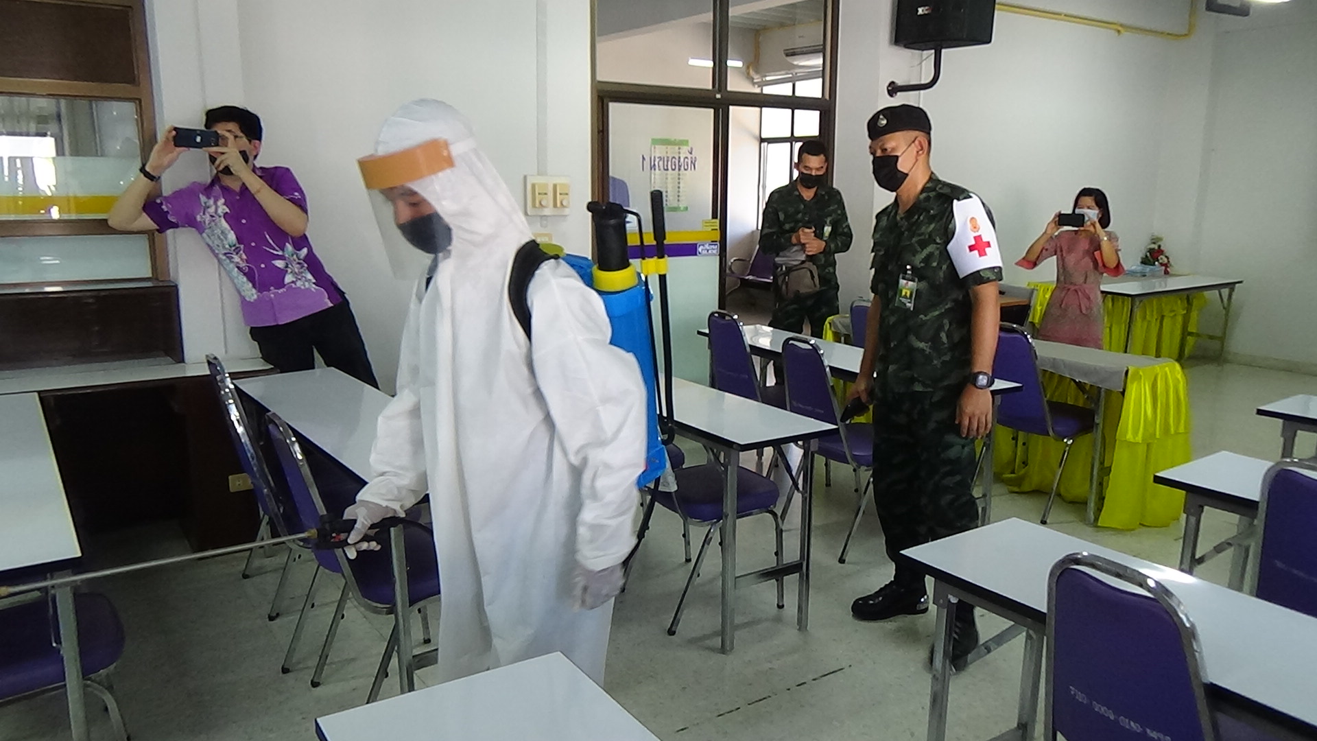 กองพันทหารราบที่ 4 กรมทหารราบที่ 15 ค่ายพระยารัษฎานุประดิษฐ์ อำเภอห้วยยอด จังหวัดตรัง ฉีดพ่นสารเคมีไฮโดรเจนเปอร์ออกไซด์ ฆ่าเชื้อพื้นที่บริเวณสำนักงานขนส่งจังหวัดตรังและพื้นที่รอบๆ เพื่อป้องกันเชื้อไวรัสโคโรนา 2019 (โควิด-19) ในขณะที่เจ้าหน้าที่ขนส่งได้มีมาตรการป้องกันโดยการตรวจวัดอุณหภูมิและบริการเจลล้างมือให้กับประชาชนที่เดินทางมาใช้บริการ พร้อมทั้งขอบคุณทหารที่ให้ความช่วยเหลือ
