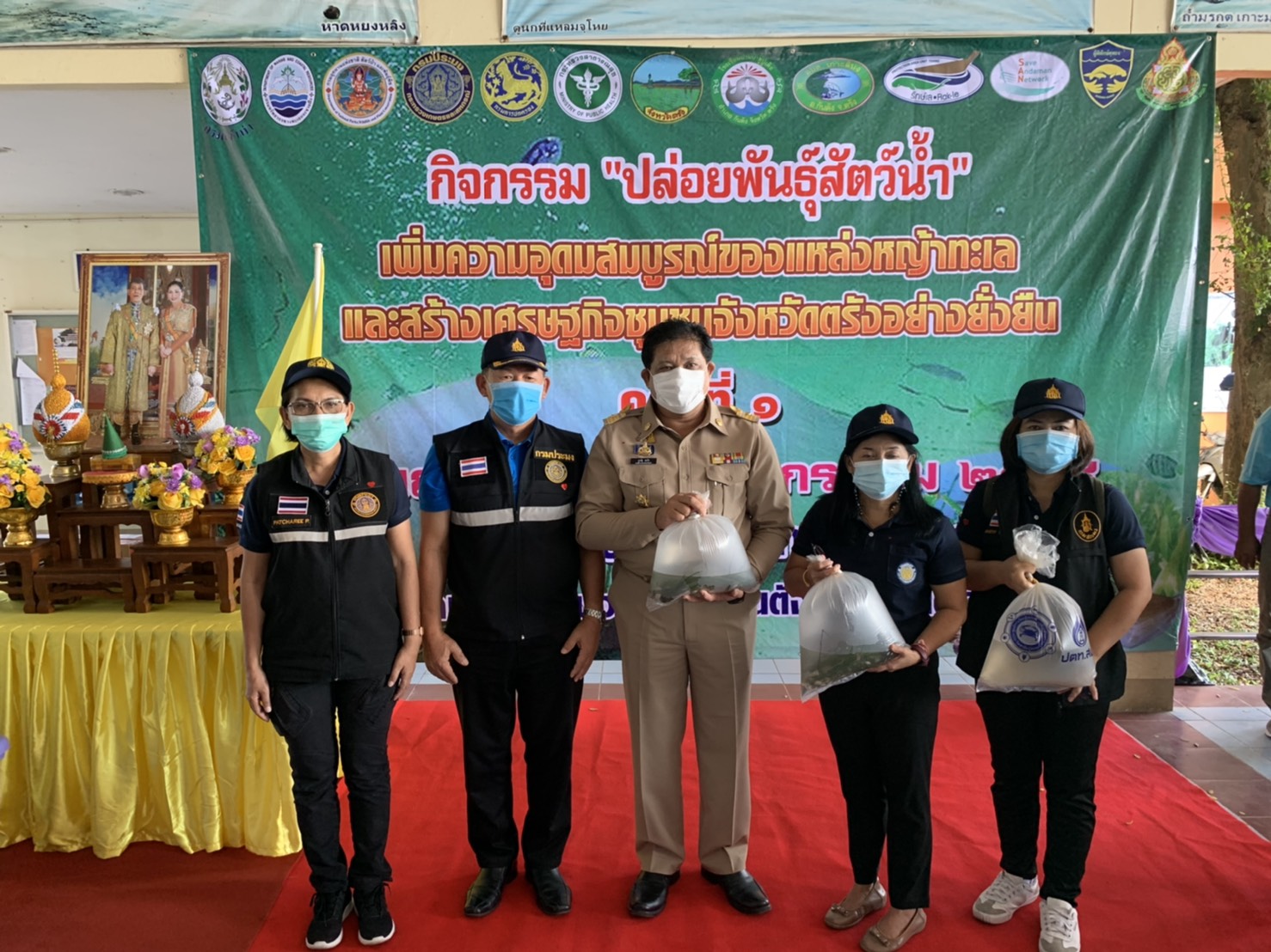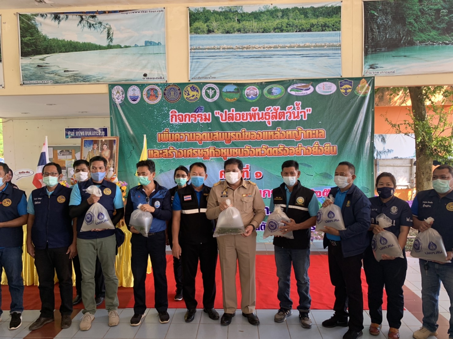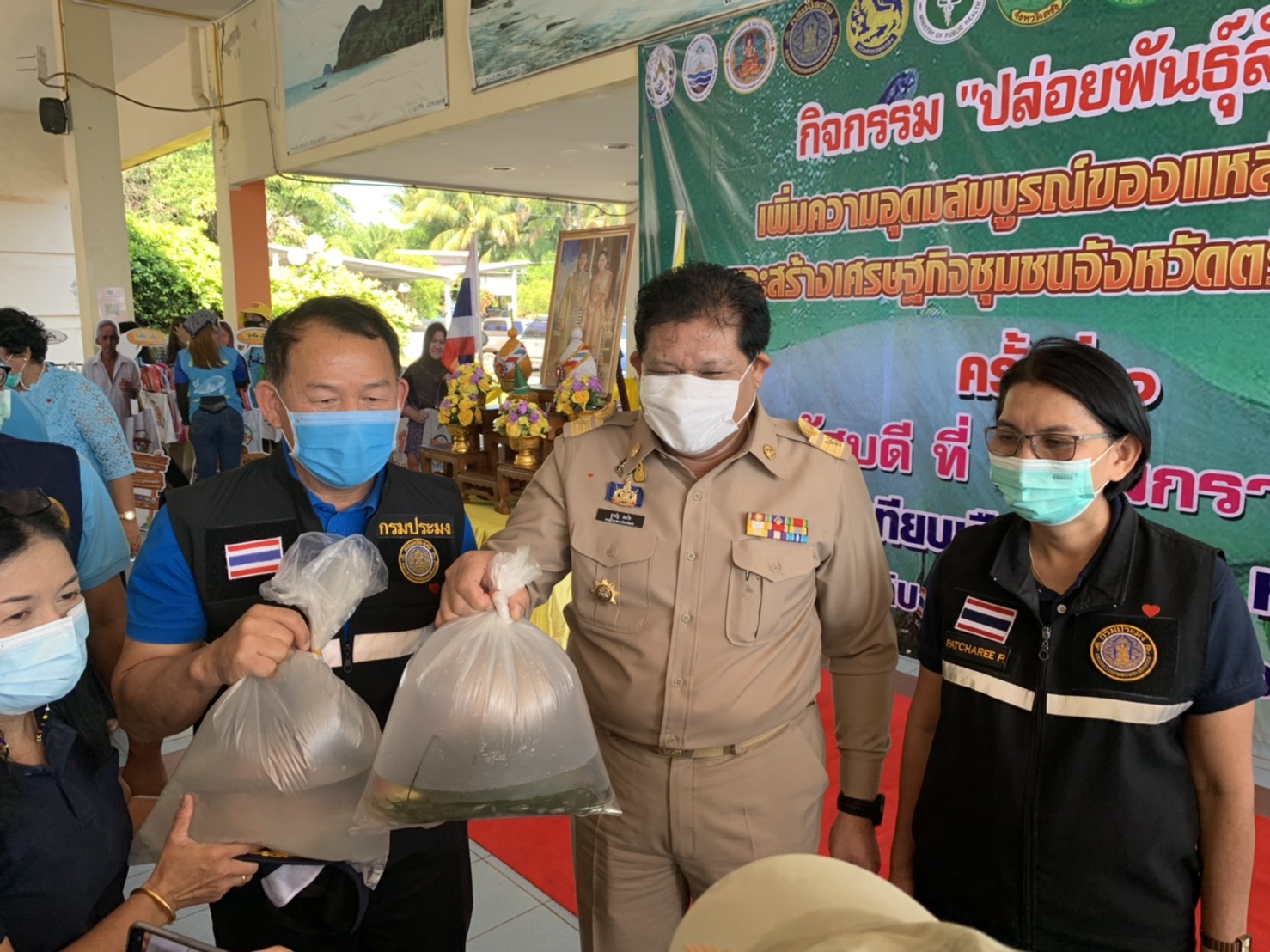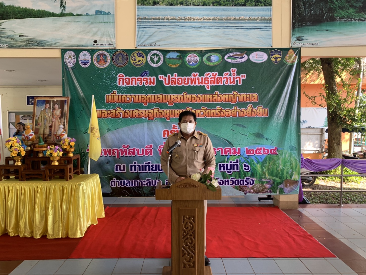 ที่ท่าเรือหาดยาว และร่วมปล่อยพันธุ์สัตว์น้ำ บริเวณชายฝั่งเกาะลิบง อำเภอกันตัง จังหวัดตรัง นายภูวนัฐ สมใจ รองผู้ว่าราชการจังหวัดตรัง เป็นประธานพิธีเปิดโครงการ “ปล่อยพันธุ์สัตว์น้ำ เพิ่มความอุดมสมบูรณ์ของแหล่งหญ้าทะเลและสร้างเศรษฐกิจชุมชนจังหวัดตรังอย่างยั่งยืน“ ครั้งที่ 1 โดยมีนายประถม รัศมี ผู้อำนวยการสำนักงานทรัพยากรทางทะเลและชายฝั่งที่ 7 นายวรรณ ชาตรี ผู้อำนวยการส่วนอนุรักษ์ สำนักงานทรัพยากรทางทะเลและชายฝั่งที่ 7 พร้อมด้วยส่งนราชการที่เกี่ยวข้องเข้าร่วม ทั้งนี้การจัดกิจกรรมดังกล่าวเป็นการบูรณาการร่วมกันของหลายภาคส่วนในการรักษาความอุดมสมบูรณ์ ฟื้นฟู และเพิ่มพูนทรัพยากรทางทะเล โดยปล่อยพันธุ์สัตว์น้ำวัยอ่อนบริเวณพื้นที่รอบเกาะลิบงครั้งนี้ ซึ่งจะทำให้มีปริมาณสัตว์น้ำที่เพิ่มขึ้นและเพื่อให้เติบโตขยายพันธุ์ต่อไปเป็นแหล่งอาหารได้ เป็นการสร้างรายได้ให้แก่ประชาชนในพื้นที่และพื้นที่ใกล้เคียง ส่งผลให้เศรษฐกิจภายในชุมชนและจังหวัดตรังดีขึ้น