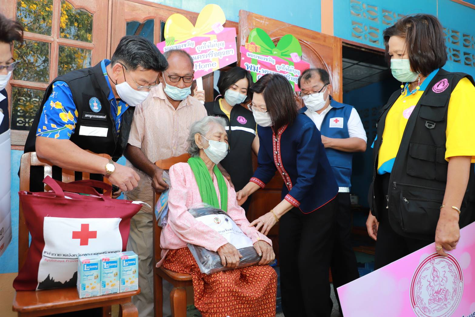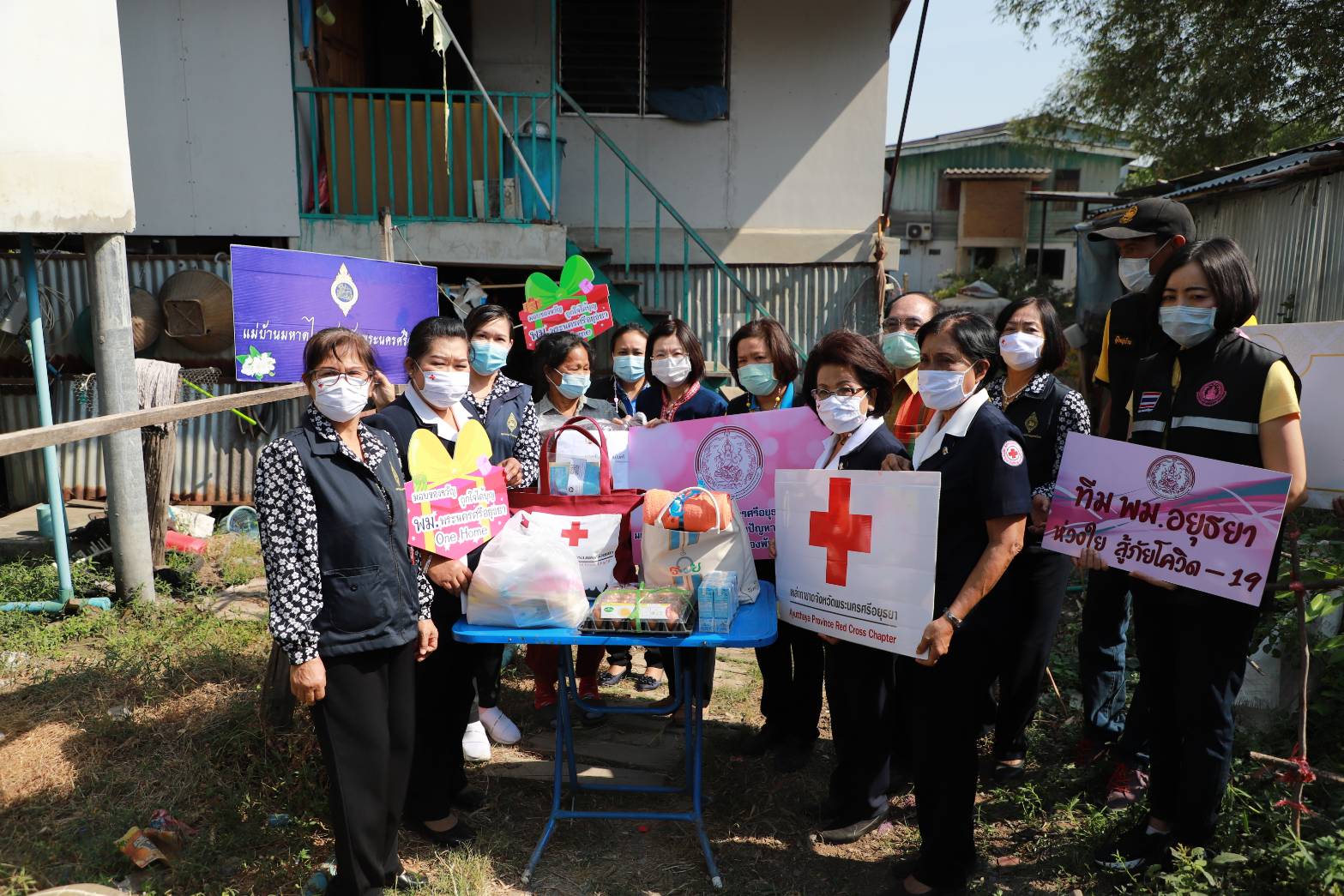 นางสาวนุชนาถ ประทีปธีรานันต์ รองผู้ว่าราชการจังหวัดพระนครศรีอยุธยา กล่าวว่า จังหวัดพระนครศรีอยุธยา ได้ร่วมกับ สำนักงานพัฒนาสังคมและความมั่นคงของมนุษย์จังหวัดพระนครศรีอยุธยา และ ทีม พม.พระนครศรีอยุธยา กรรมการเหล่ากาชาดจังหวัดพระนครศรีอยุธยา มูลนิธิต่างๆ ลงพื้นที่ออกเยี่ยมบ้าน ผู้สูงอายุ ผู้พิการ ผู้ยากไร้ ที่ได้รับผลกระทบจากการแพร่ระบาดของโรคโควิด-19 ระลอกใหม่ ซึ่งขอให้กำลังใจในการดำเนินชีวิตพร้อมมอบสิ่งของเครื่องอุปโภคบริโภคในการบรรเทาความเดือดร้อนในเบื้องต้น พร้อมนี้ วัดตะโกได้ให้การสนับสนุนถุงยังชีพในครั้งนี้ด้วย ในด้านที่อยู่อาศัยได้ประสานนายอำเภอ และองค์กรปกครองส่วนท้องถิ่น ให้การสนับสนุนเข้าไปดูแลปรับปรุงให้ผู้ป่วยและครอบครัวมีความเป็นอยู่ที่ดีขึ้น พร้อมดูแลสุขลักษณะอนามัยในการป้องกันโรคโควิดควบคู่ไปด้วย