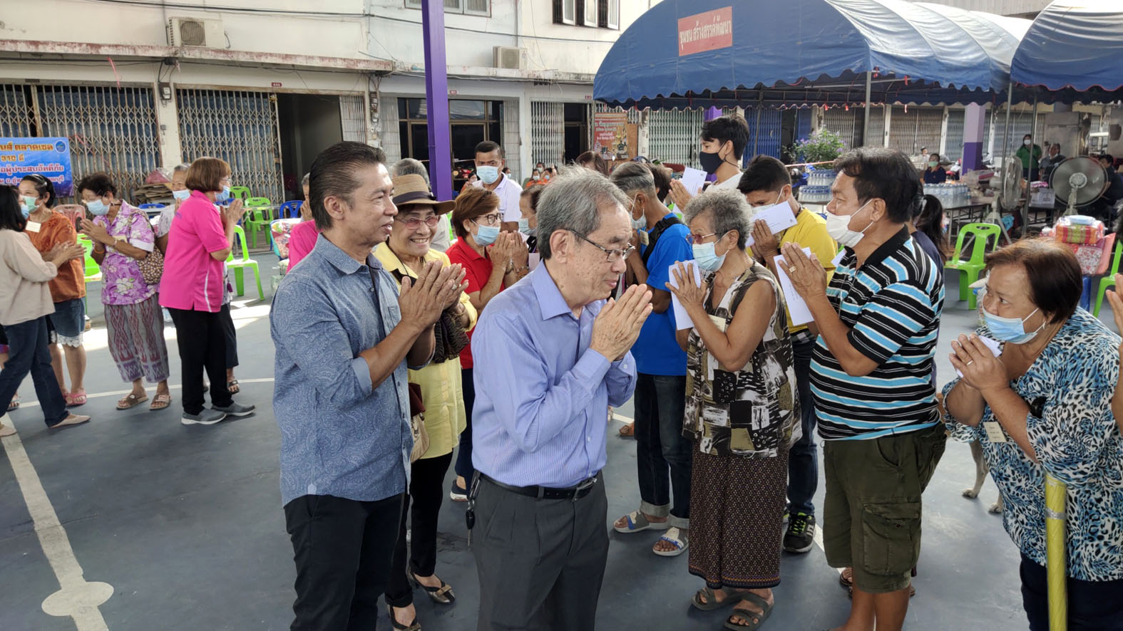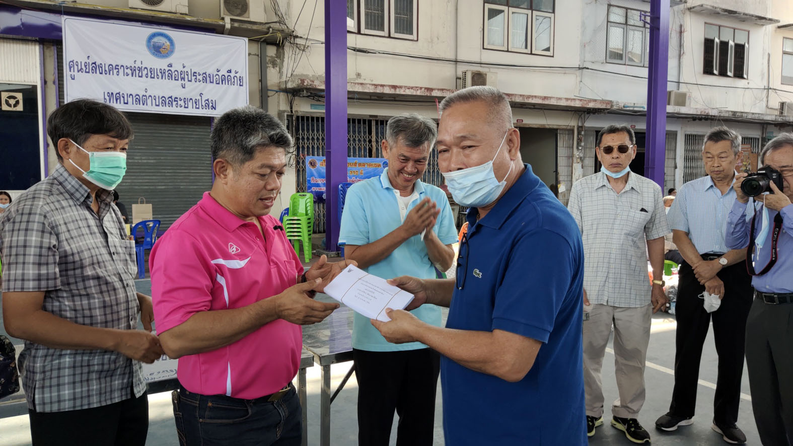 ล่าสุดนายยุทธดนัย แจ่มศรี นายกเทศมนตรีตำบลเขาพระ อ.เดิมบางนางบวช จ.สุพรรณบุรี ในนามประธานคณะกรรมการศาลเจ้าพ่อตลาดท่าช้าง อ.เดิมบางนางบวช พร้อมคณะกรรมการศาลเจ้าพ่อตลาดท่าช้าง ประกอบด้วยอมรินทร์ เกิดสงกรานต์ อดีตประธานหอการค้า จ. สุพรรณบุรี ที่ปรึกษาฯ นายมานพ ภัทรโกศล นายประทีป มงคลทิพย์วาที นายสุนิติ เกิดสงกรานต์ รองประธานฯนายประเสริฐ กัณหสินวัฒนา นางภาวิณี วรรณวิจิตร นางสมศรี สงฆ์ประชา นายทวีศักดิ์ เมธีวรรณกิจ และนายวรวุฒิ โพธิ์ฉัตรมงคล กรรมการศาลเจ้าพ่อ ได้นำเงินสดที่พี่น้องประชาชนชาว อ.เดิมบางนางบวช ร่วมกันบริจาค จำนวนทั้งสิ้น 168,000 บาทมามอบให้กับผู้ที่ประสบอัคคีภัยที่เป็นเจ้าของบ้านครอบครัวละ 8,000 บาทส่วนที่เป็นบ้านเช่าคนเช่าและเจ้าของบ้านจะได้ครอบครัวละ4,000 บาท