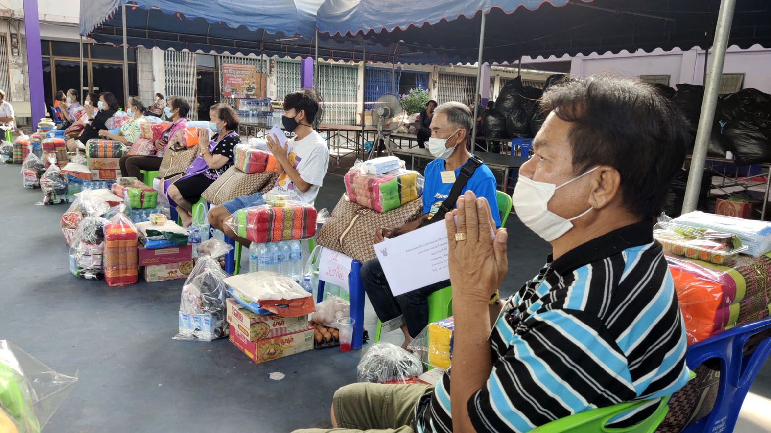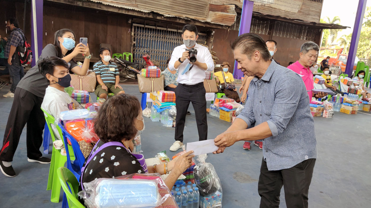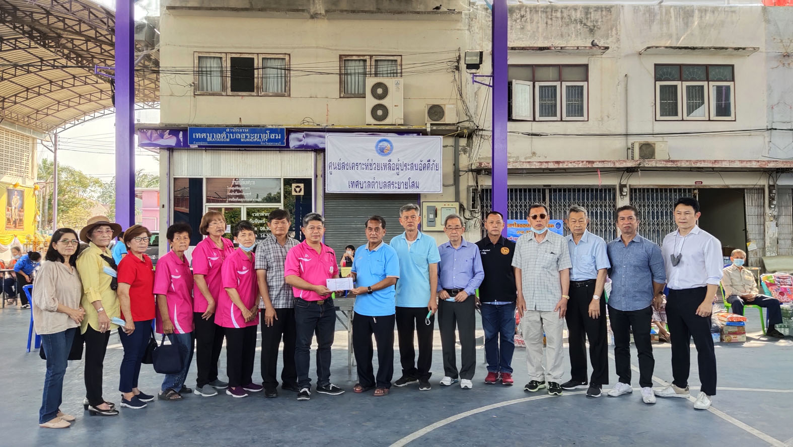 สุพรรณบุรี ธารน้ำใจหลั่งไหลมอบสิ่งของและเงินช่วยชาวบ้านสระยายโสมที่ประสบอัคคีภัย