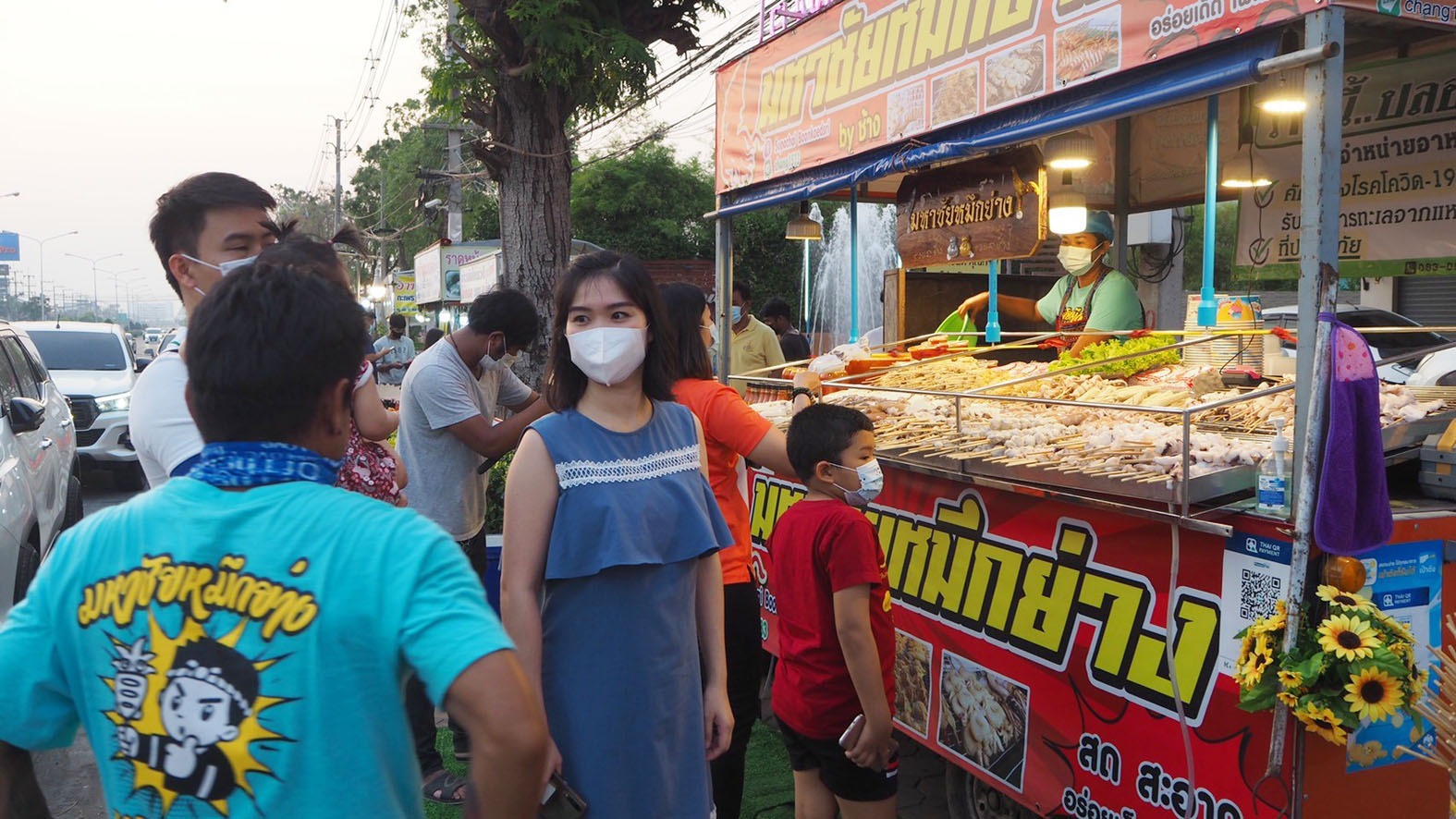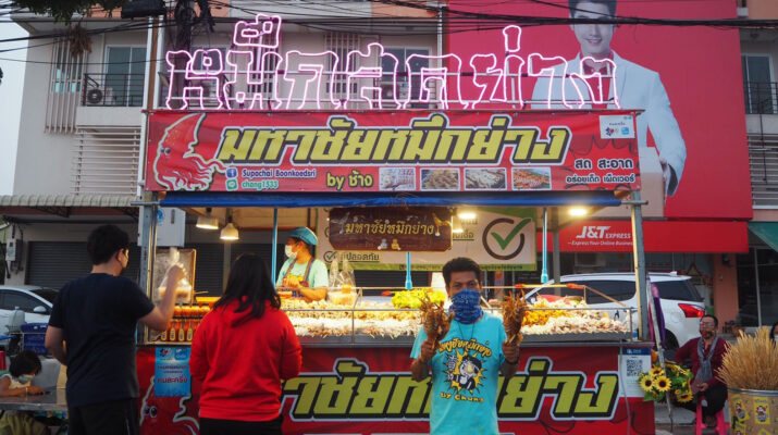 สุพรรณบุรี สู้พิษโควิดร้านช้างหมึกย่างแจกหลวงพ่อรวยเดือนแห่งความรักเรียกลูกค้า